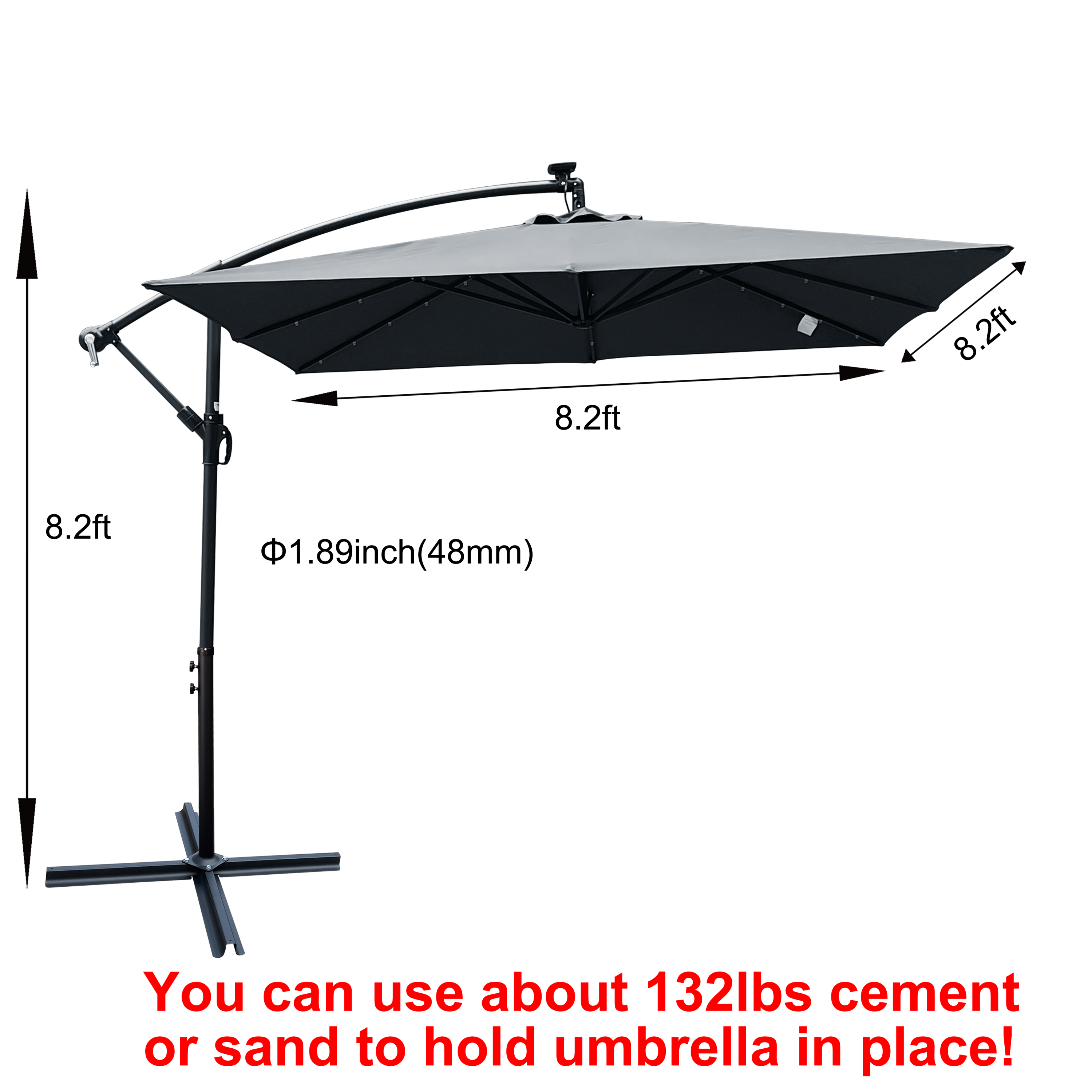 | Package Includes: | 1 X 32 LED Lighted Patio Umbrella;1 X Solar Panel;1X Cross umbrella base |