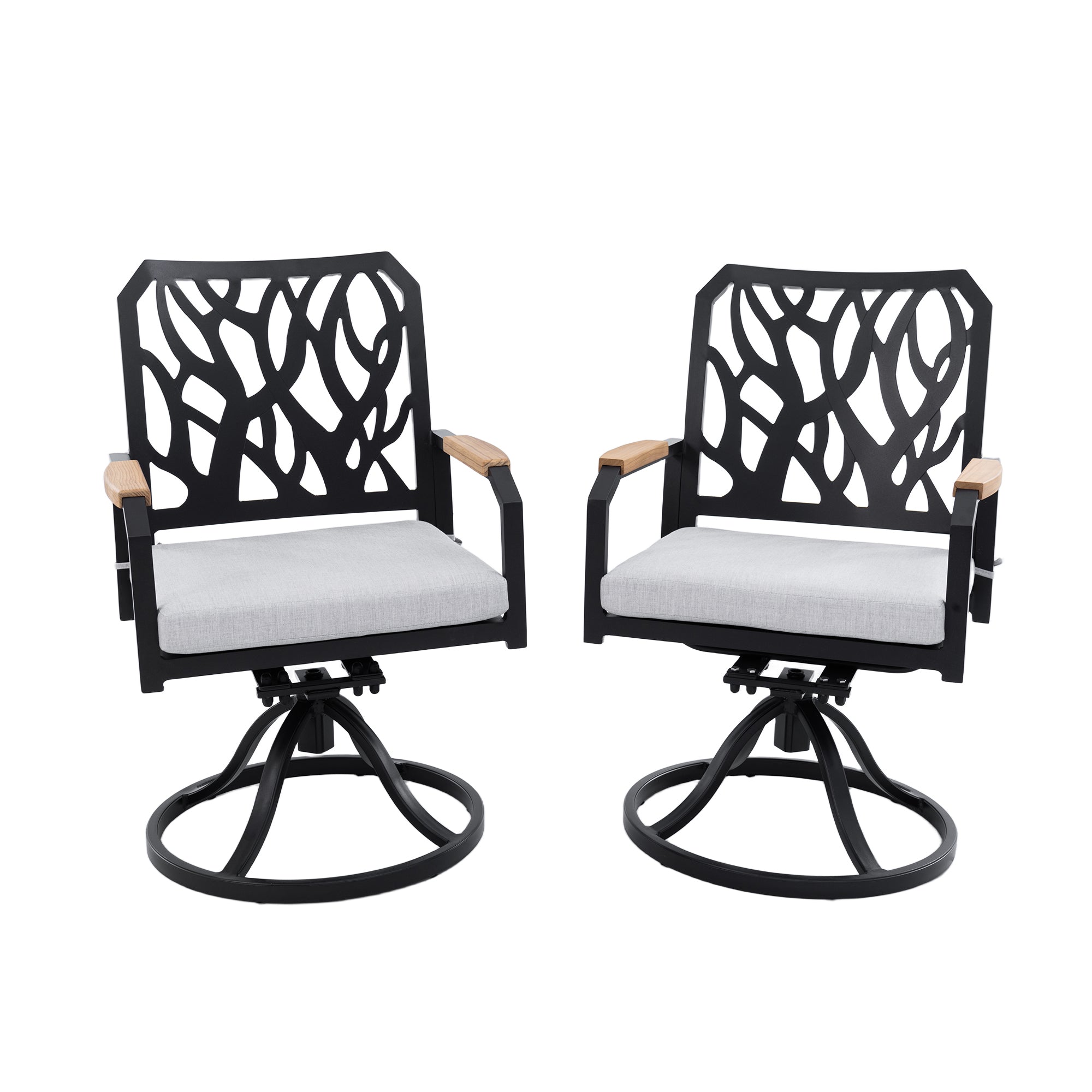Outdoor Patio Aluminum Swivel Rocker 2PCS with Outdoor-grade Sunbrella Fabric Cushions,Branch-Like Backrest ,FSC-Certified Wood Armrests, Burbon W1886P272381-djyc