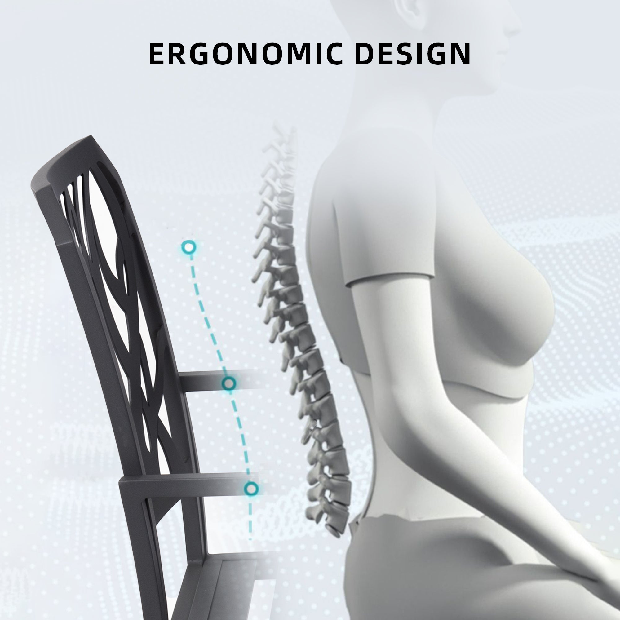 - The curvature of the chair's backrest conforms to ergonomic principles, providing excellent support for the human back.