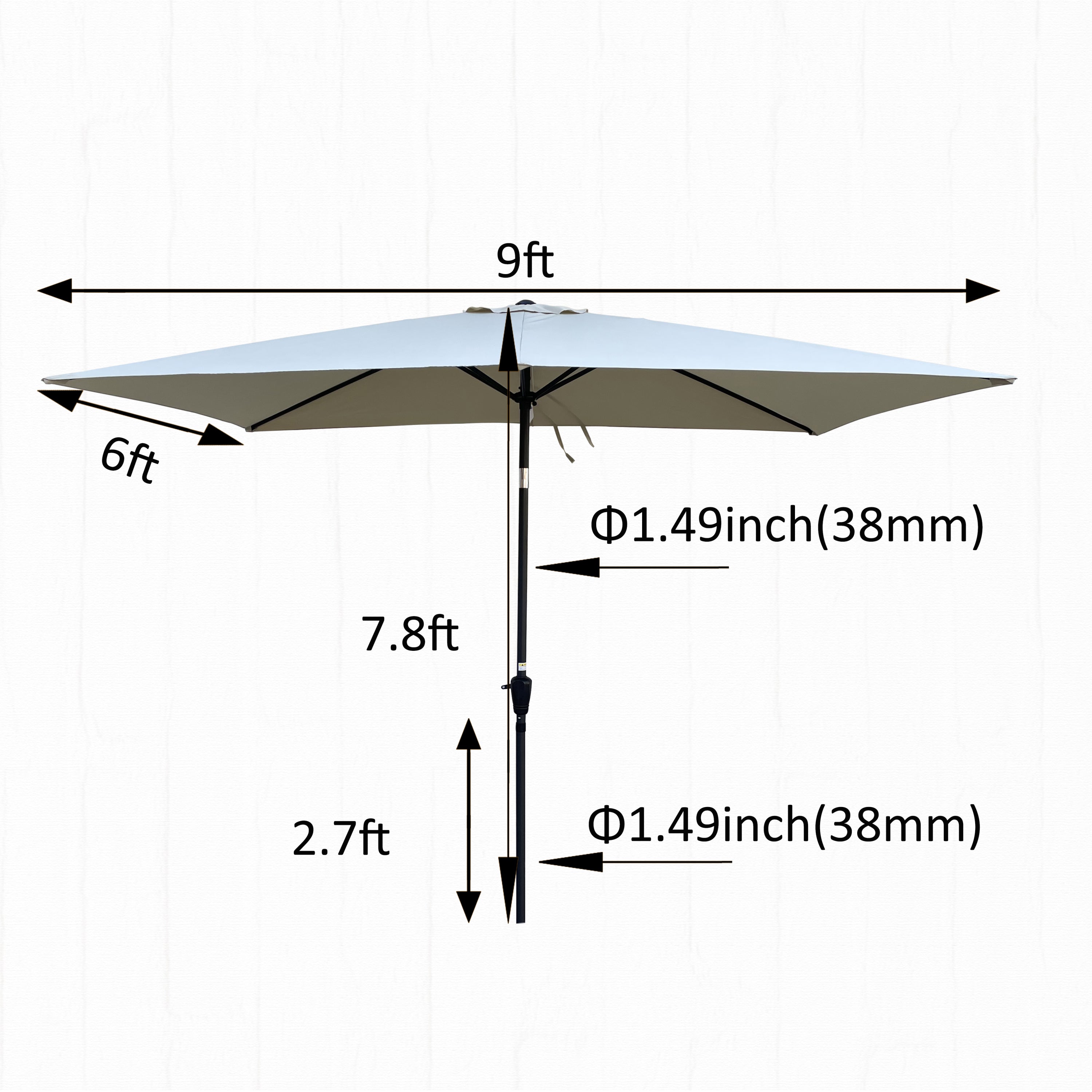 6 x 9ftPatio Umbrella OutdoorWaterproof Umbrella with Crank and Push Button Tilt without flap for Garden Backyard PoolSwimming Pool Market W656134980-djyc