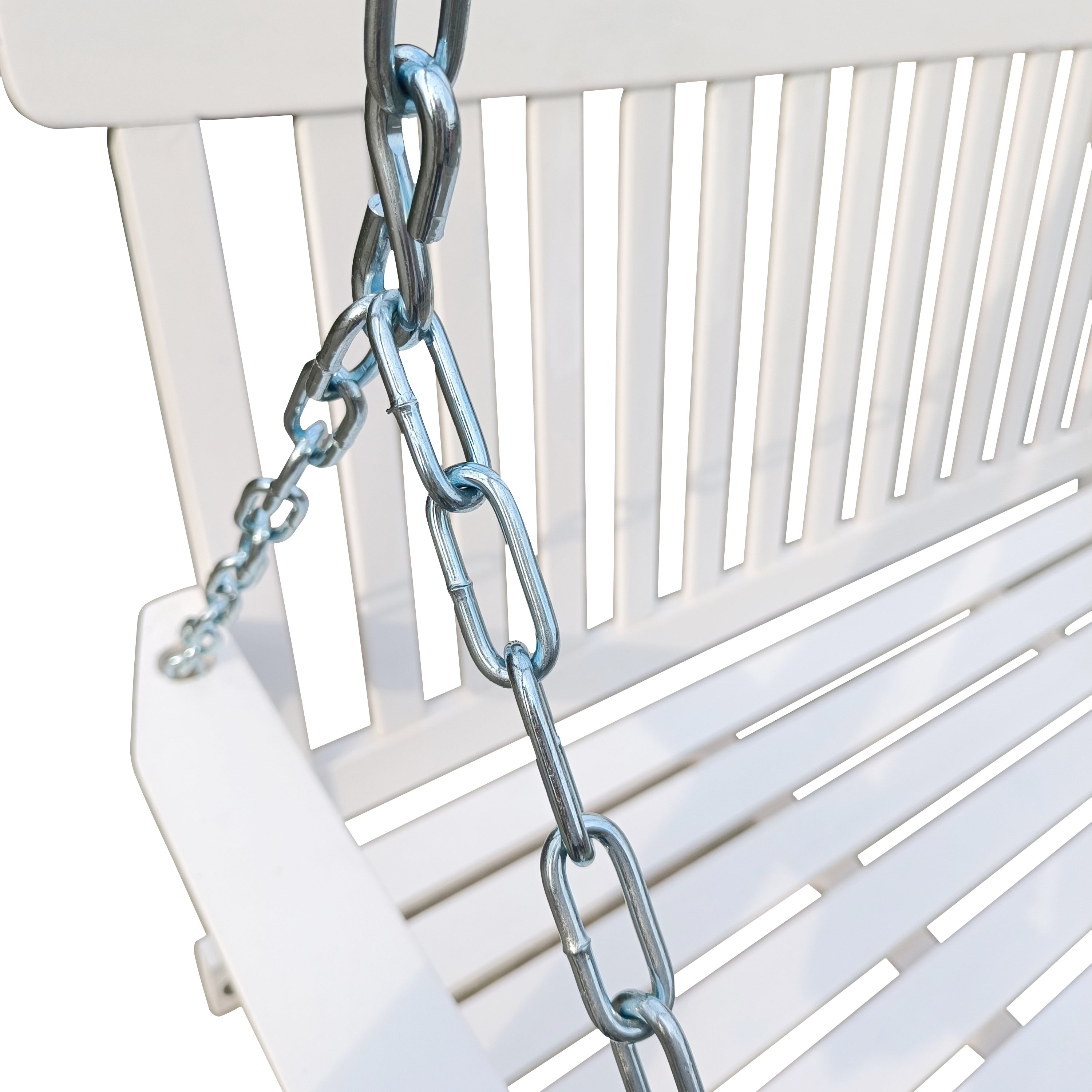 - SAFE HANGING CHAINS: The chair chains are plated with colored zincwhich not only is water-proof and rust-resistant, but also allow you to hang the bench swing from a higher platform while seated safely and securely.
