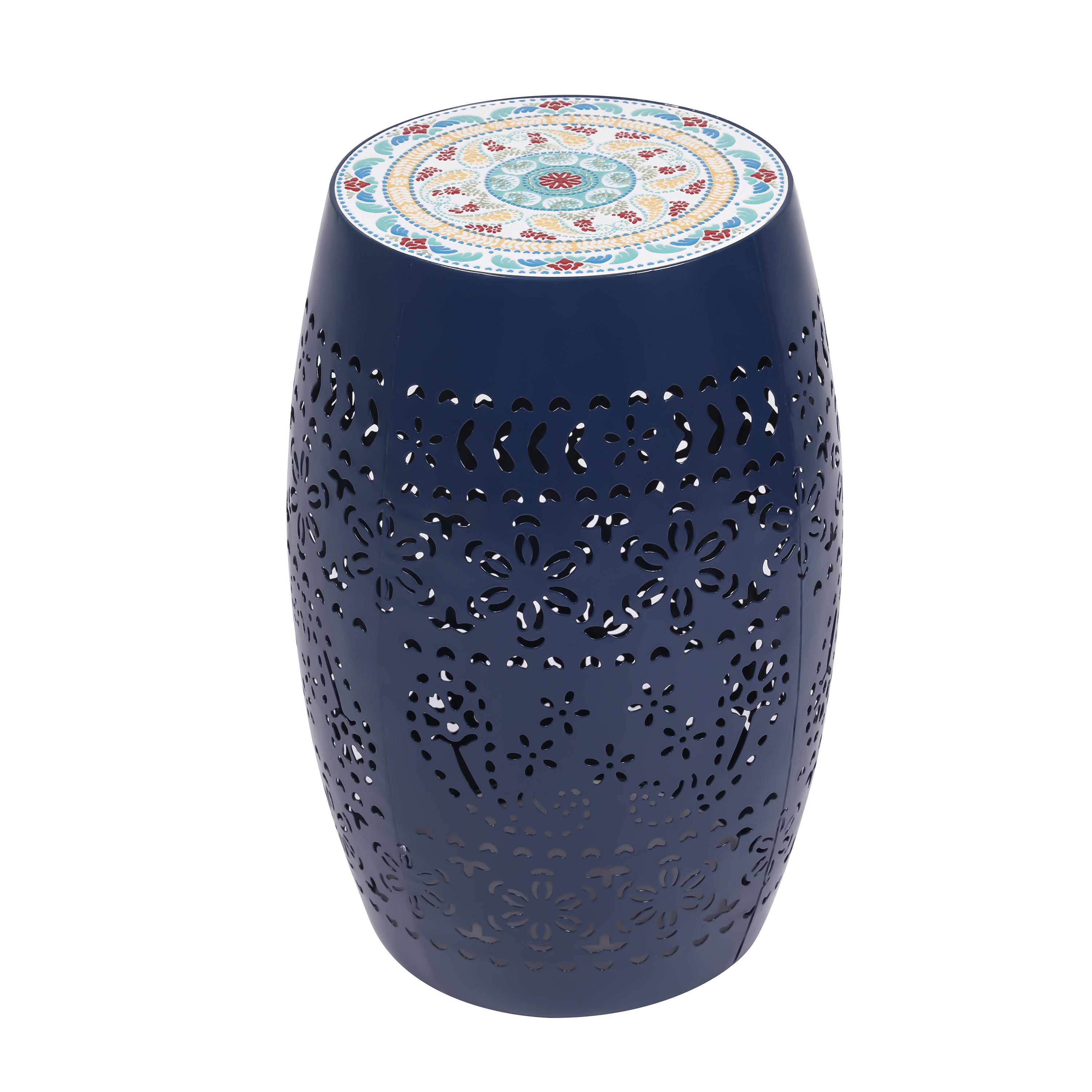 - VIBRANT ACCENT TABLE: This mosaic side table by adds a splash of vividness to your space with its Roman pattern ceramic tile top and unique color iron frame; it offers style and durability as an accent table indoors or outdoors