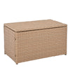 - [Sturdy Solid Frame with All-Weather PE Rattan] This patio sofa set includes 3pcs 2-person sofas, 2pcs side tables with glass top, 2pcs storage stools, 2pics ottomans and 1pc round table as well as 8 thick seat cushions&6 back cushions. Constructed with solid steel frame, each seat can hold max 800lbs. Covered by strong but light-weighted PE rattan, this 10pcs rattan sofa set is designed to all-weather use with UV resistant and water-resistant.