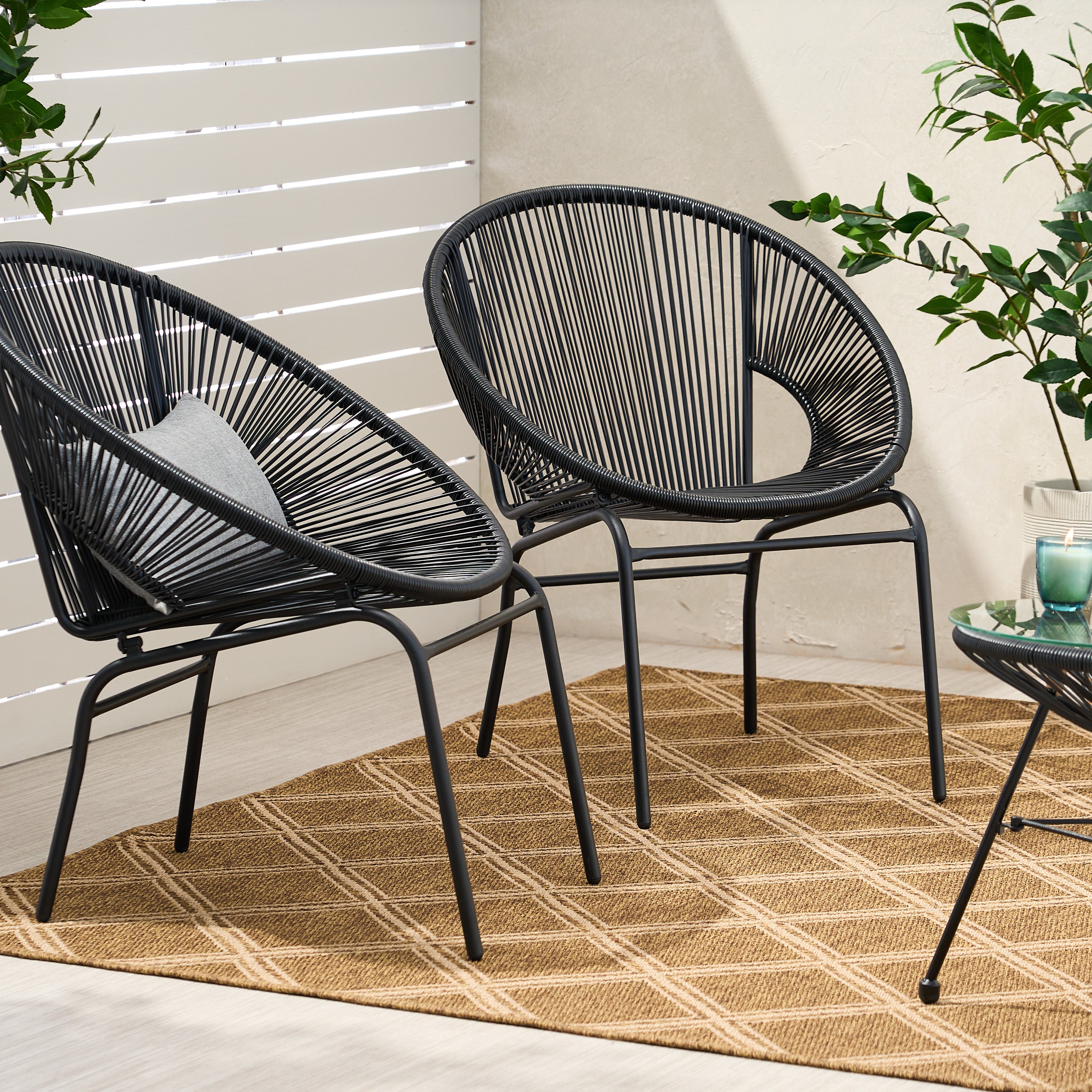 Modern Woven Rattan Outdoor Chair Set – Sleek Design, Iron Frame, Durable, Easy Assembly 66626.00BLK-djyc