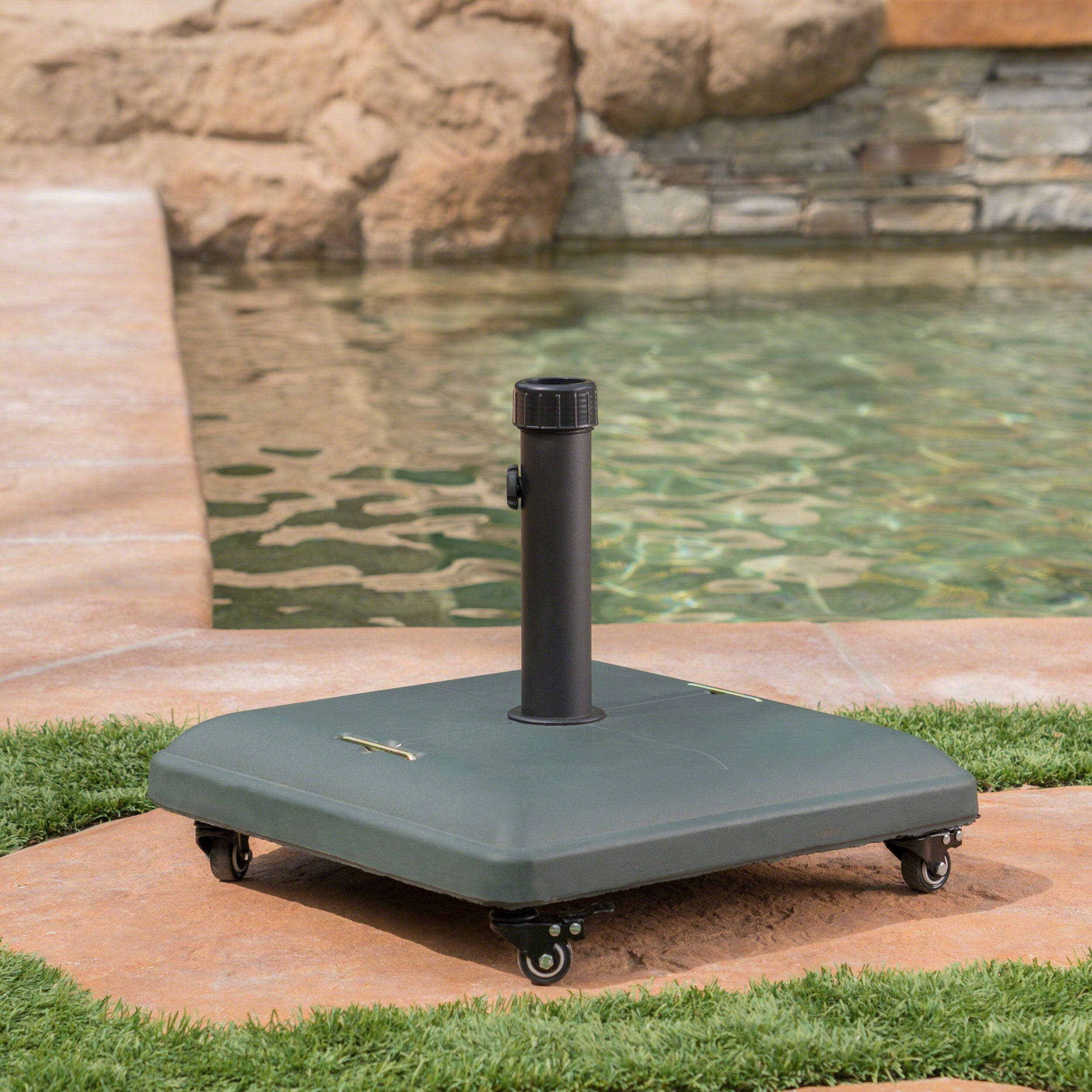 Handcrafted Teal Concrete Umbrella Base – Stylish & Sturdy Shade Support 60453.00DGRN-djyc