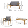 Charming Transitional Acacia Wood Loveseat and Club Chair Set with Classic Wicker Seating 73992.00GRY-djyc