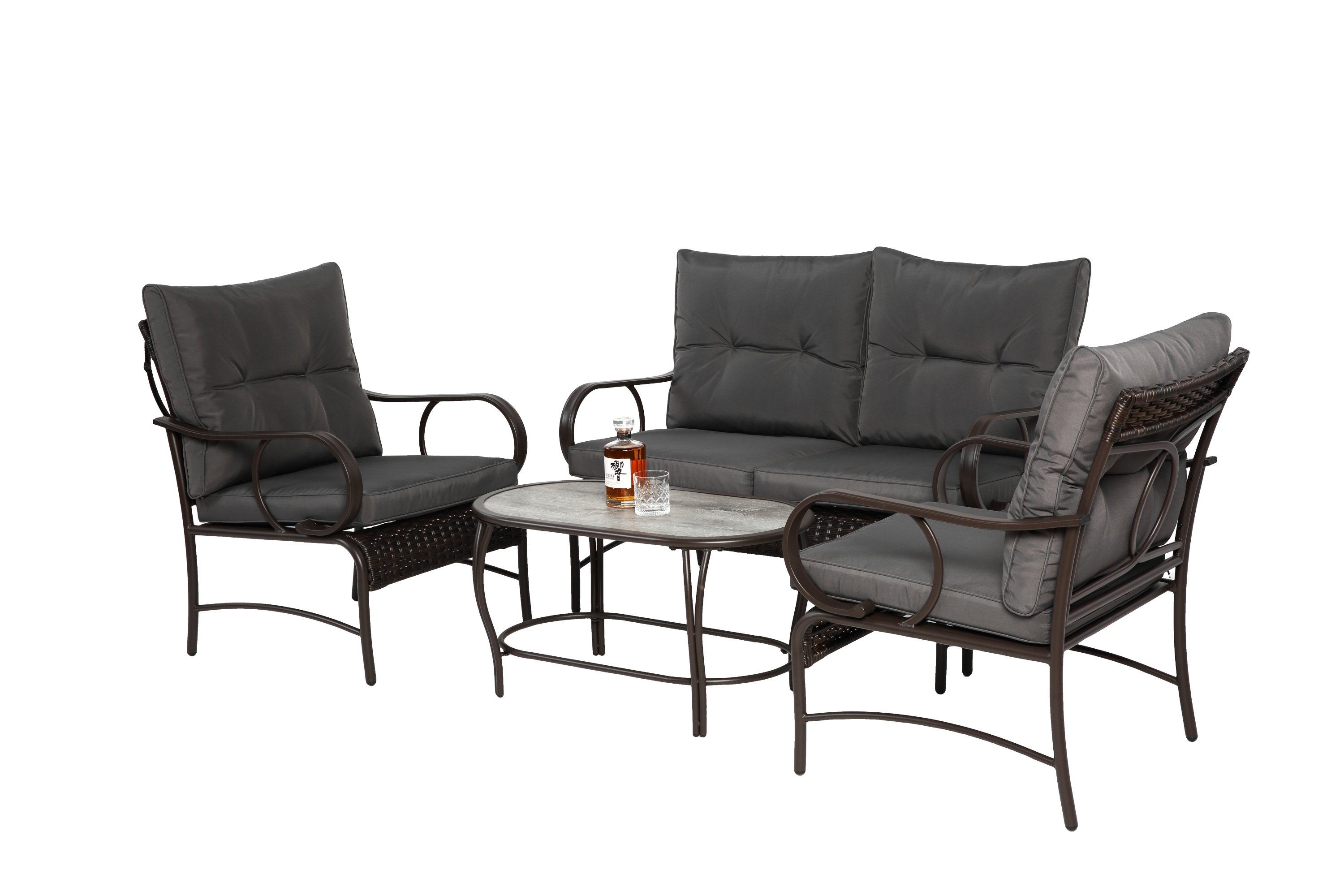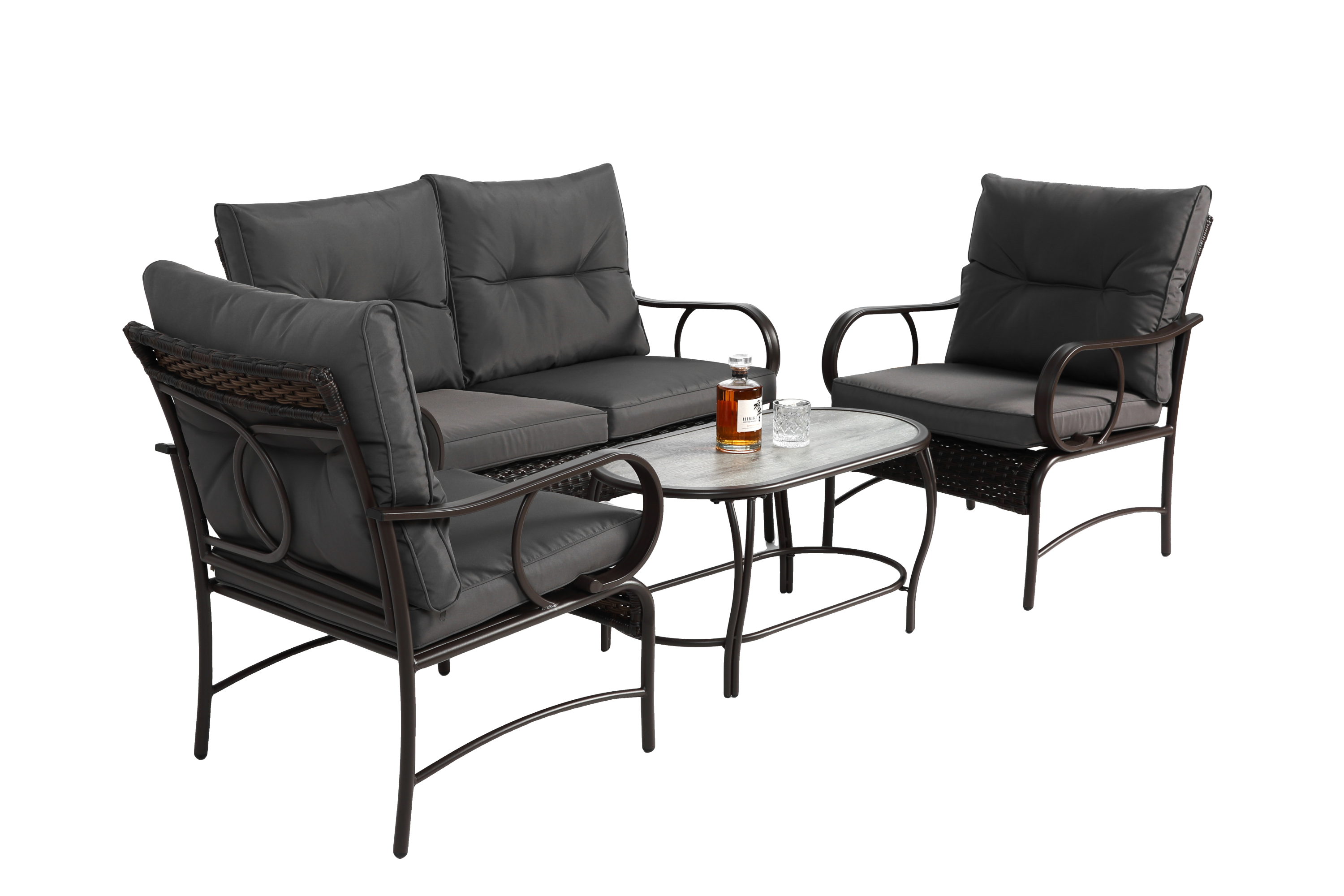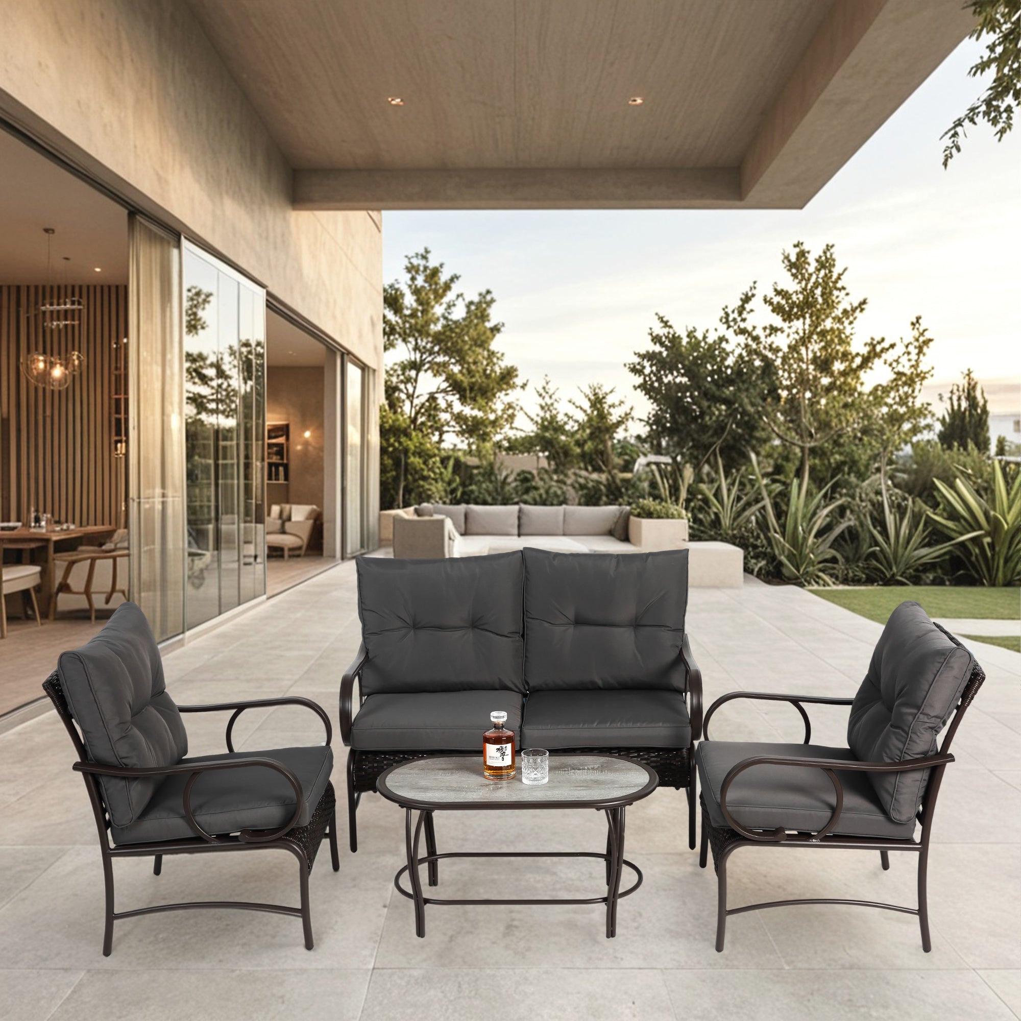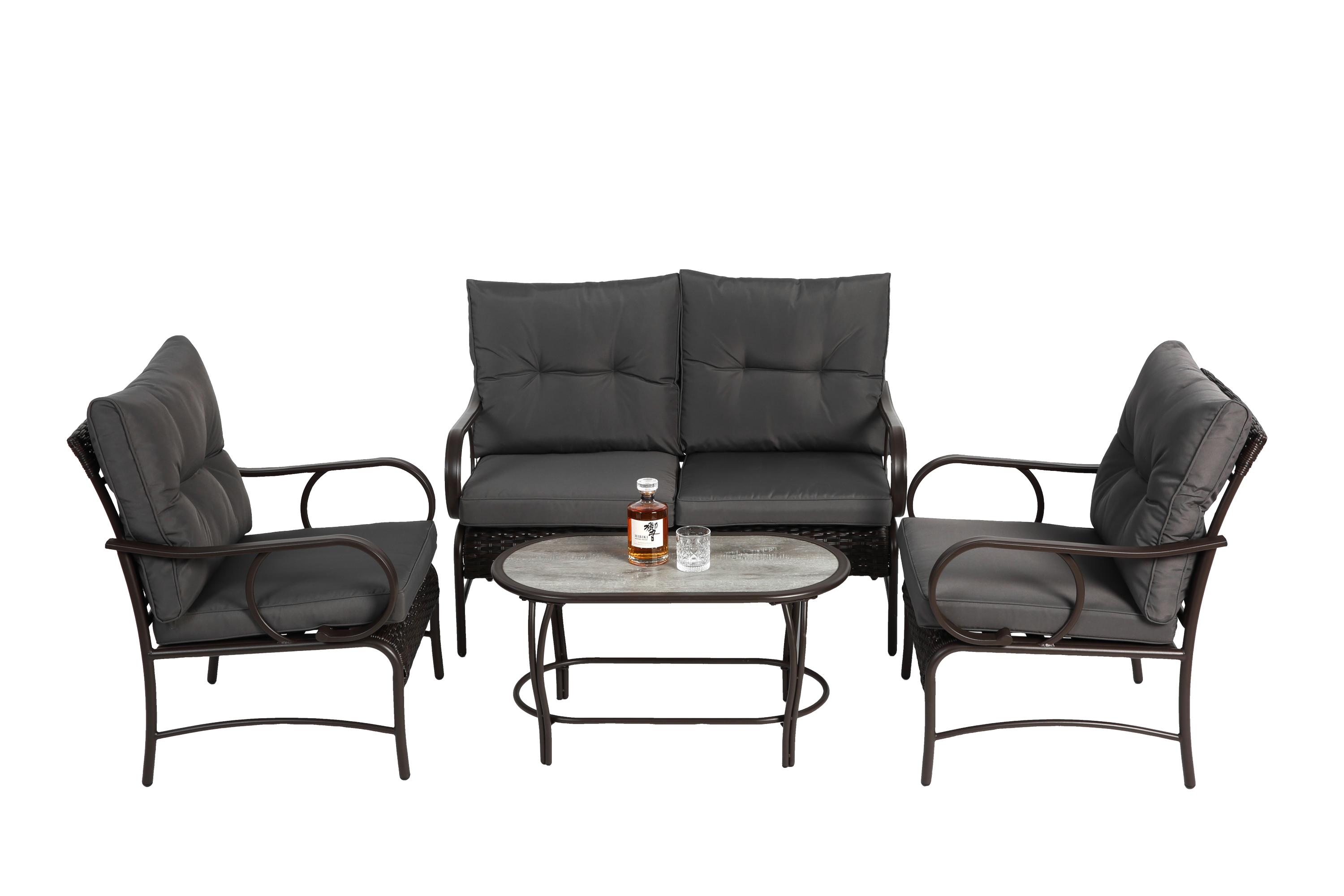 4 Piece Outdoor Patio Furniture Sets, Wicker Conversation Set for Porch Deck,Rattan Sofa Chair with Cushion-Grey W640S00046-djyc