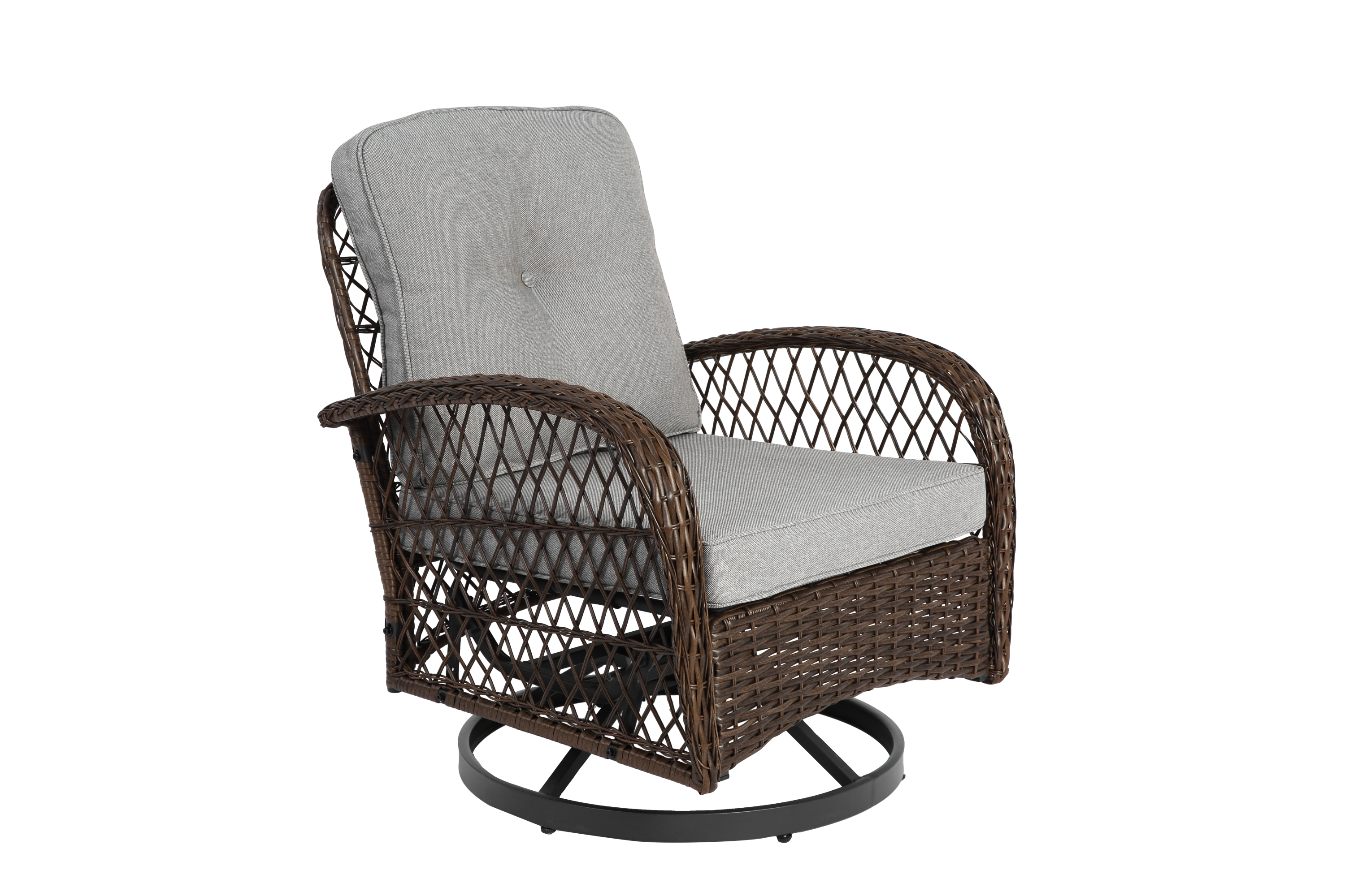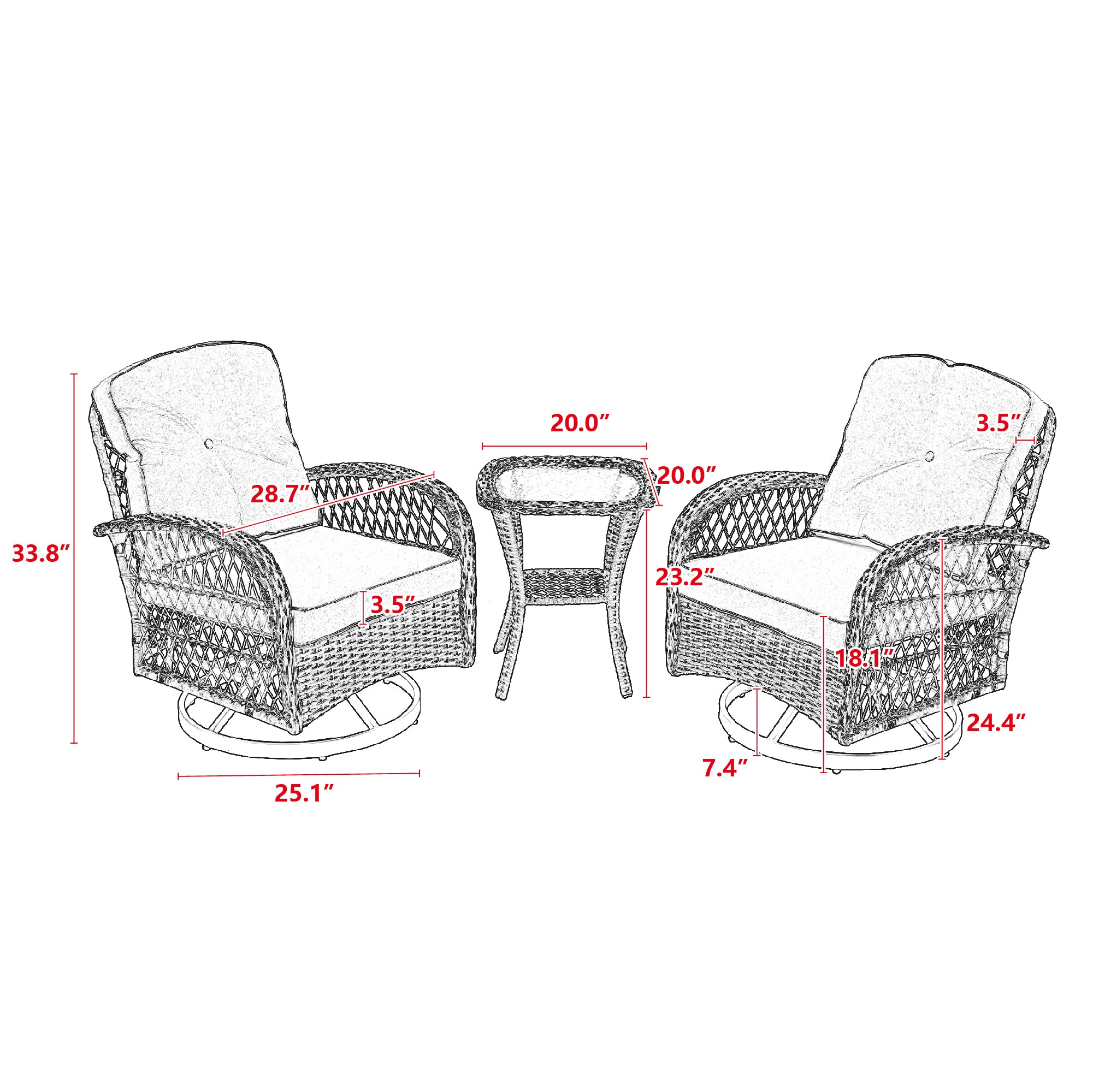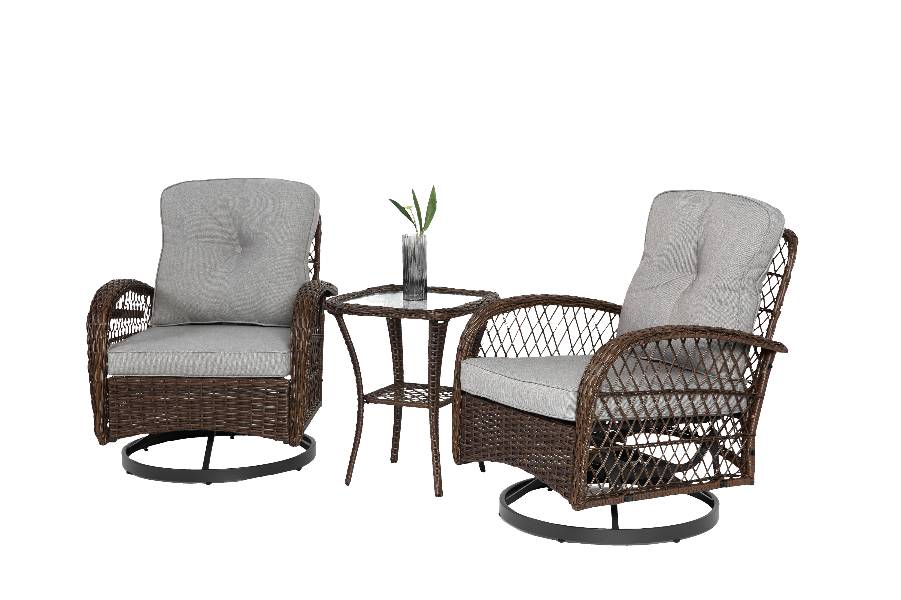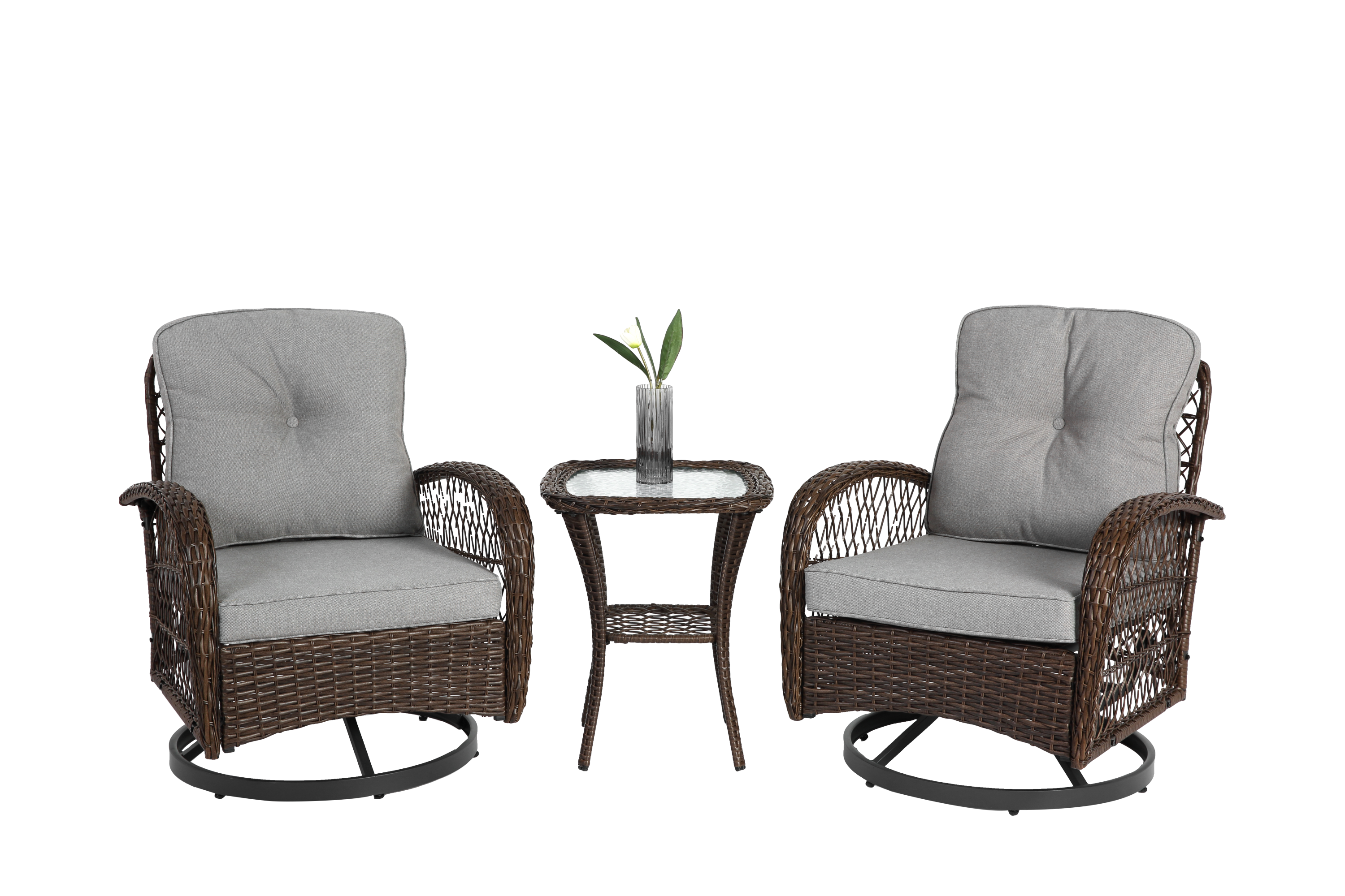 3 Pieces Outdoor Swivel Rocker Patio Chairs, 360 Degree Rocking Patio Conversation Set with Thickened Cushions and Glass Coffee Table for Backyard, Grey W640P263665-djyc