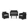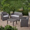 Outdoor Faux Wicker Rattan Style Chat Set with Water Resistant Cushions, 4-Pcs Set, Charcoal / Light Grey 61310-djyc