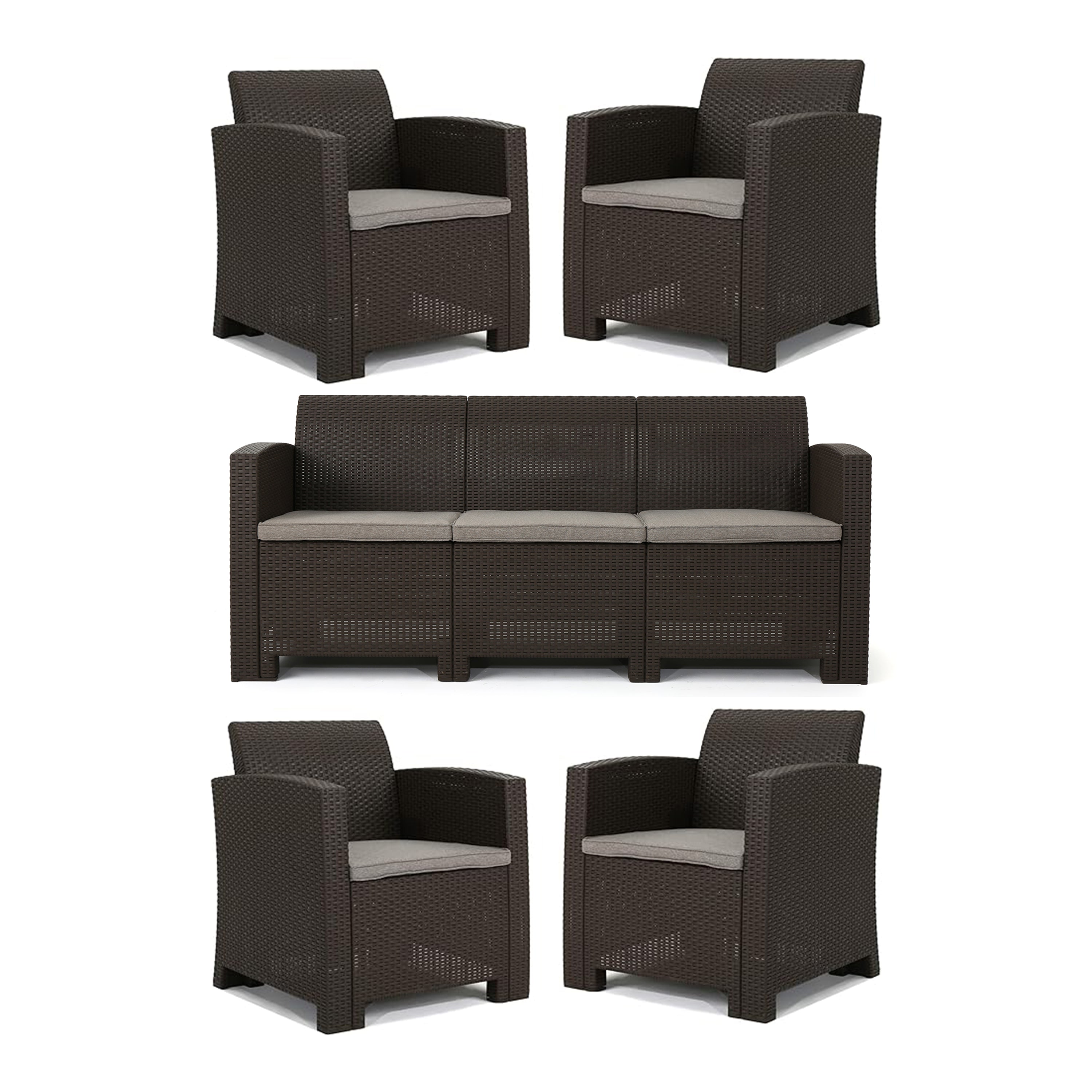 Outdoor Faux Wicker Rattan Style Chat Set with Water Resistant Cushions, 5-Pcs Set, Brown / Mix Beige 61315.00BRN-4_61312.00BRN-djyc