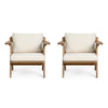 Outdoor Acacia Wood Club Chairs with Cushions (Set of 2), Teak Finish+ Beige, 30.75' W x 30.25' D x 26.00' H 70856.00BGE-djyc
