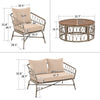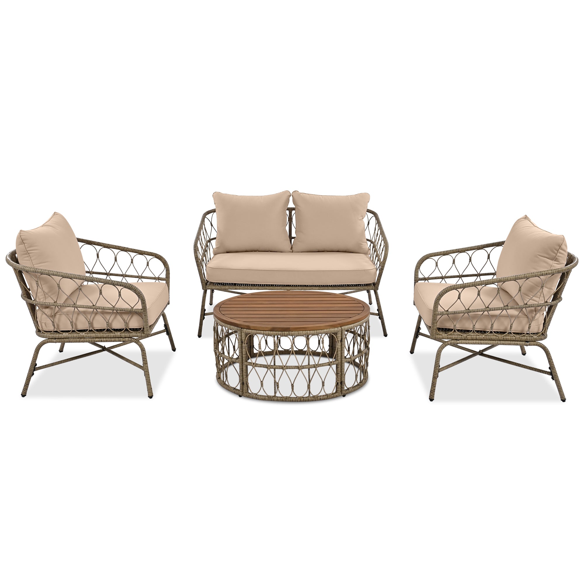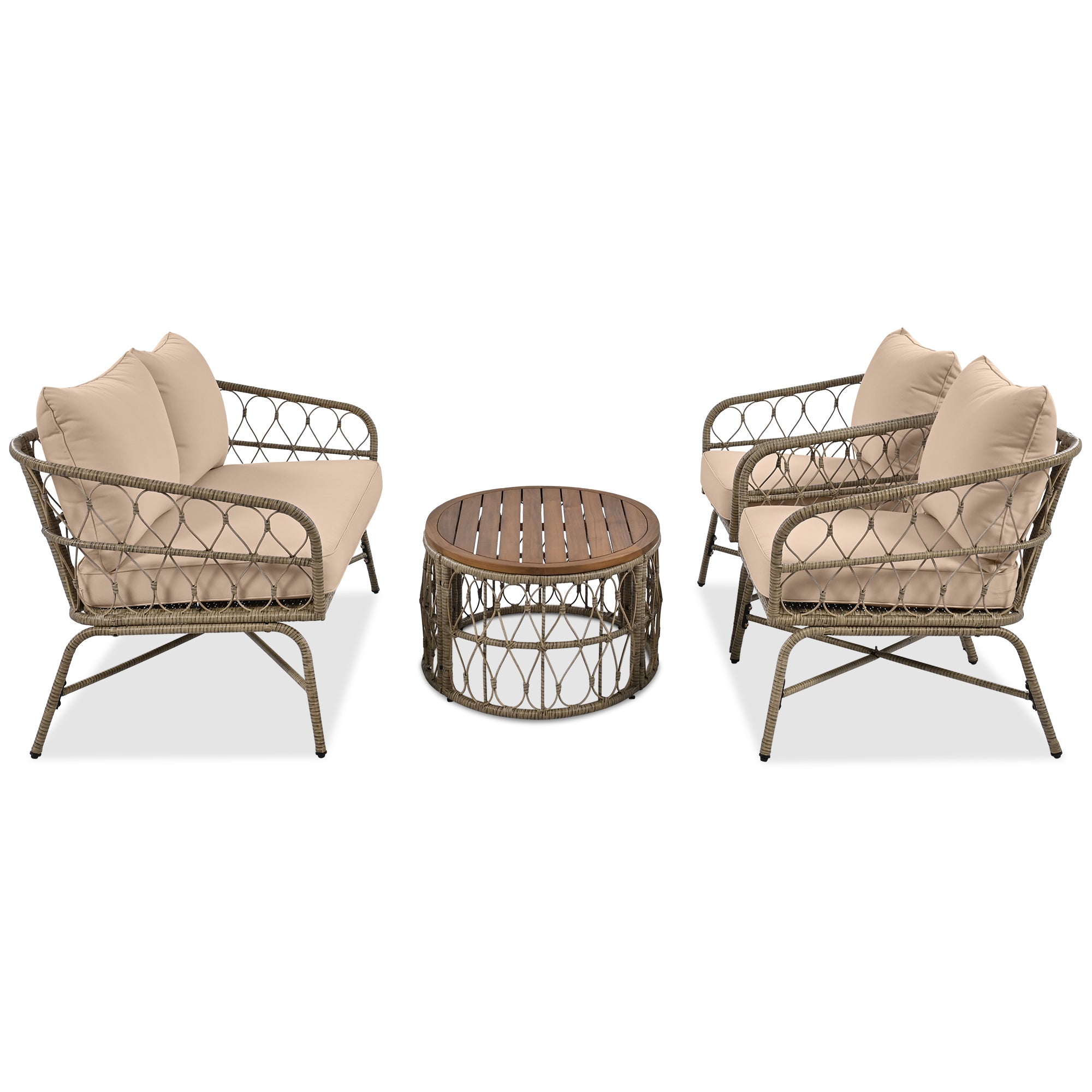 GO Bohemia-inspired 4-Person Outdoor Seating Group With Removable Cushions, Conversation Patio Set With Wood Tabletop, Beige FG201236AAA-djyc