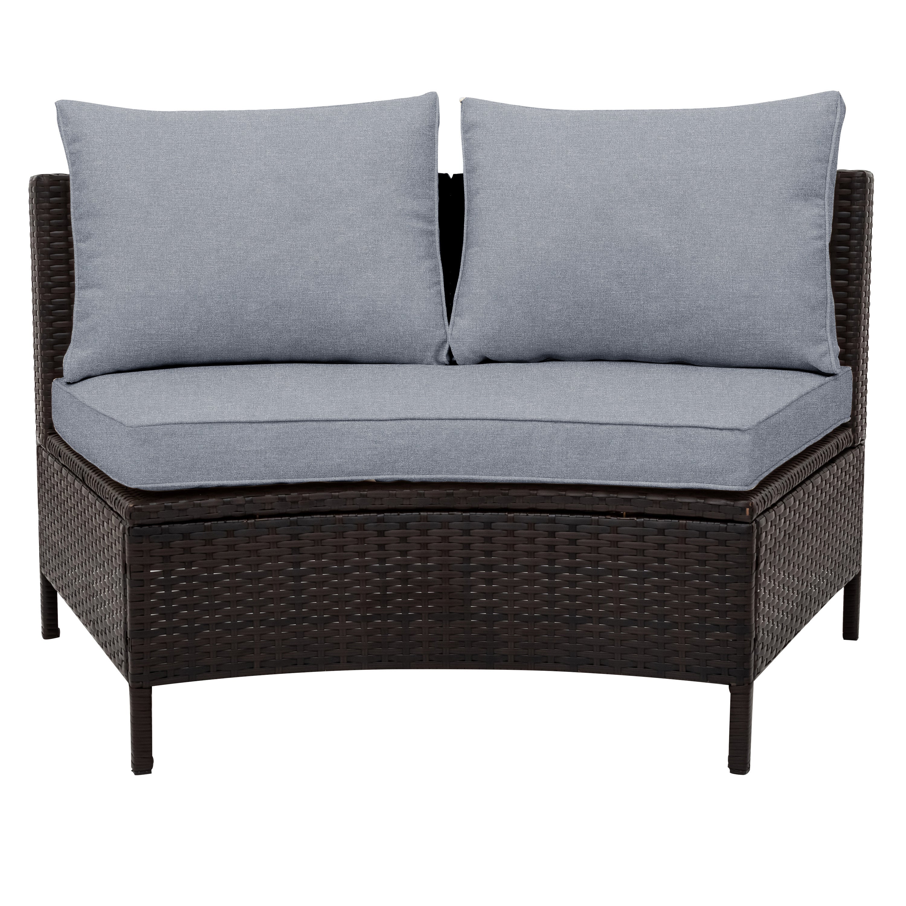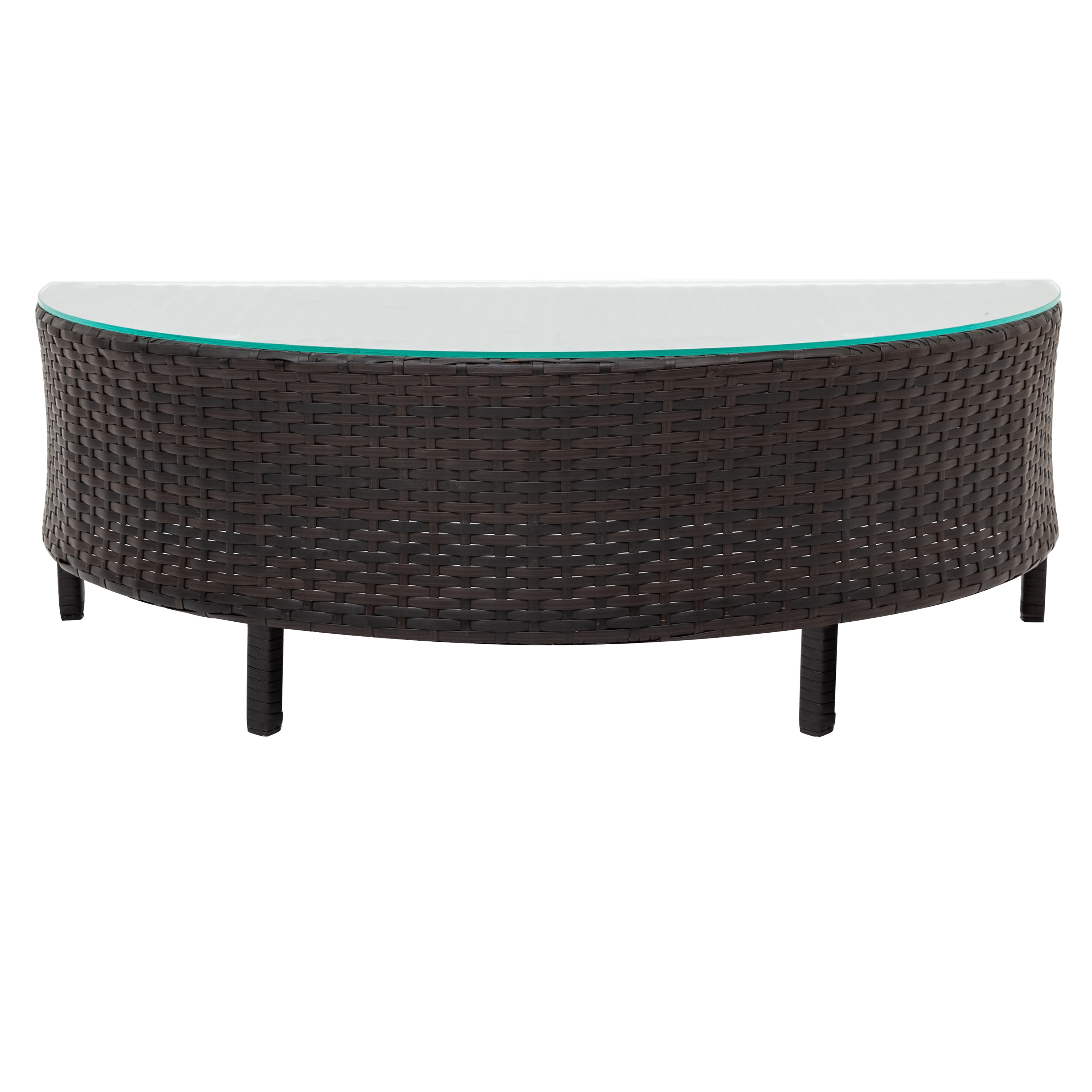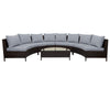 | Pieces Included | 4pcs 2-person sofa+1 half-moon tempered glass top table + 8pcs pillows+4pcs cushions |