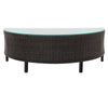 - [Sturdy Solid Frame with All-Weather PE Rattan] This patio sofa set includes 4pcs 2-person sofa and 1 half-moon tempered glass top table as well as 8 thick pillows&4 cushions. Constructed with solid steel frame, each seat can hold max 350lbs. Covered by strong but light-weighted PE rattan, this 5pcs rattan sofa set is designed to all-weathered with UV resistant and water-resistant.