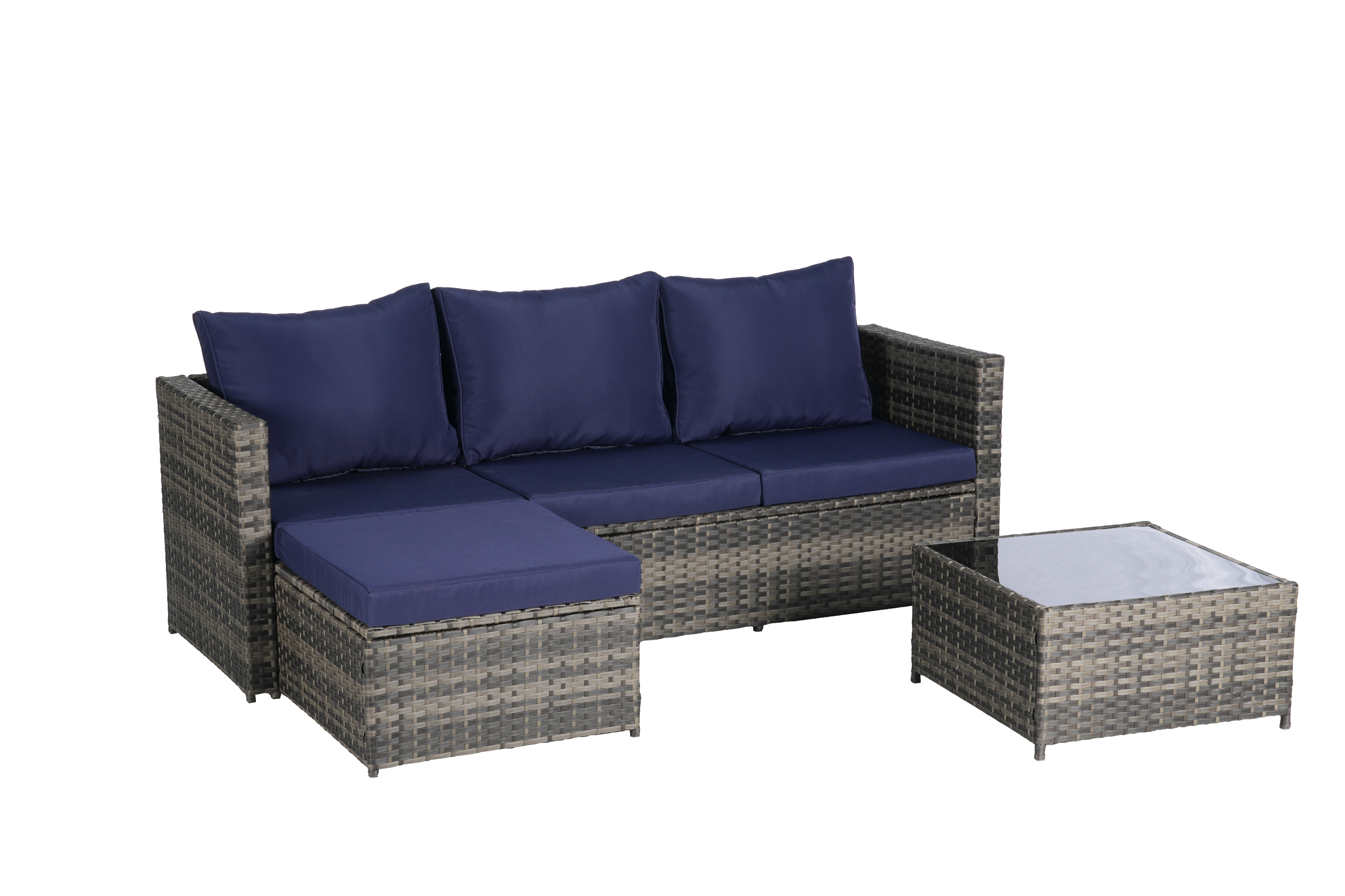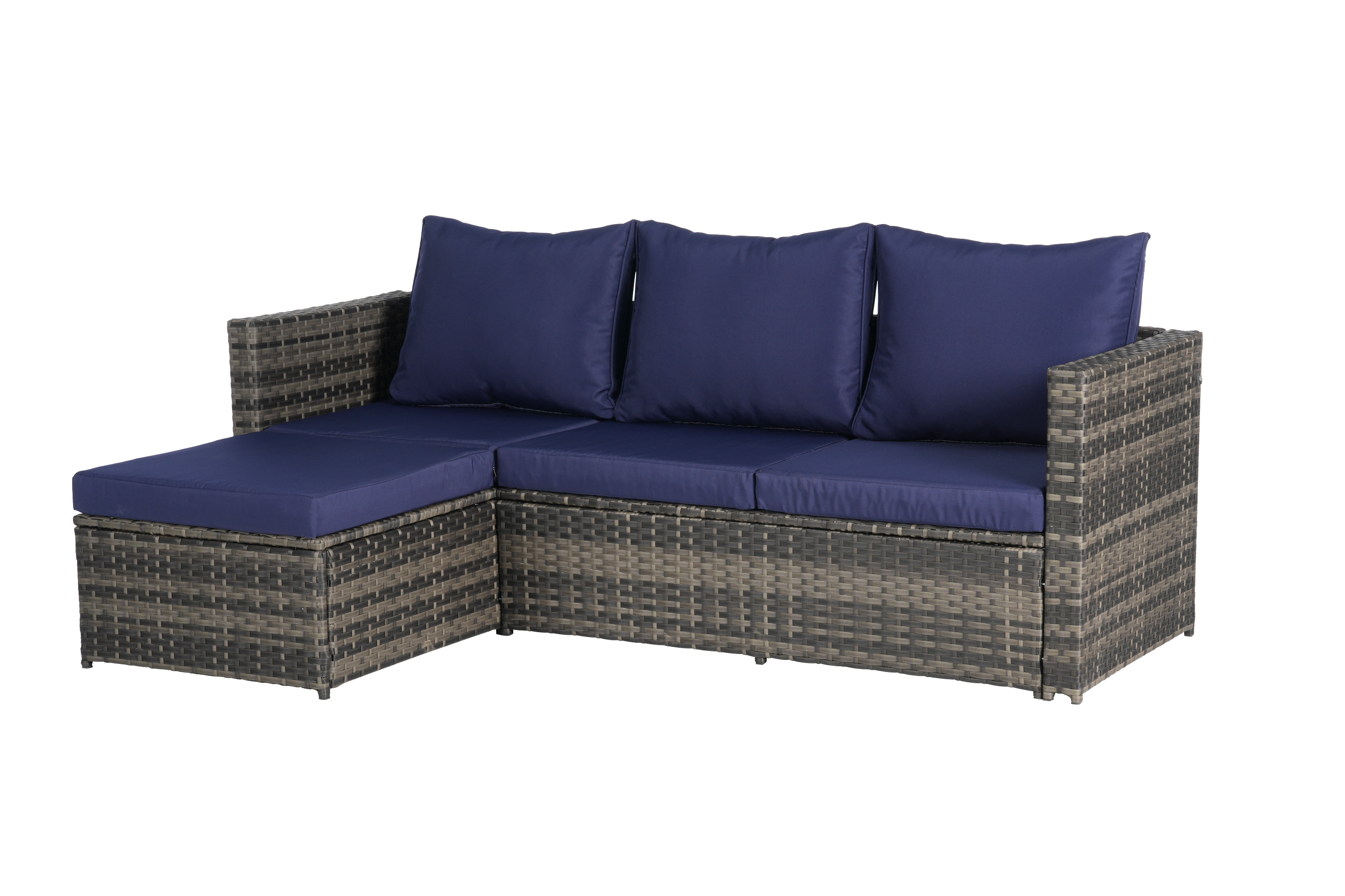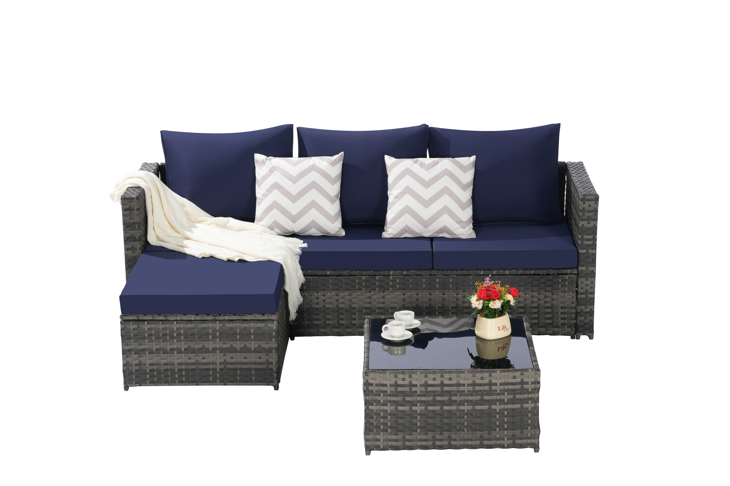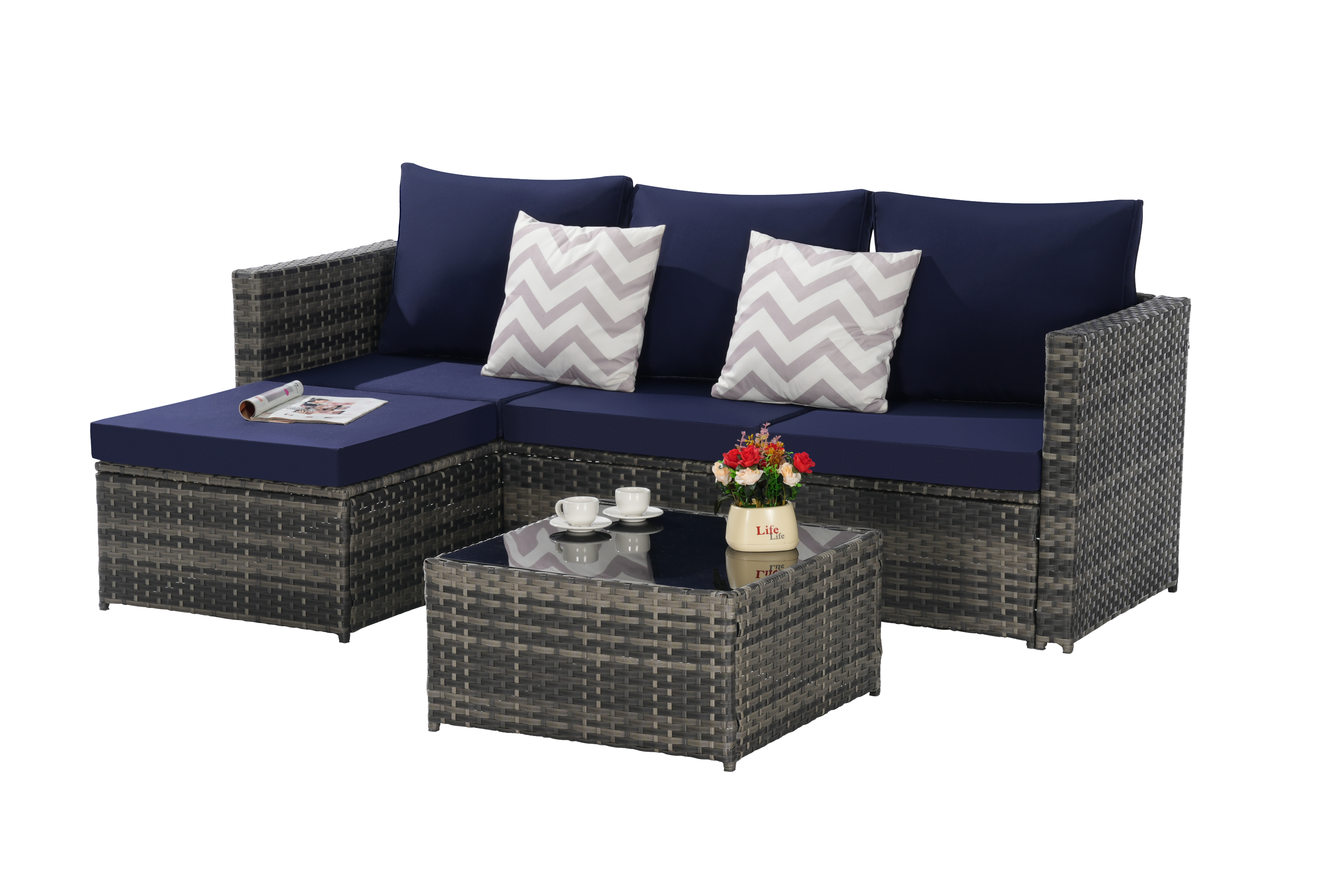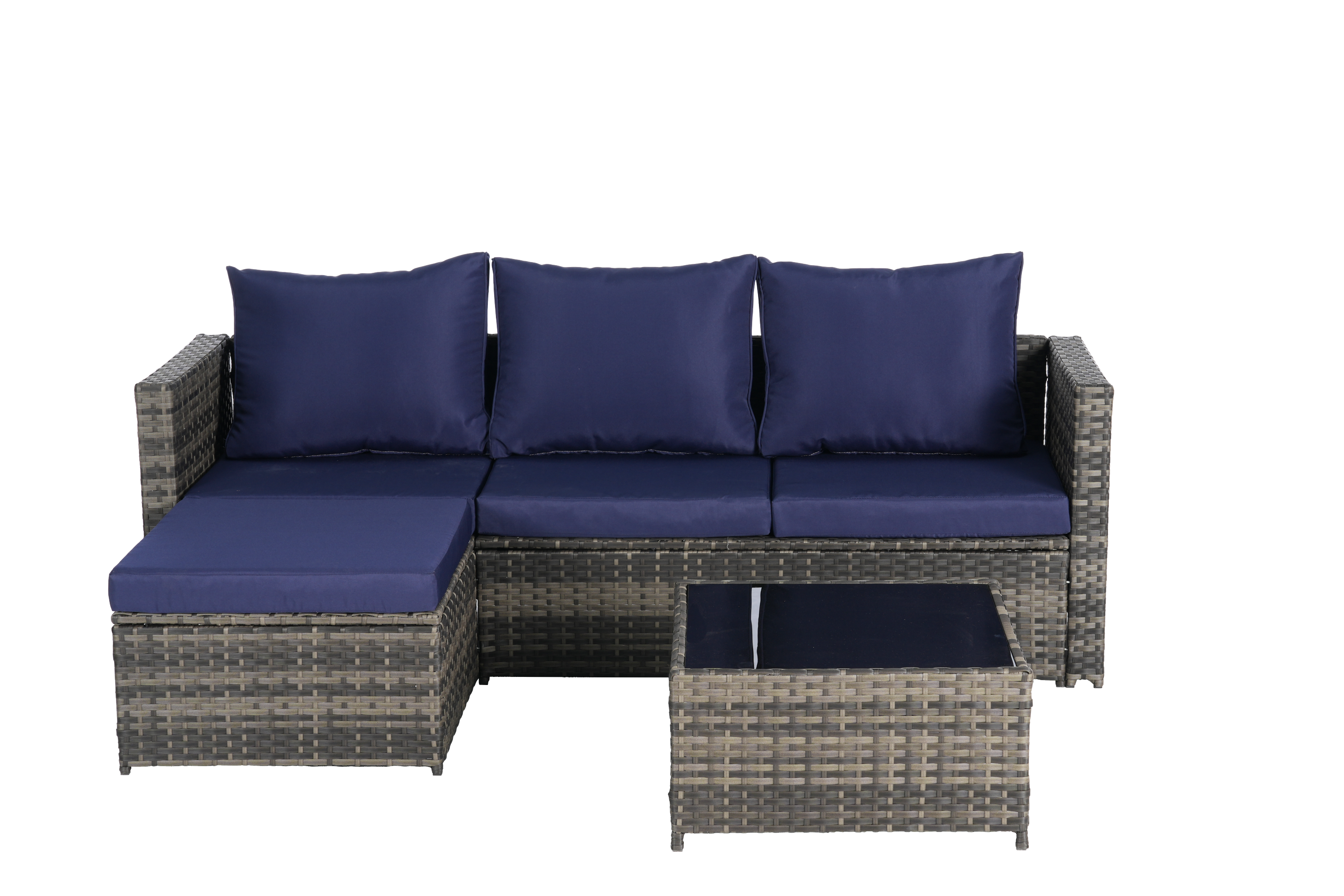 2 Pieces Patio Furniture Set,Outdoor Woven Sectional L- Shaped Patio Furniture ,Wicker Conversation Set with Ottoman, Detachable Lounger Table for Backyard Poolside W874P264741-djyc