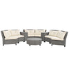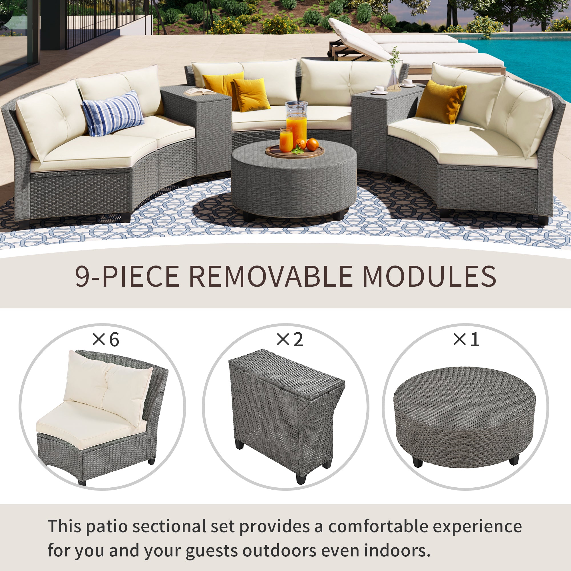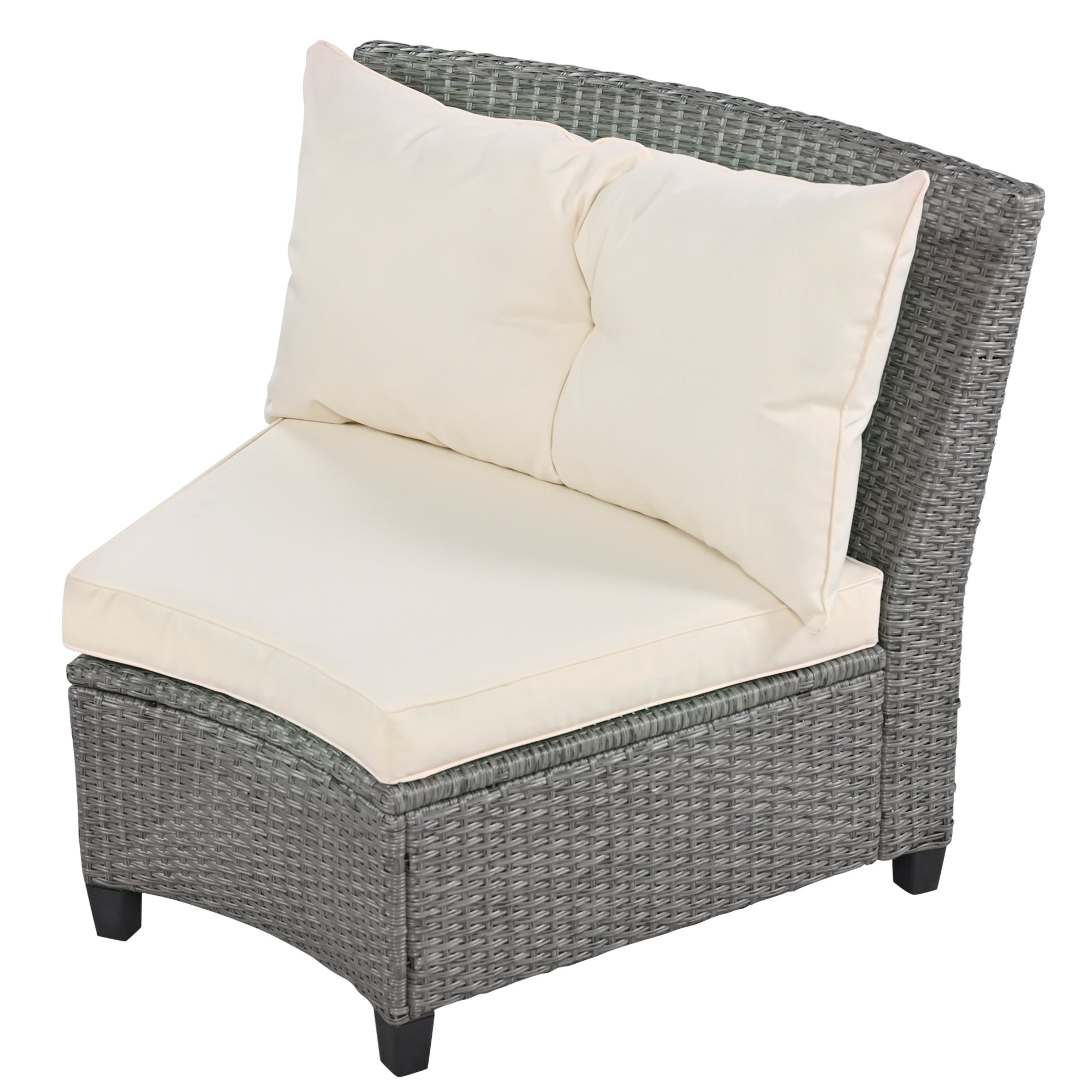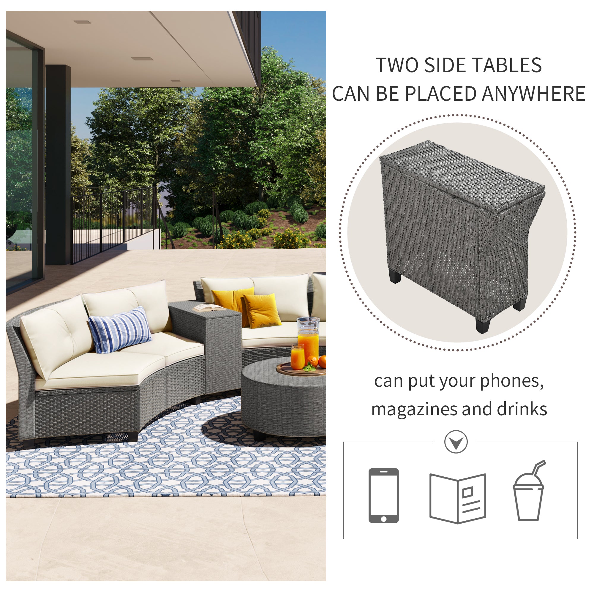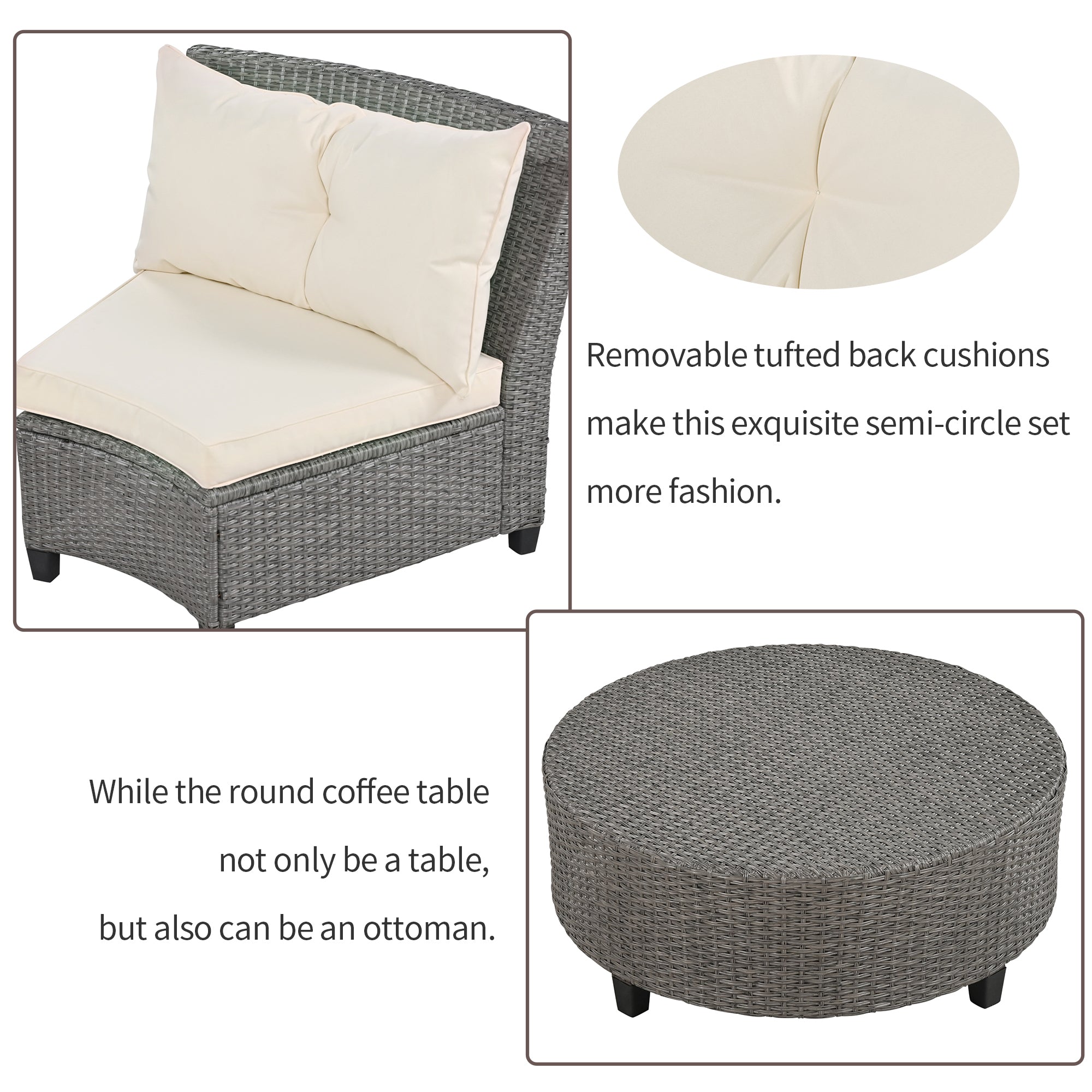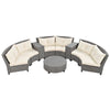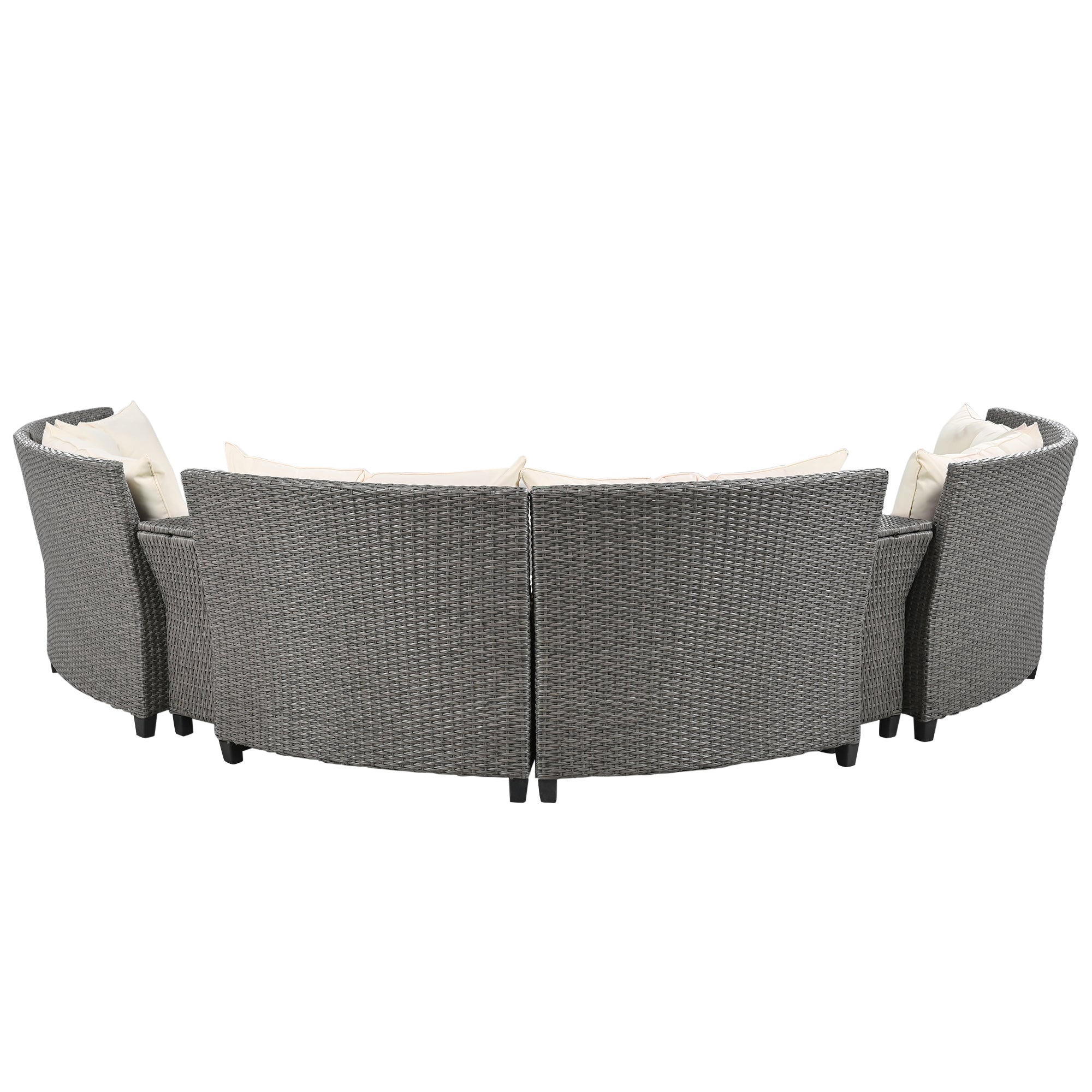[VIDEO provided]U_Style 6 - Person Fan-shaped Rattan Suit Combination with Cushions and Table,Suitable for Garden WY000323AAE-djyc