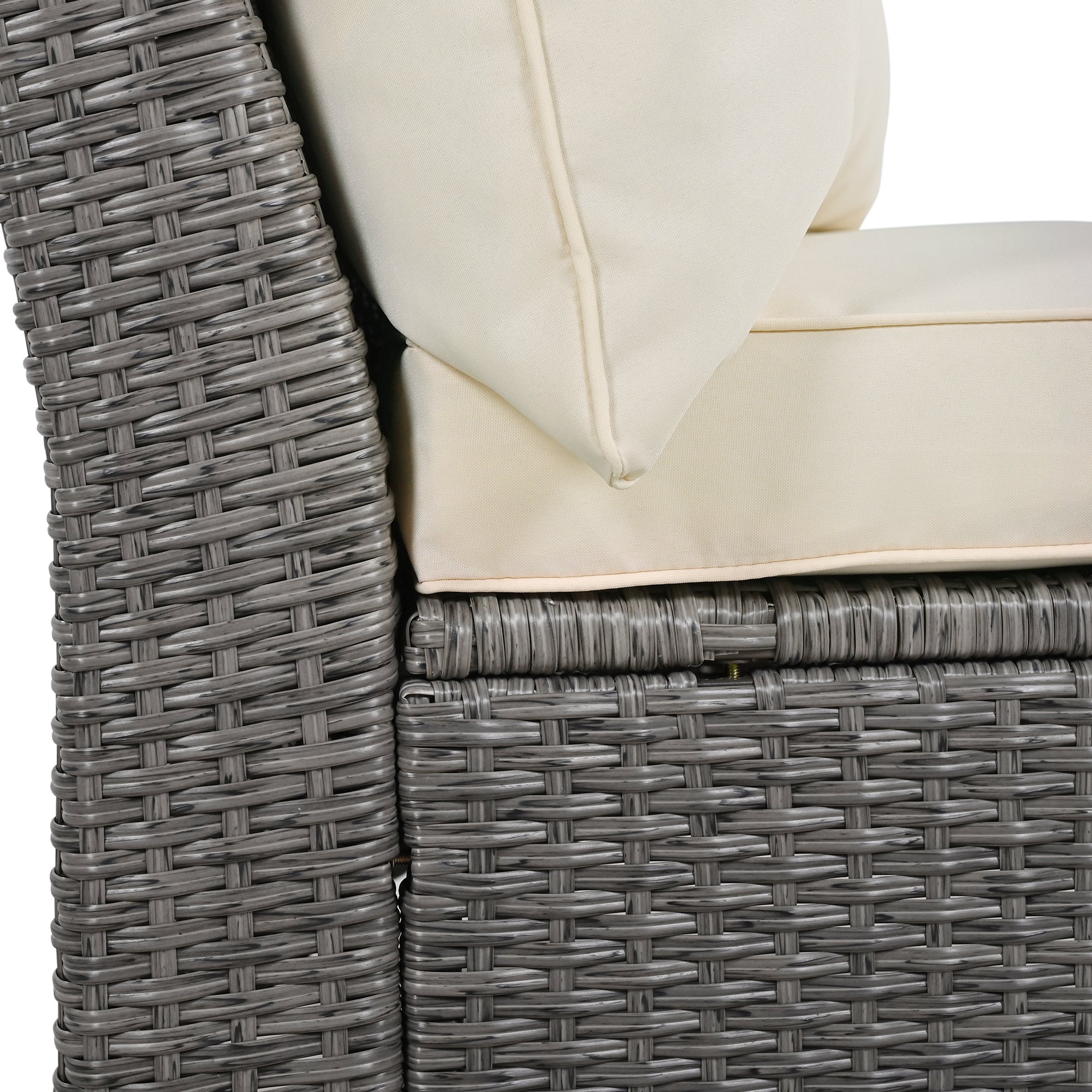 - [Versatile Use] This Fan-shaped Rattan Suit Combination is perfect for hosting large events or gatherings. It can accommodate multiple guests, making it perfect for dinner parties or barbecues. The cushions are comfortable and provide ample support for extended use.
