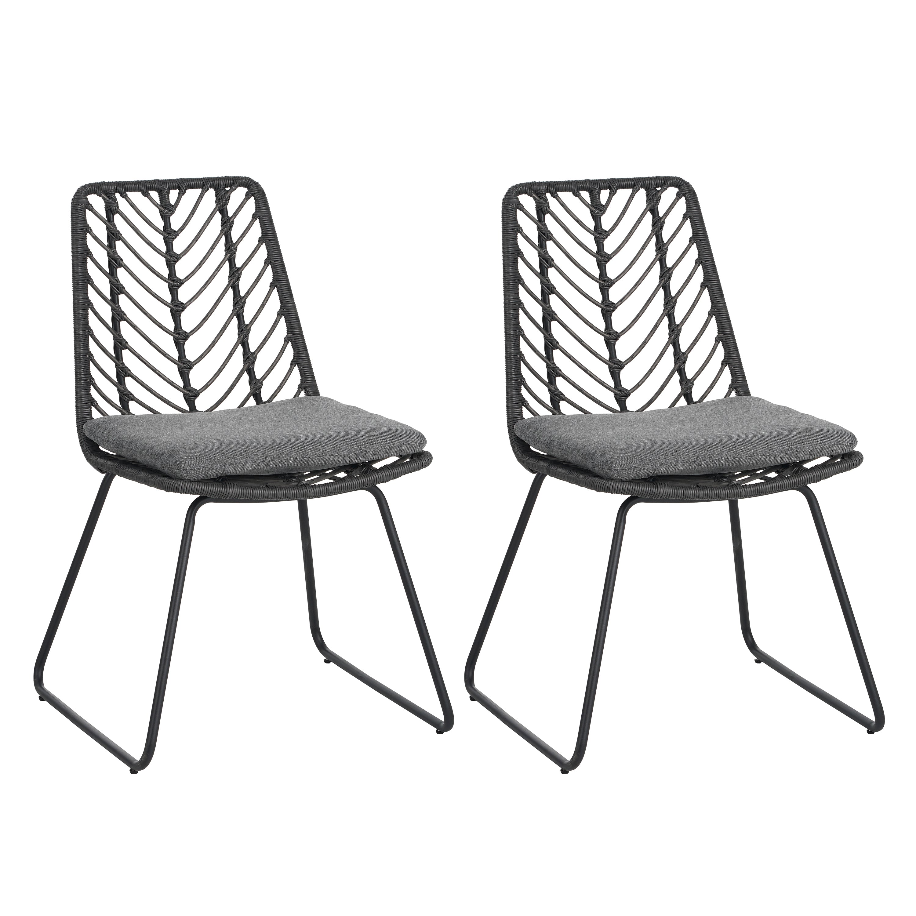 Transitional Style Outdoor Rattan Dining Chair Set (2 Pieces) with Water-Resistant Cushions, Minimalist Design N762P240764E-djyc