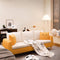 Stylish Light Gray Sofa with Off White, Mint Green, Grass Pink, and Yellow Wood Accents – Premium Cotton Upholstery qm-11