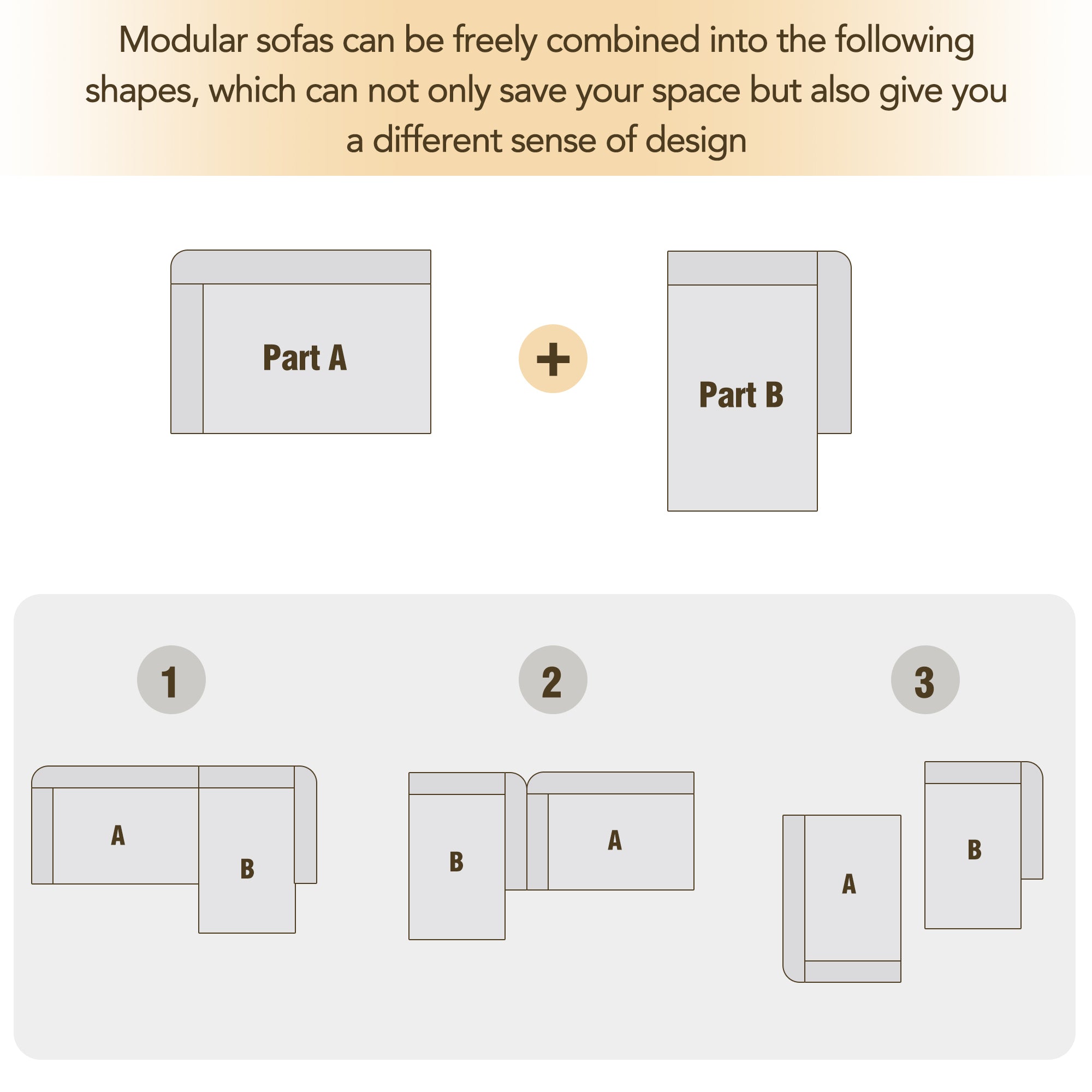 112.2*74' Modular Modular Combination Living Room Sofa Set, Modern Minimalist Sofa, Living Room Upholstered Sofa Bed, Bedroom, 2pcs Computer Free Combination, L-Shaped,Light Gray N719S001240R-djyc