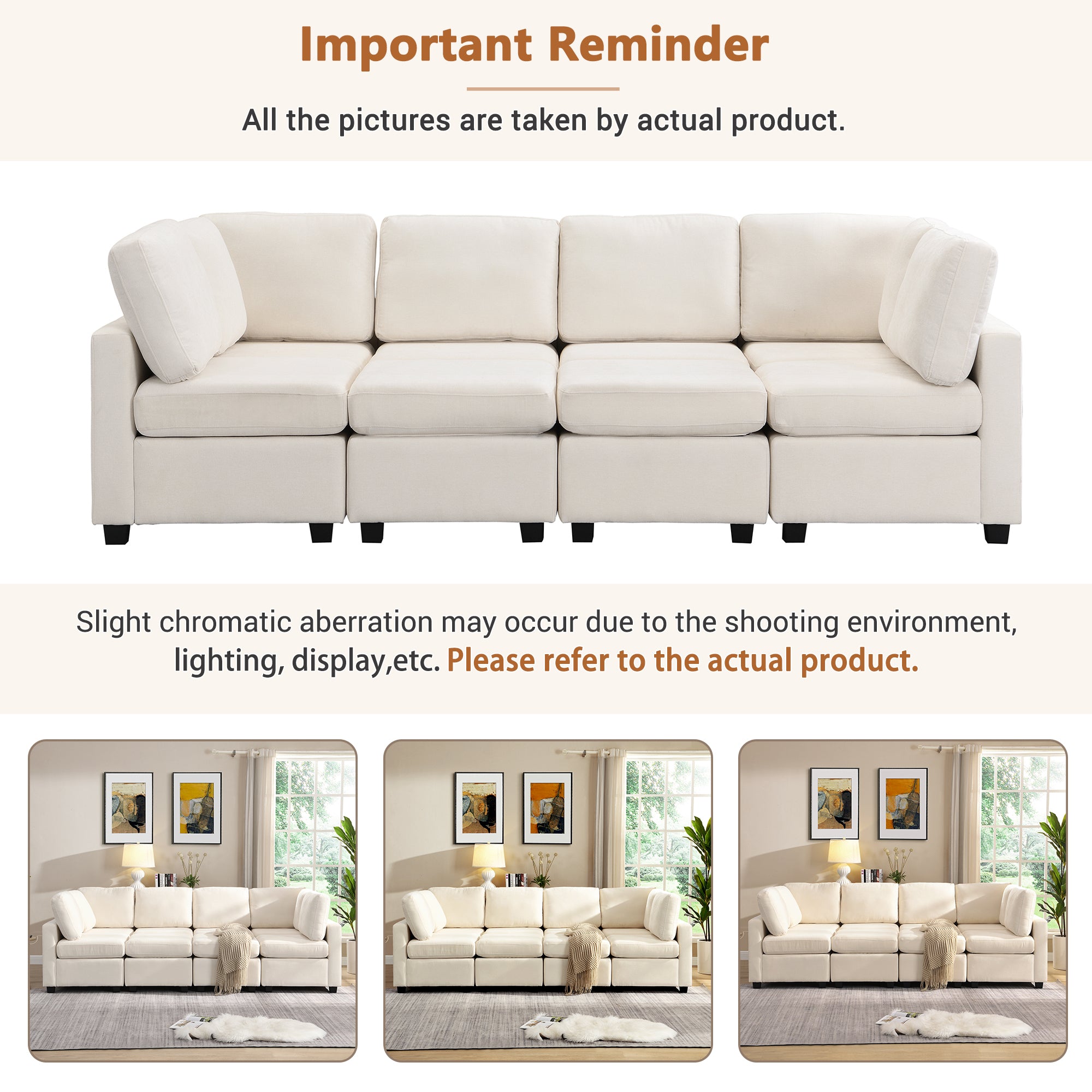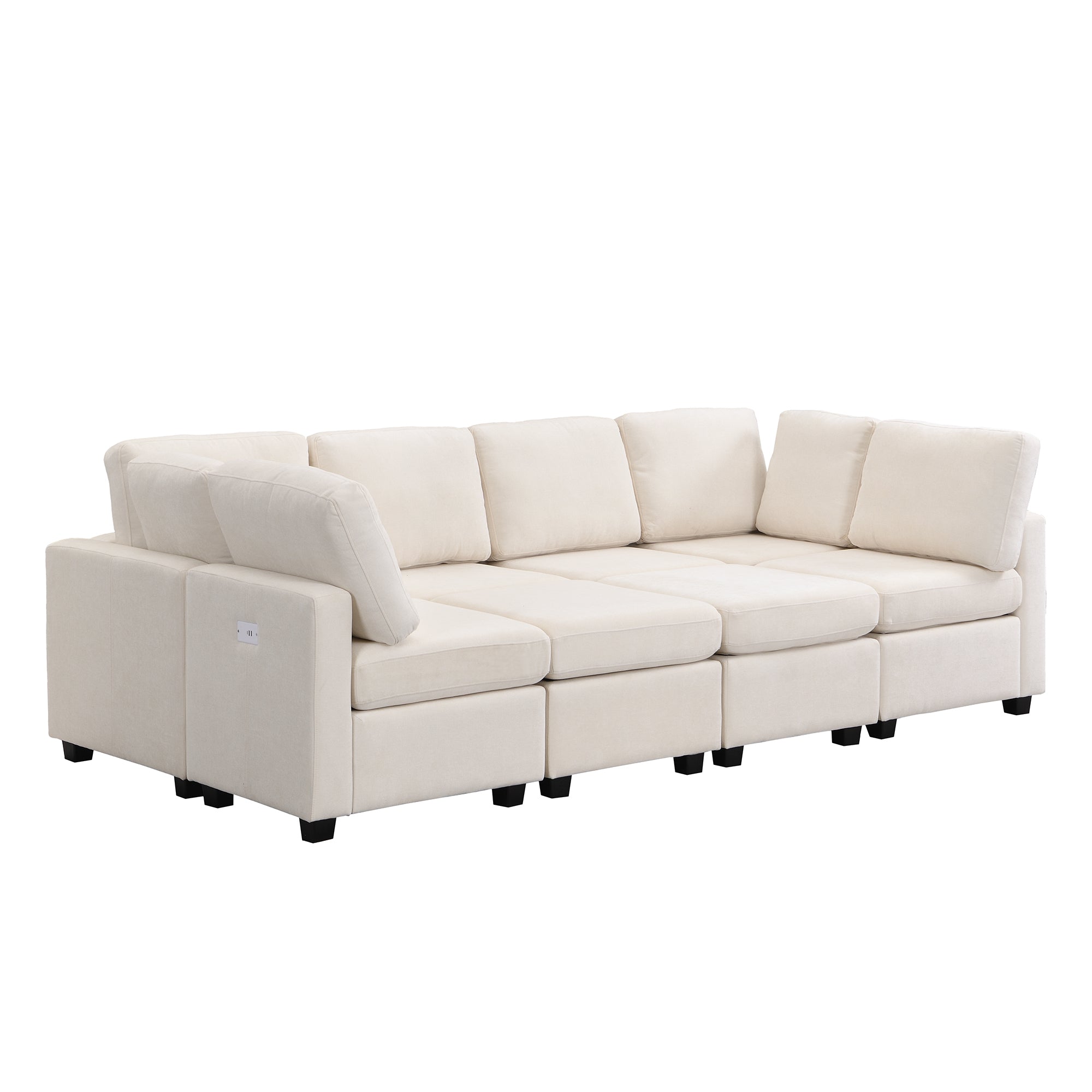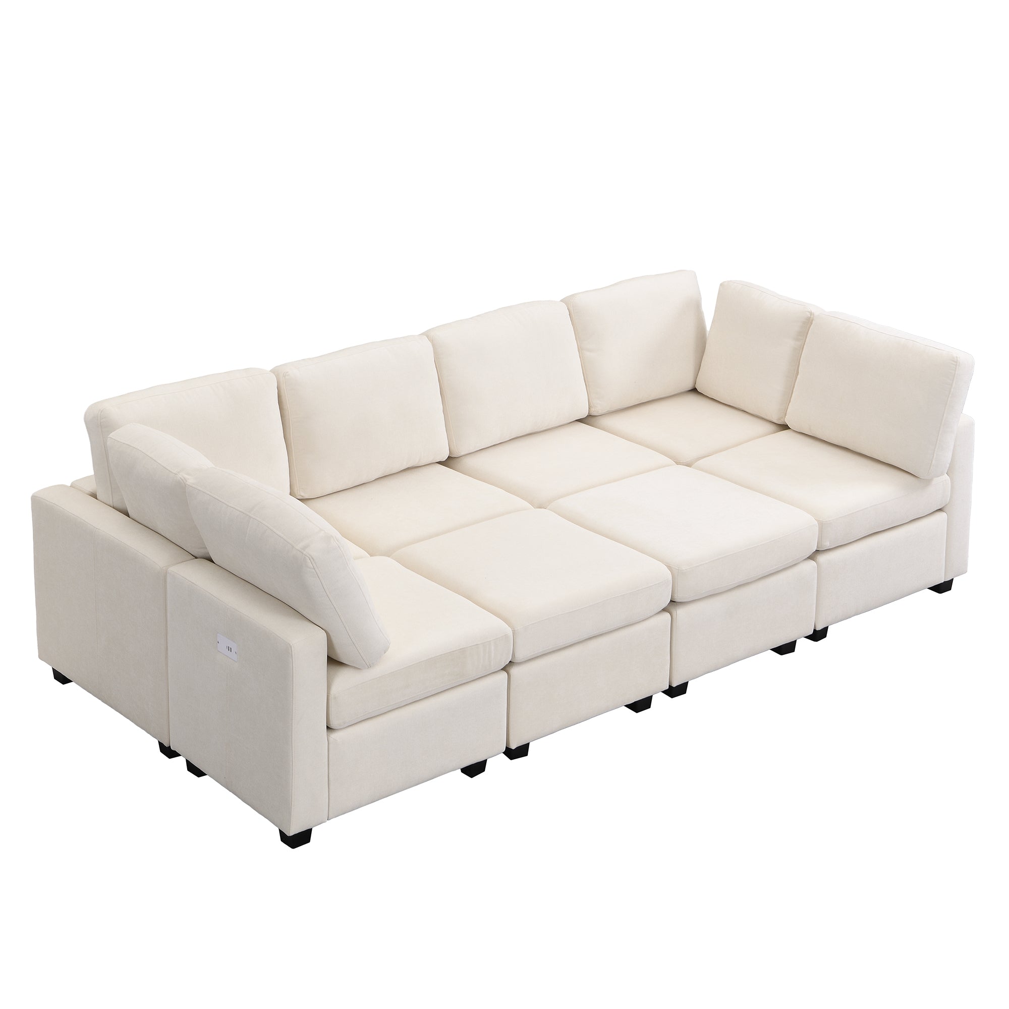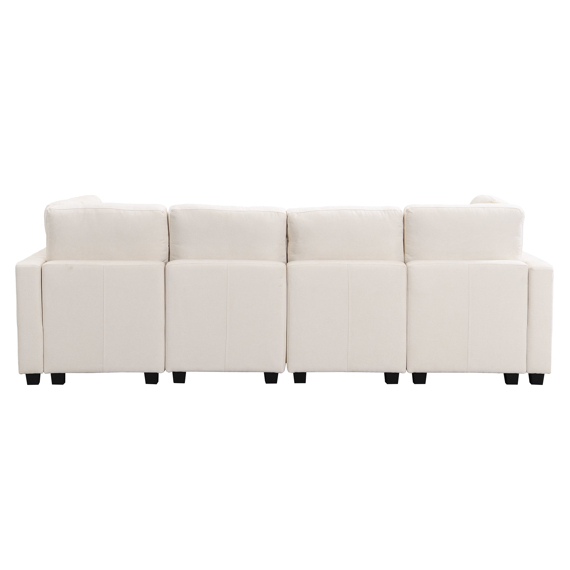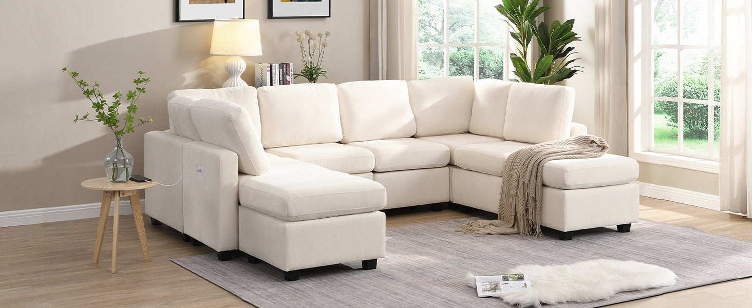 103' Sectional Sofa Couch Sofa Bed U-shaped Sofa with Two Movable Ottoman and Three USB Ports for Living Room, Beige N719S001620A-djyc