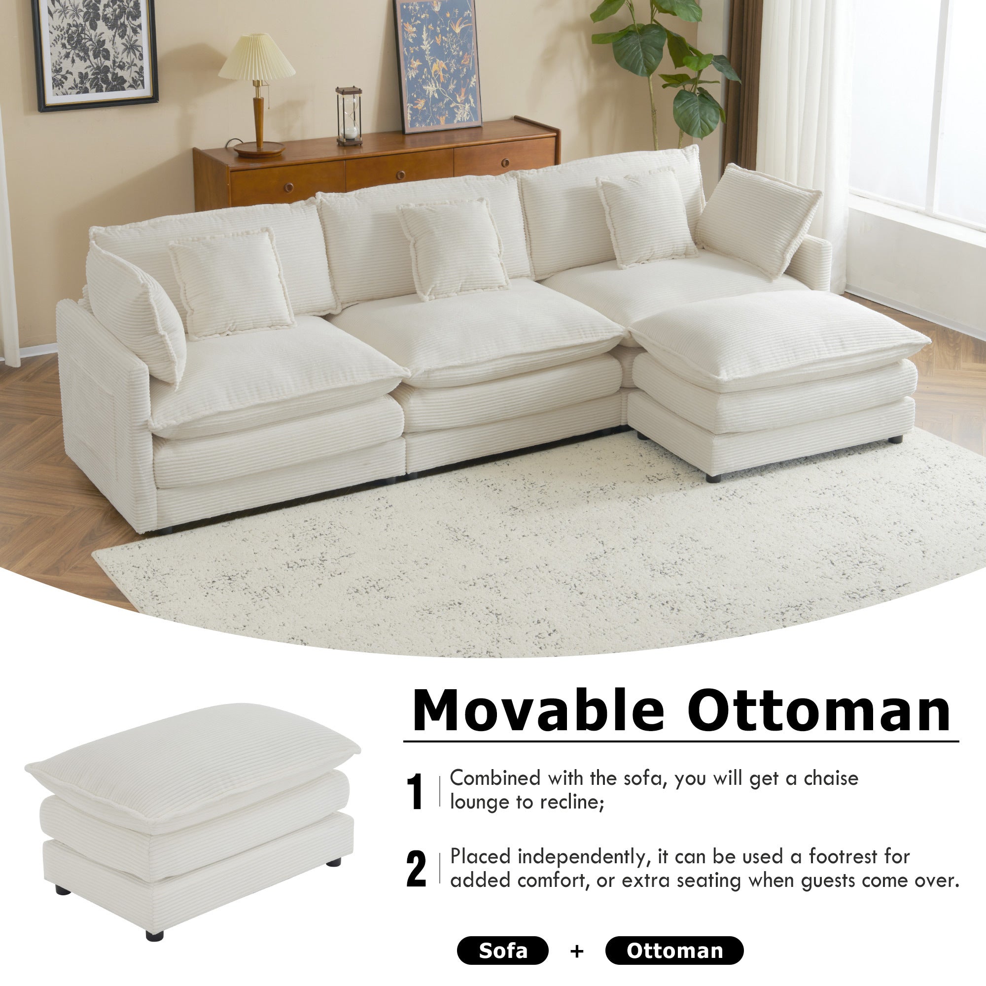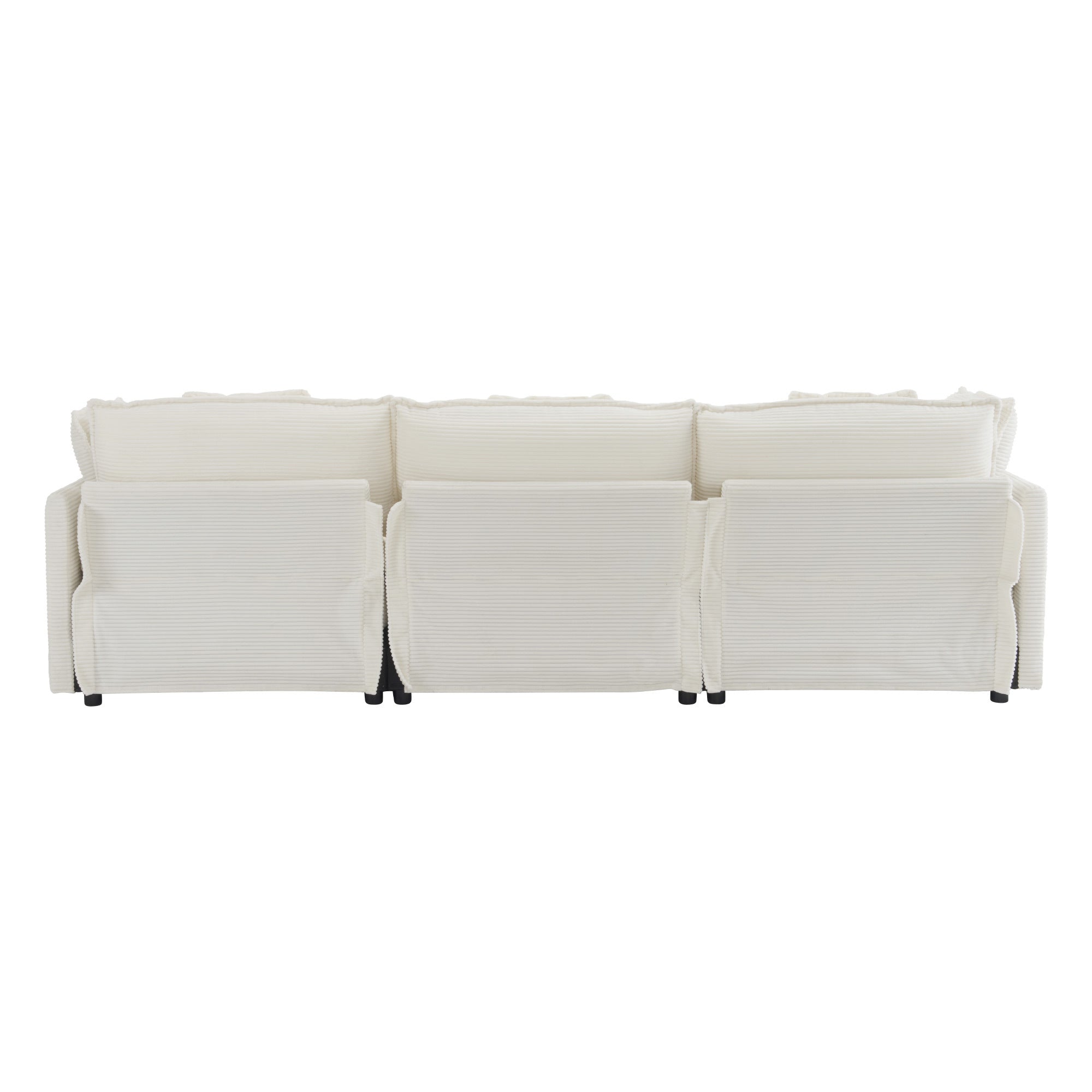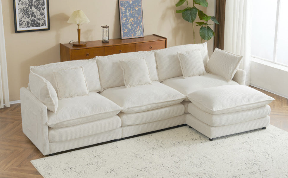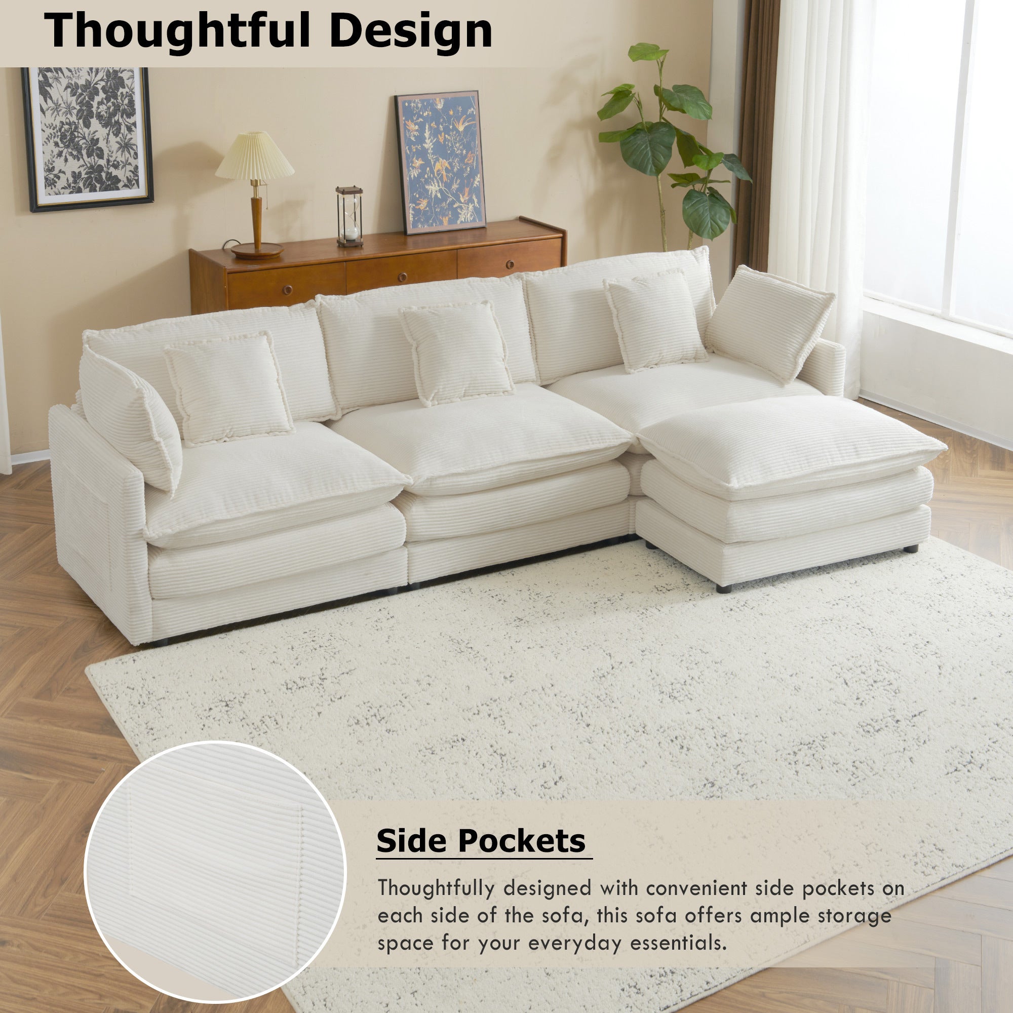 112.6' Modern Sofa Modular Sofa Couch Upholstered Corduroy L-Shape Sectional Sofa with Side Storage Pockets for Living Room, Beige N719S001723A-djyc