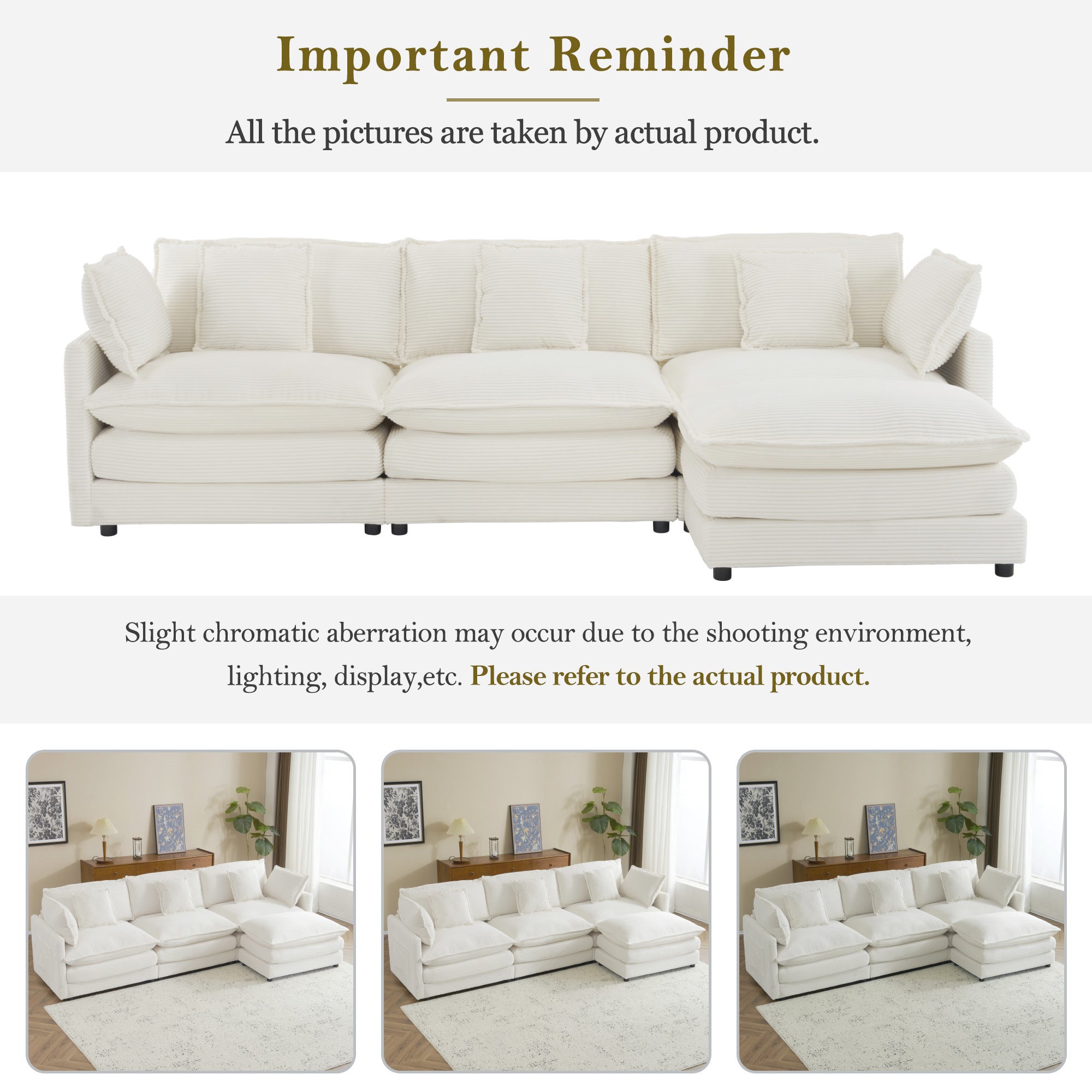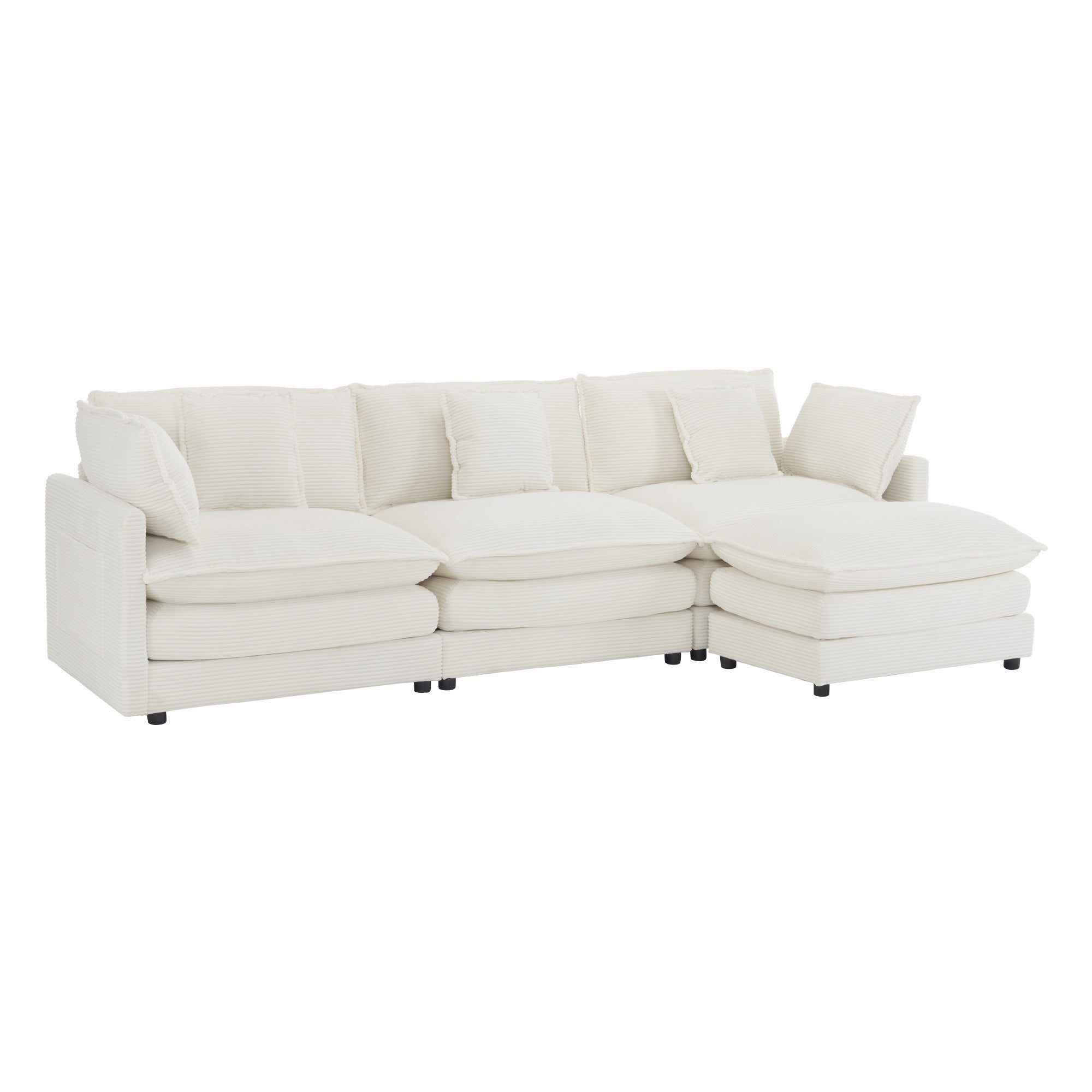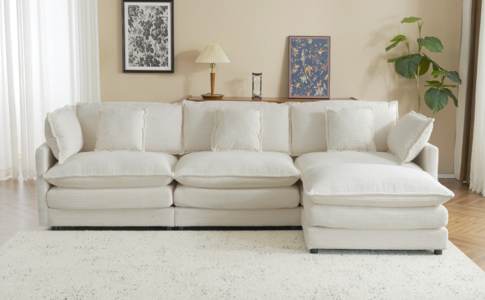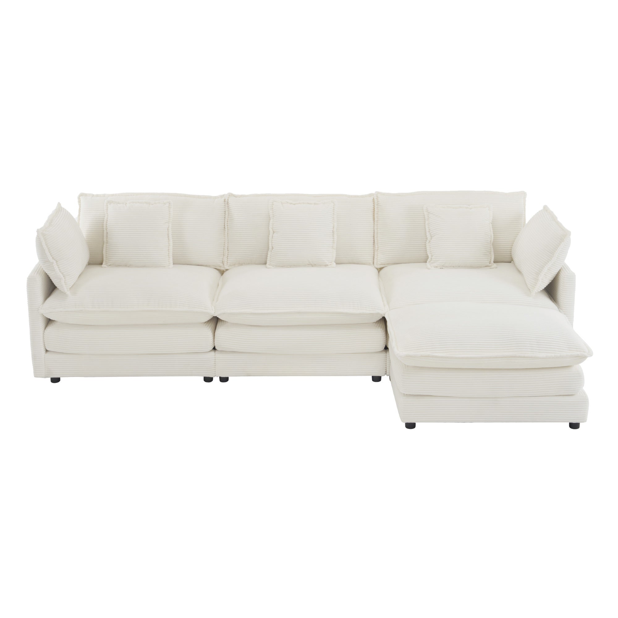 112.6' Modern Sofa Modular Sofa Couch Upholstered Corduroy L-Shape Sectional Sofa with Side Storage Pockets for Living Room, Beige N719S001723A-djyc