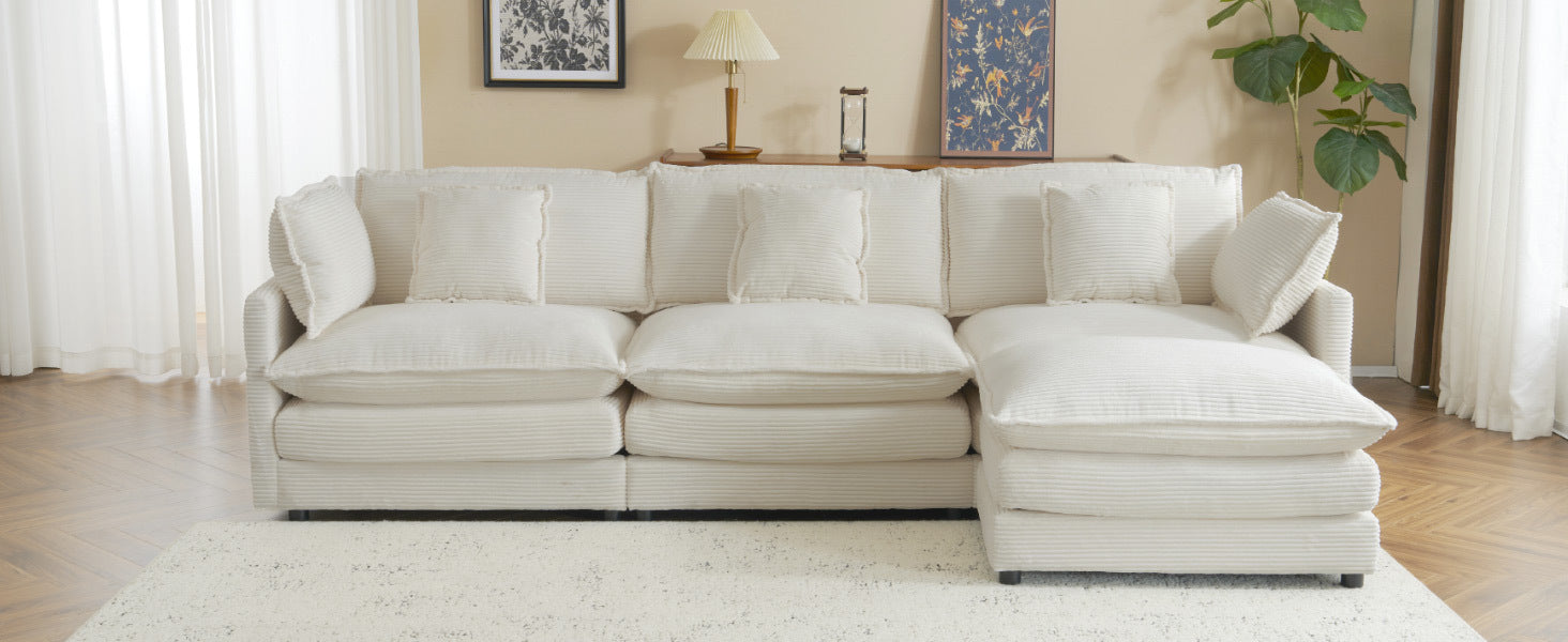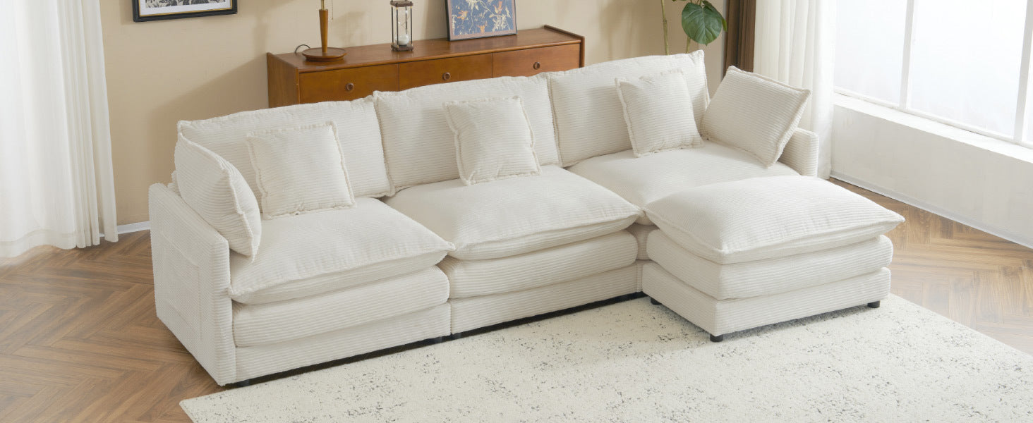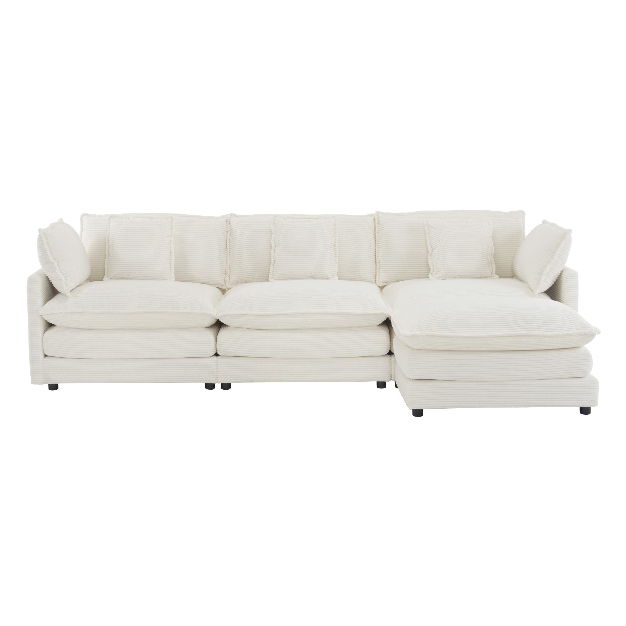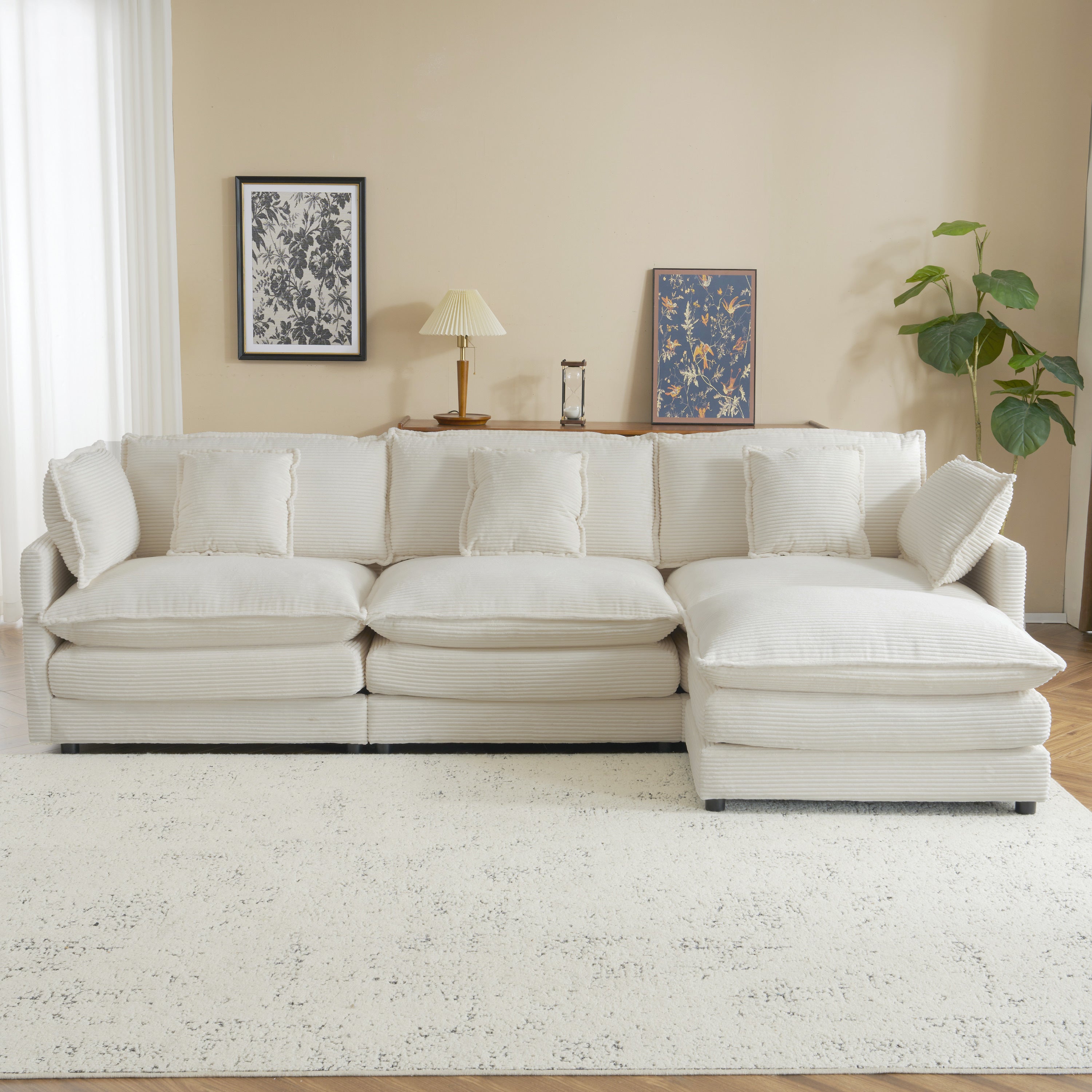 112.6' Modern Sofa Modular Sofa Couch Upholstered Corduroy L-Shape Sectional Sofa with Side Storage Pockets for Living Room, Beige N719S001723A-djyc