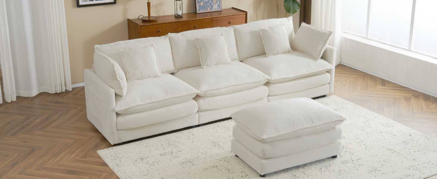 - Comfortable Seating Experience – This sofa features an extra-deep 23.2' seat, offering a soft and cozy feel. It's fully upholstered in plush corduroy fabric, so when you sit down, you’ll immediately notice the smooth, wrinkle-free touch of the high-quality material.