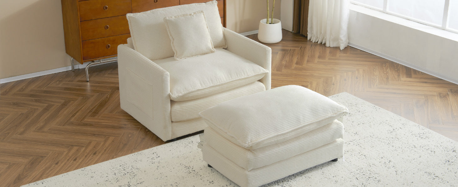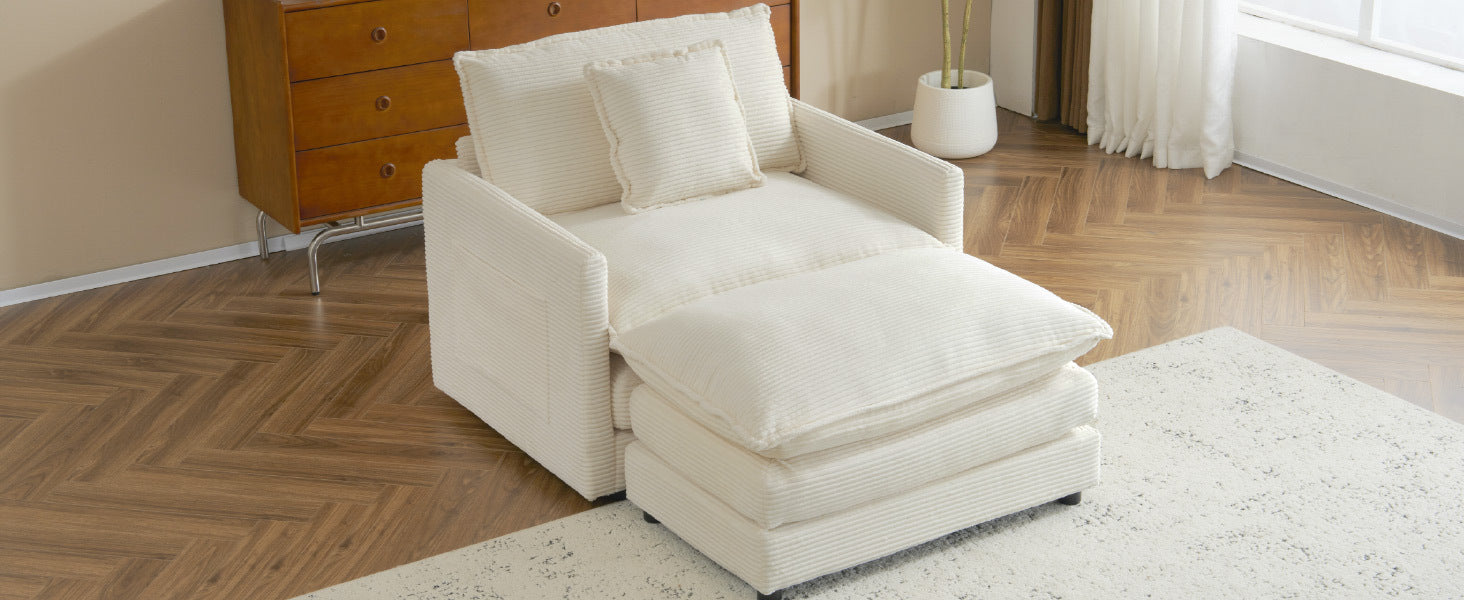 - Comfortable Seating Experience – This sofa features an extra-deep 23.2' seat, offering a soft and cozy feel. It's fully upholstered in plush corduroy fabric, so when you sit down, you’ll immediately notice the smooth, wrinkle-free touch of the high-quality material.