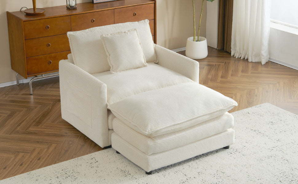 - Movable Ottoman -This sofa couch comes with a movable ottoman, offering great flexibility and convenience. The ottoman can easily be repositioned to suit different needs—whether you use it as a footrest for added comfort, or extra seating when guests come over. Its portability allows you to adjust the layout of your living space effortlessly, making it easier to create a customized and functional arrangement.