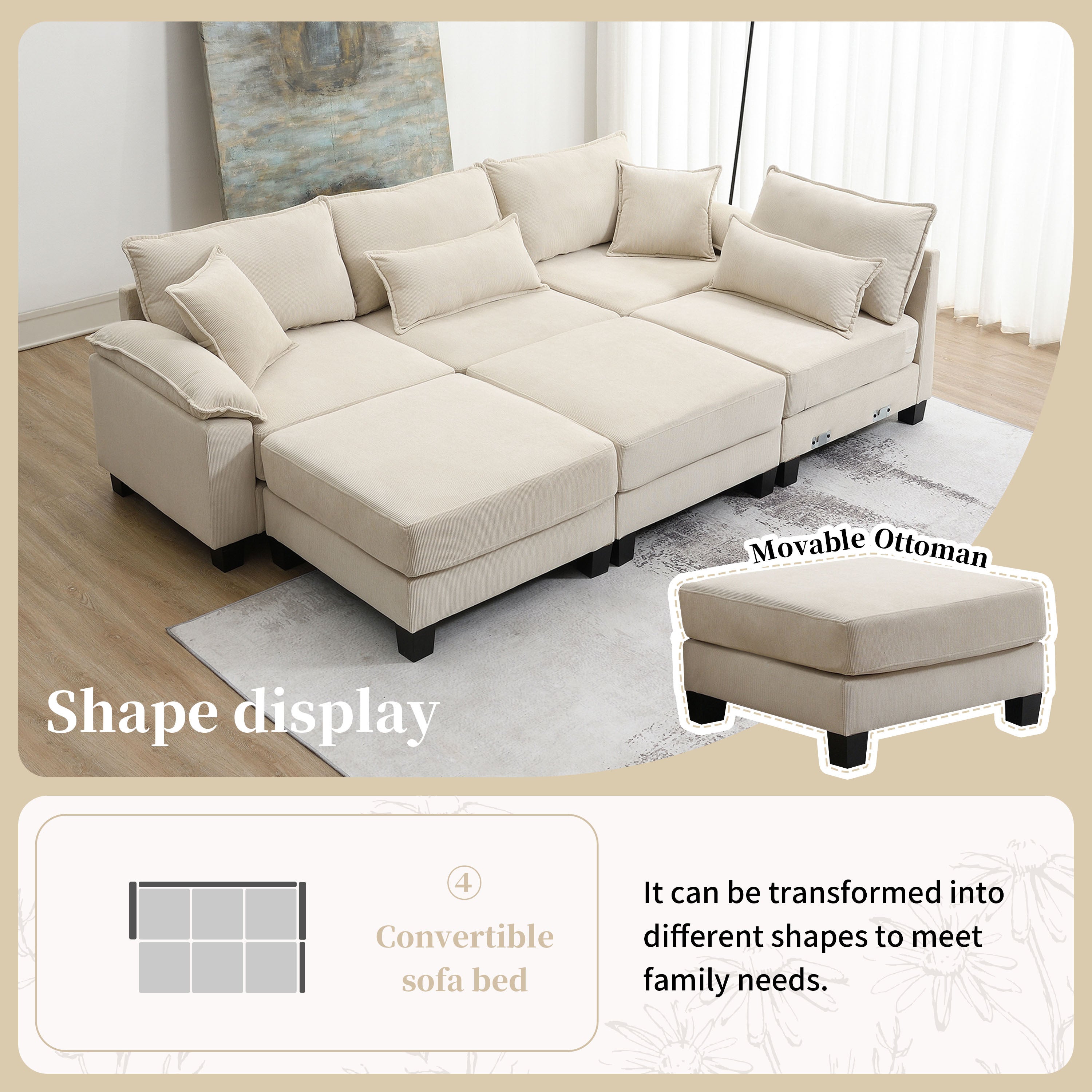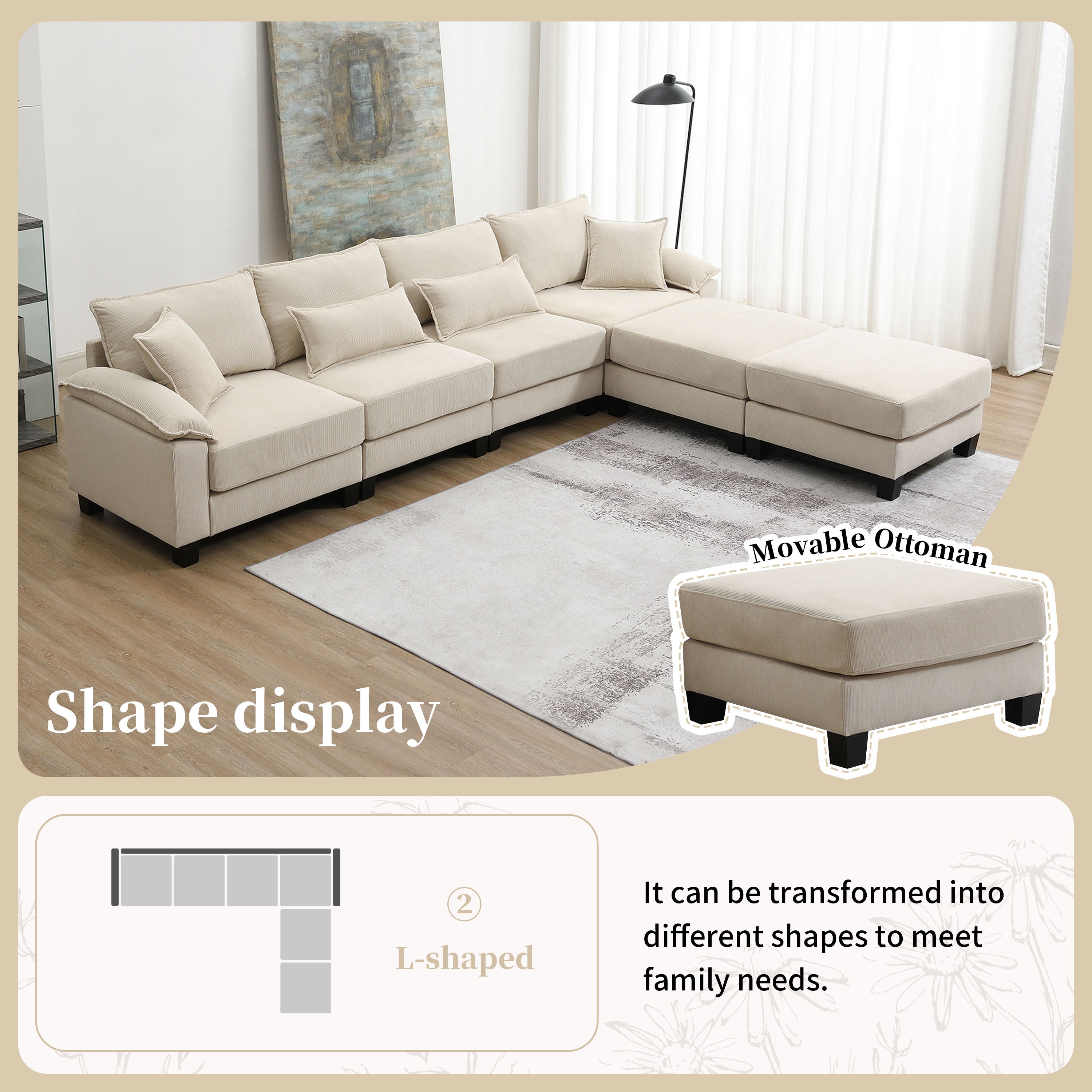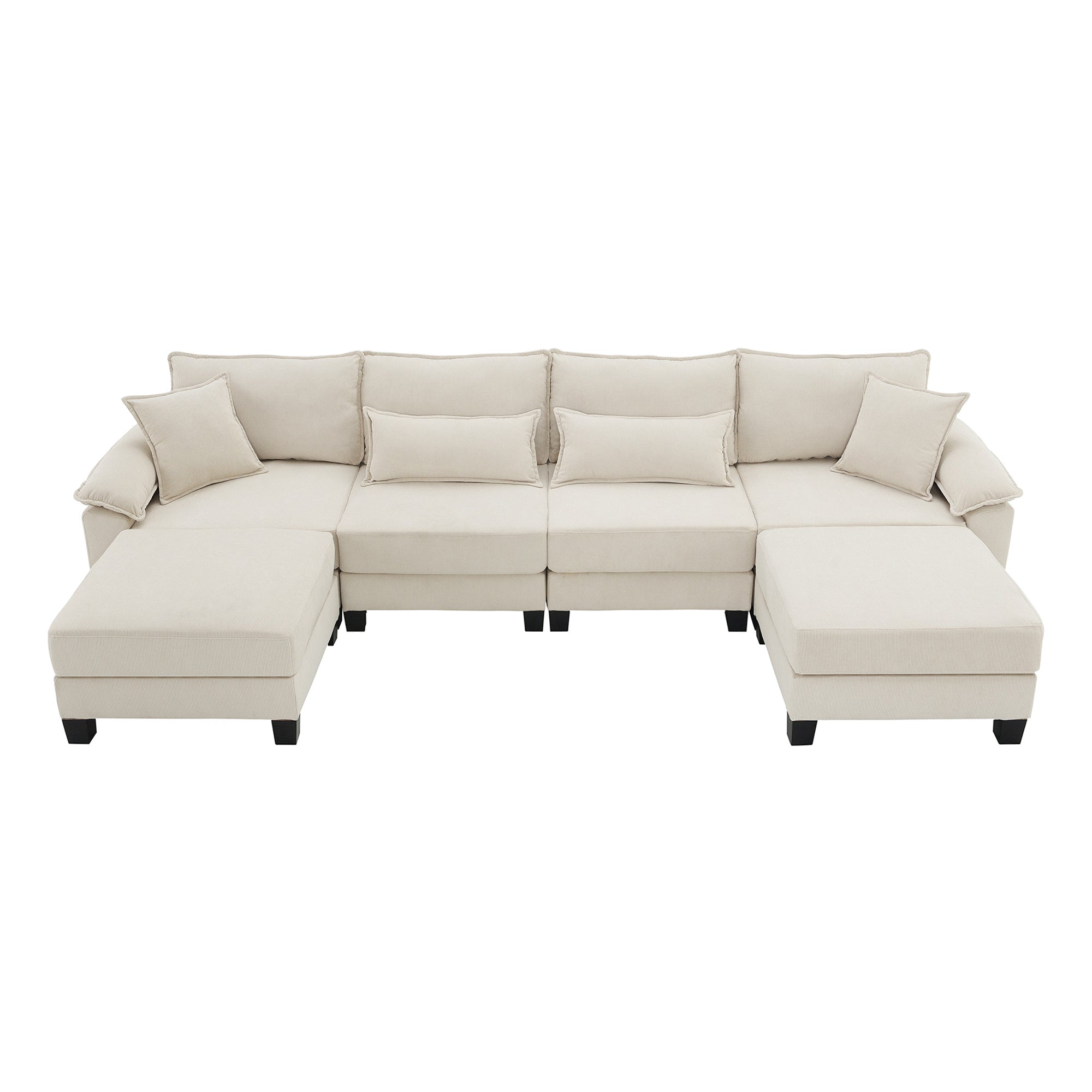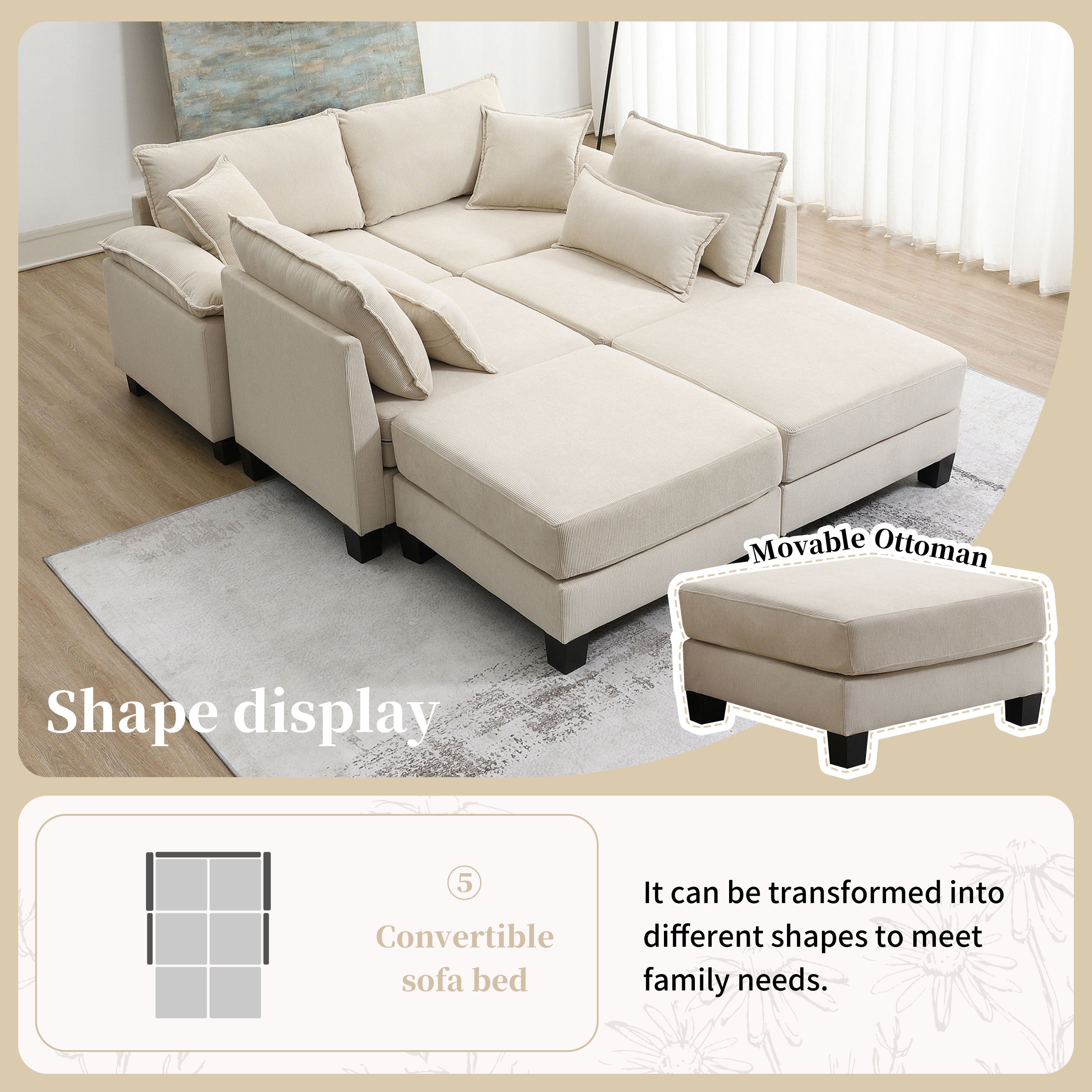 Wide Seat Corduroy Modular Sectional Sofa Bed,Sleeper Couch Set with Armrest Pillow,6 Seat Free Combination Sofa with Ottomans,Oversized Indoor Furniture for Living Room, 2 Colors GS012016AAA-djyc