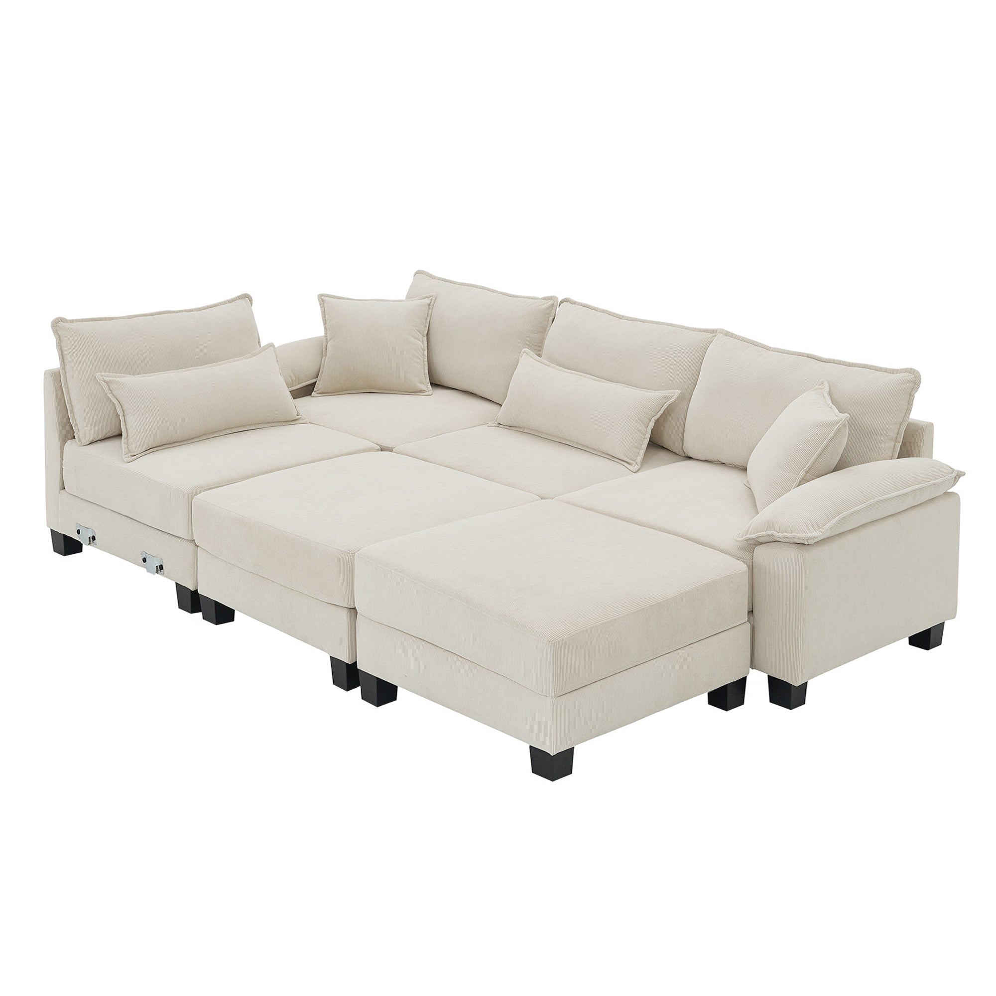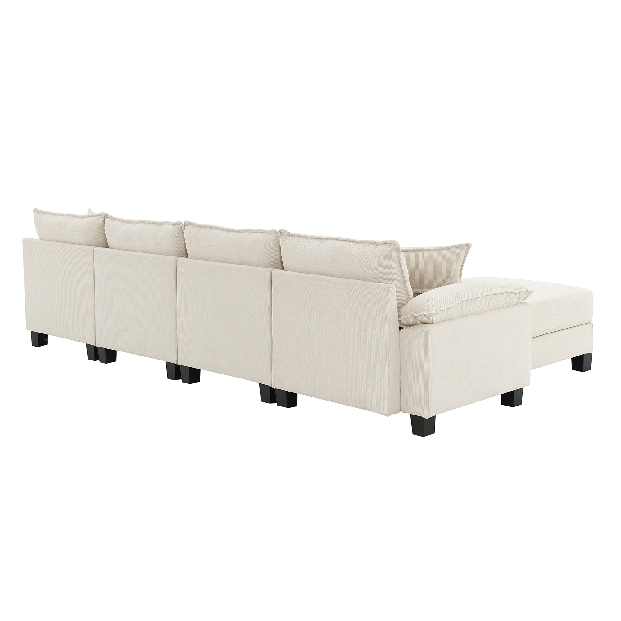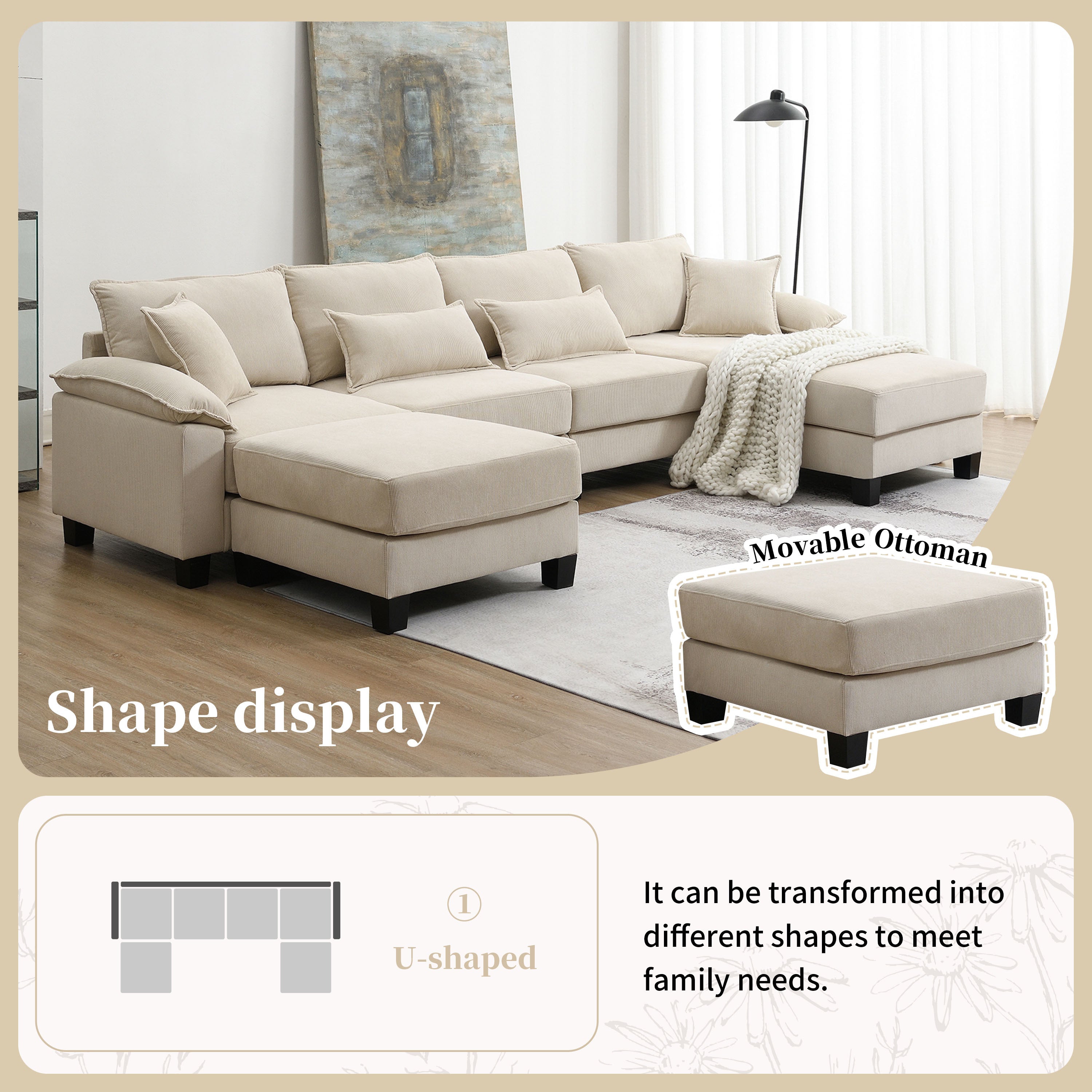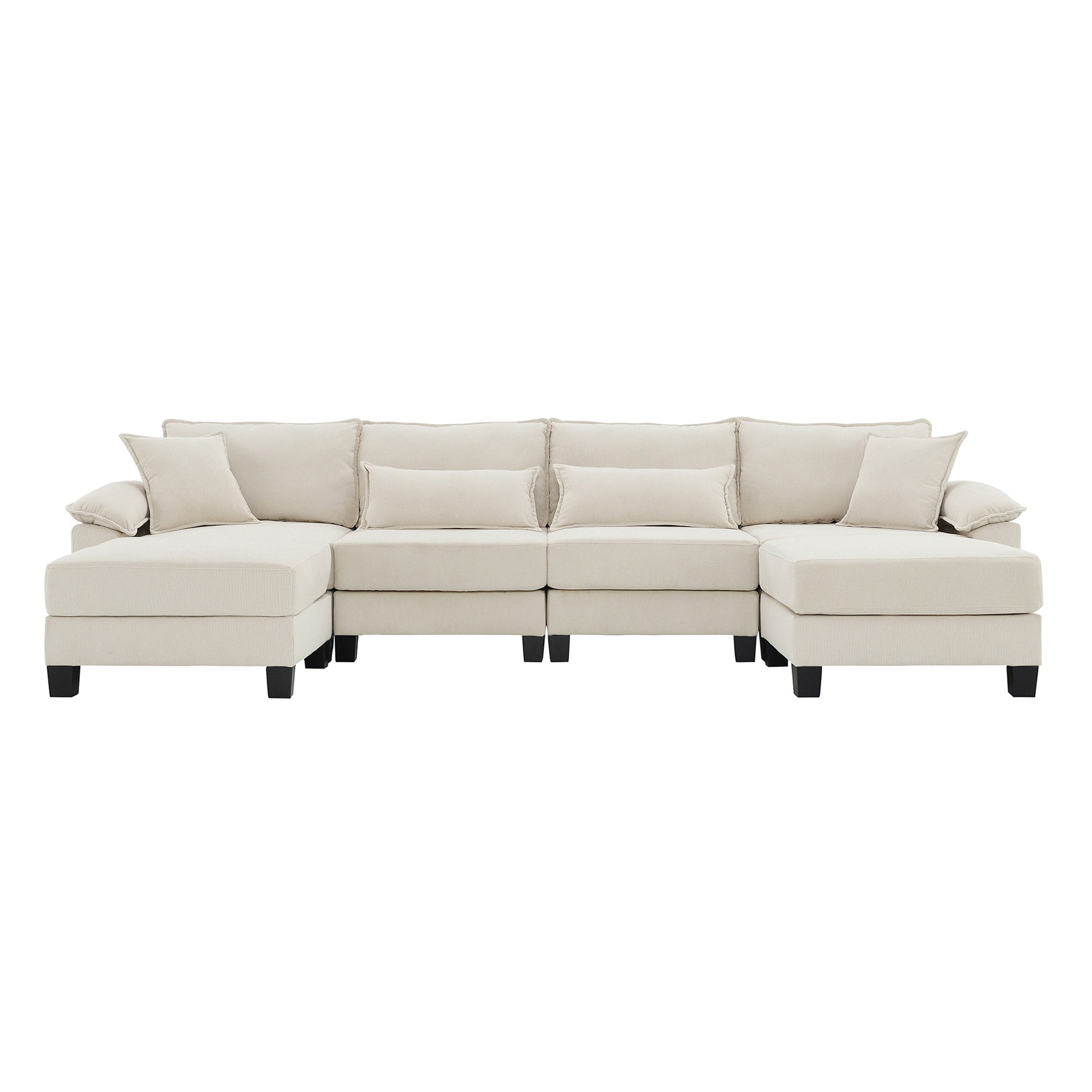 Wide Seat Corduroy Modular Sectional Sofa Bed,Sleeper Couch Set with Armrest Pillow,6 Seat Free Combination Sofa with Ottomans,Oversized Indoor Furniture for Living Room, 2 Colors GS012016AAA-djyc