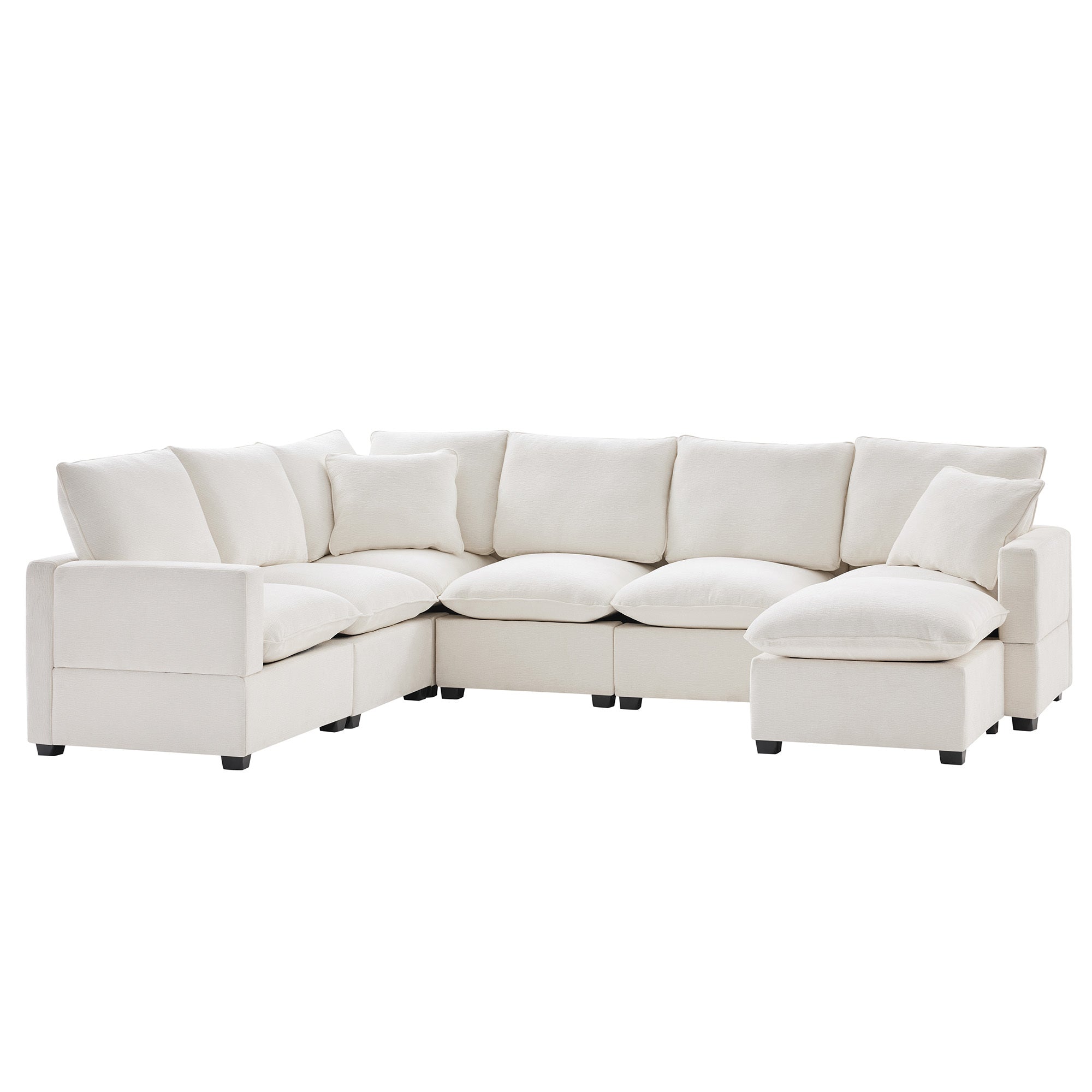110*86' Modern U Shape Modular Sofa, 7 Seat Chenille Sectional Couch Set with 2 Pillows Included, Freely Combinable Indoor Funiture for Living Room, Apartment, Office, 2 Colors GS109016AAA-djyc