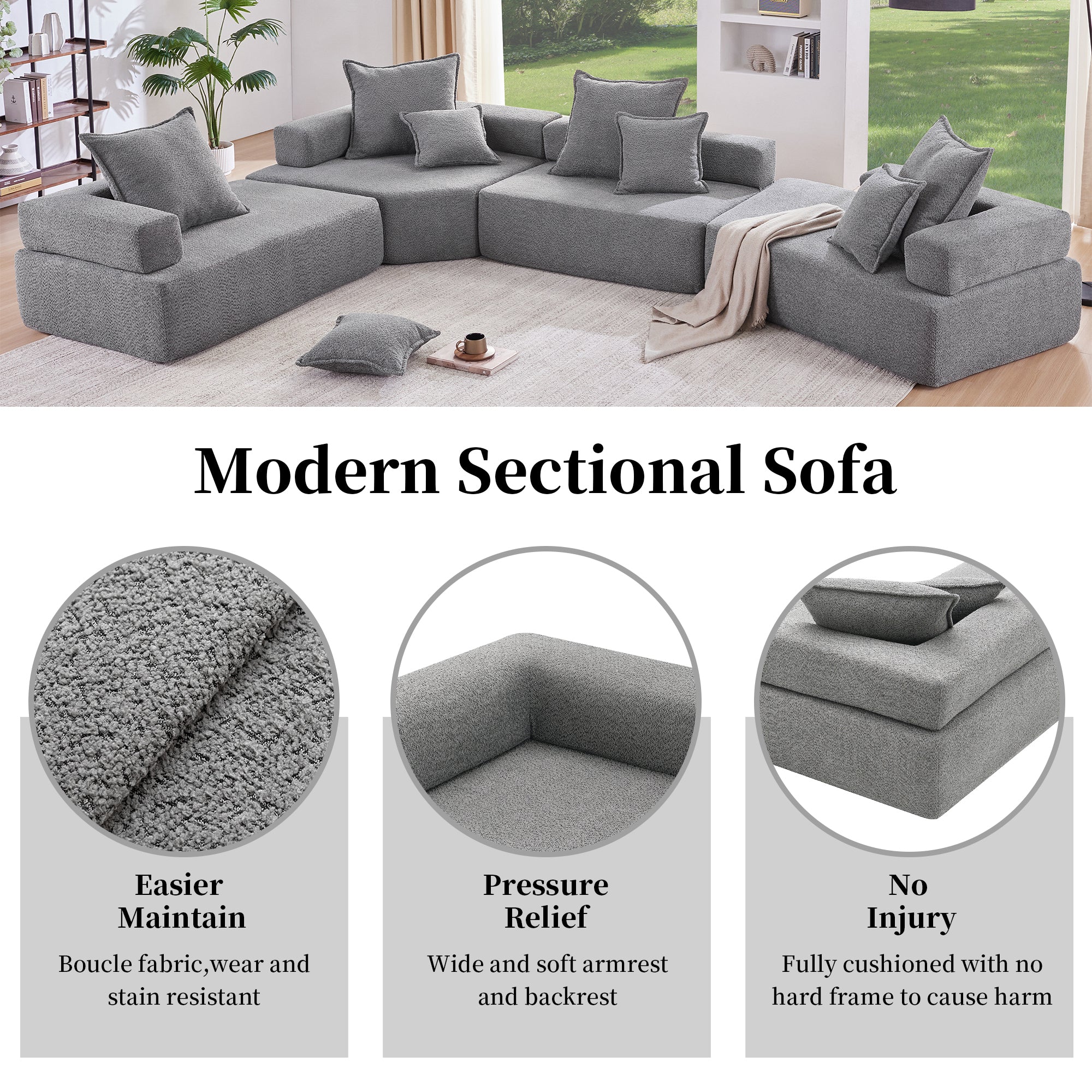 Loveseat Frame for Oversized Modular U Shaped Sectional Sofa,Luxury Boucle Floor Couch,Convertible Compressed Couch,Spacious Foam-Filled Sofa for Living Room,2 Colors N723P167175-djyc
