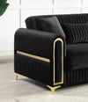 Ruby Modern Upholstered Sofa in Black with Solid Birch Wood Frame, Pocket Coil Seating and Gold Stainless Steel Legs-B009S02245