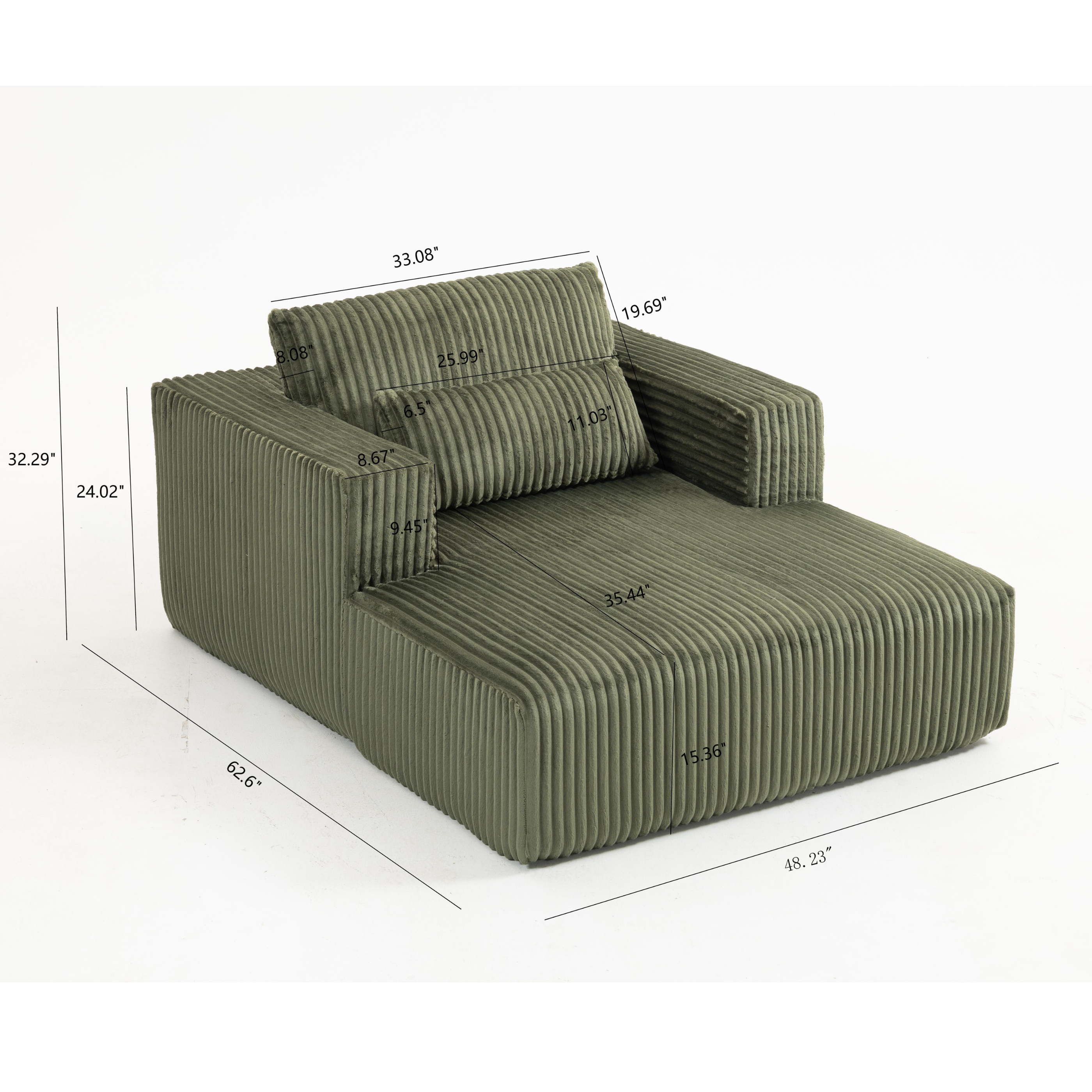 Sofa Bed 62.6' x 48.23', 1-2 Seater Compressed Couch with 2 Lumbar Pillows, Soft Skin-Friendly Corduroy Fabric, Modern Convertible Sleeper for Living Room, Bedroom & Apartment, Ships in 1 Box, Green-W3326P345960