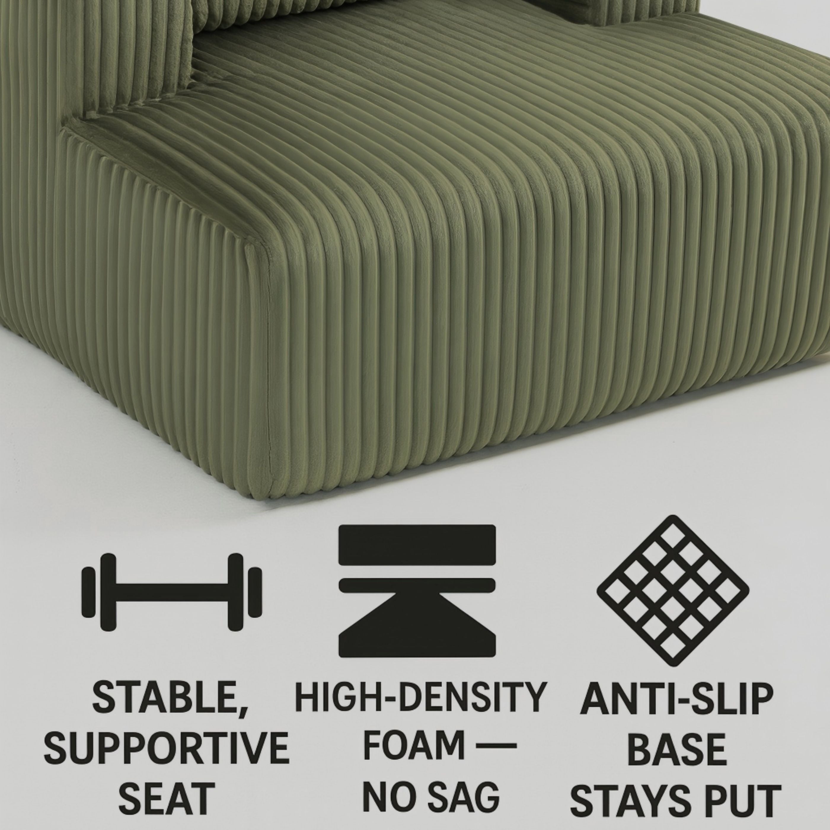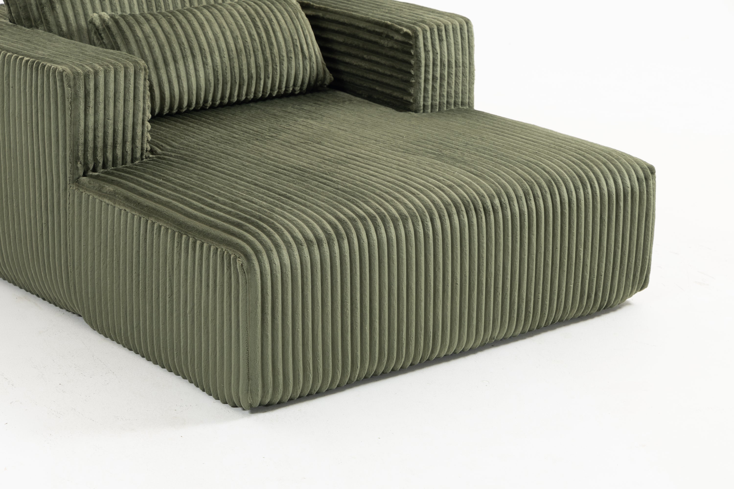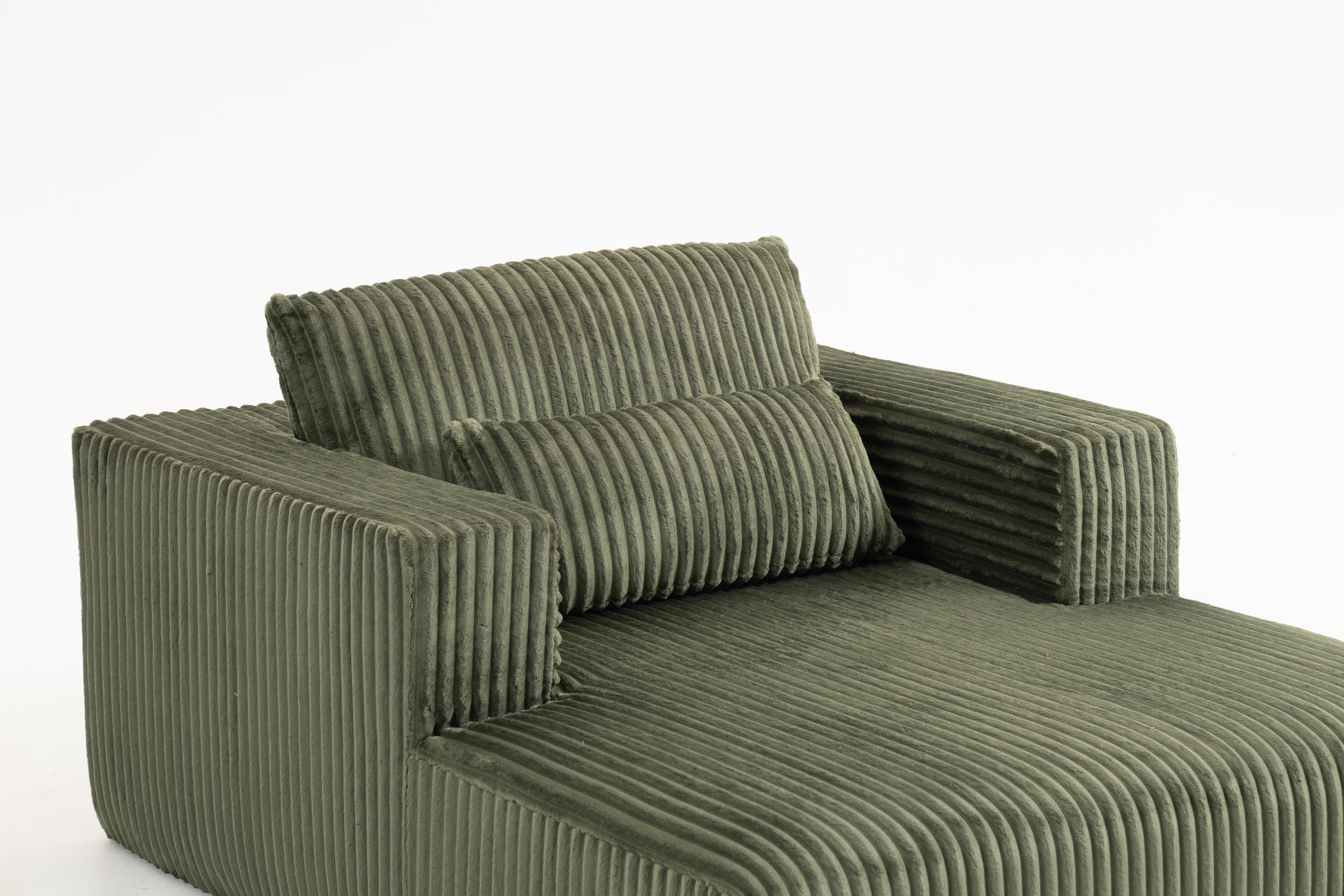 - Upholstered in premium ribbed corduroy, this sofa offers a velvety-soft touch with a distinctive textured finish. The vertical channel design enhances both comfort and modern aesthetics, creating a warm and inviting atmosphere in any living space.