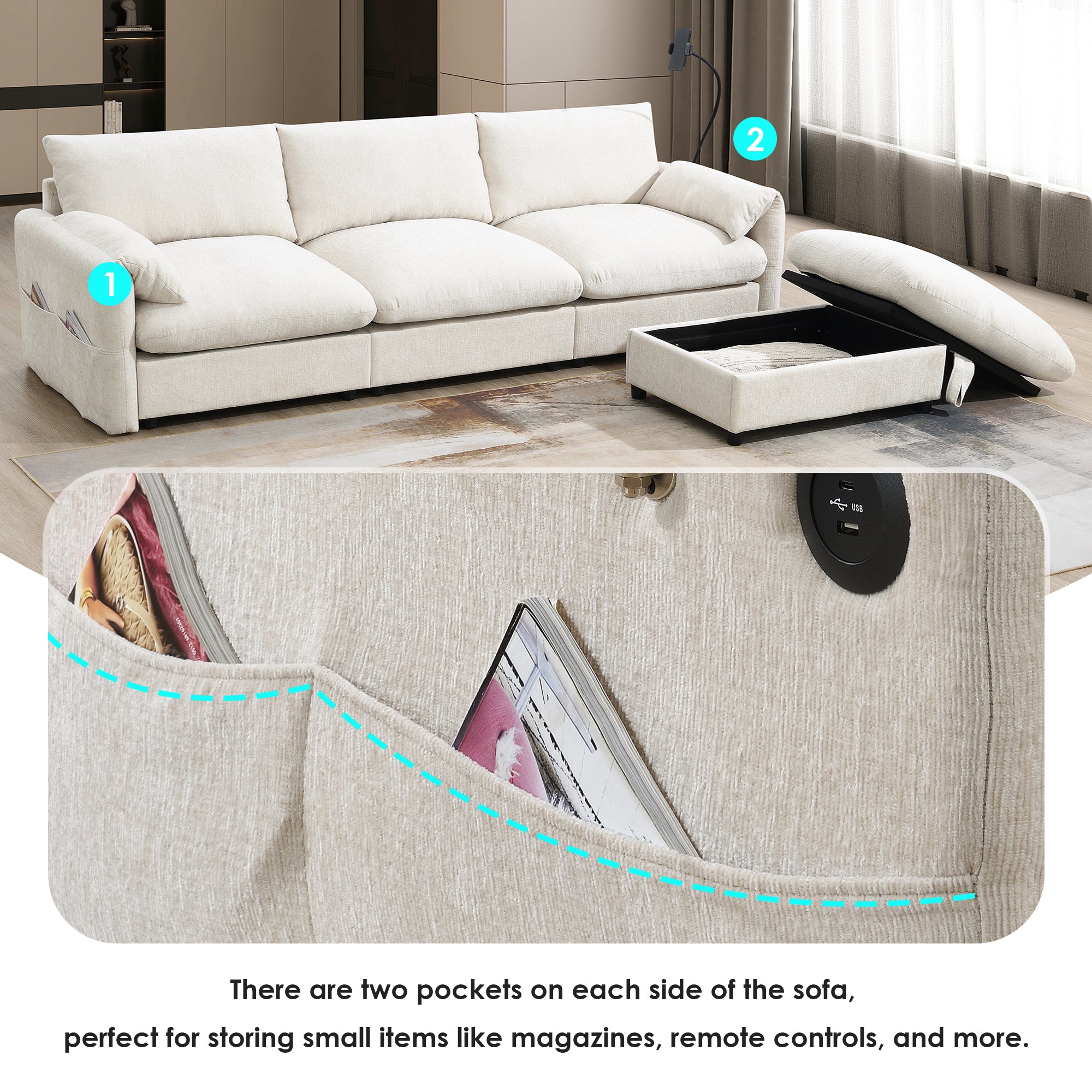 ![[VIDEO+NEW]96.5'' Chenille Sectional Sofa with Storage Ottoman and Pockets,Adjustable Phone Holder,Wide Seat,4 Seat L Shaped Couch Set,Comfy Sofa with USB Charger for Living Room,Apartment,3 Colors N723S9776A-djyc](http://bicroom.com/cdn/shop/files/726c6784b966412c8974f9b6f5db5c77.jpg?v=1742952613&width=1200)