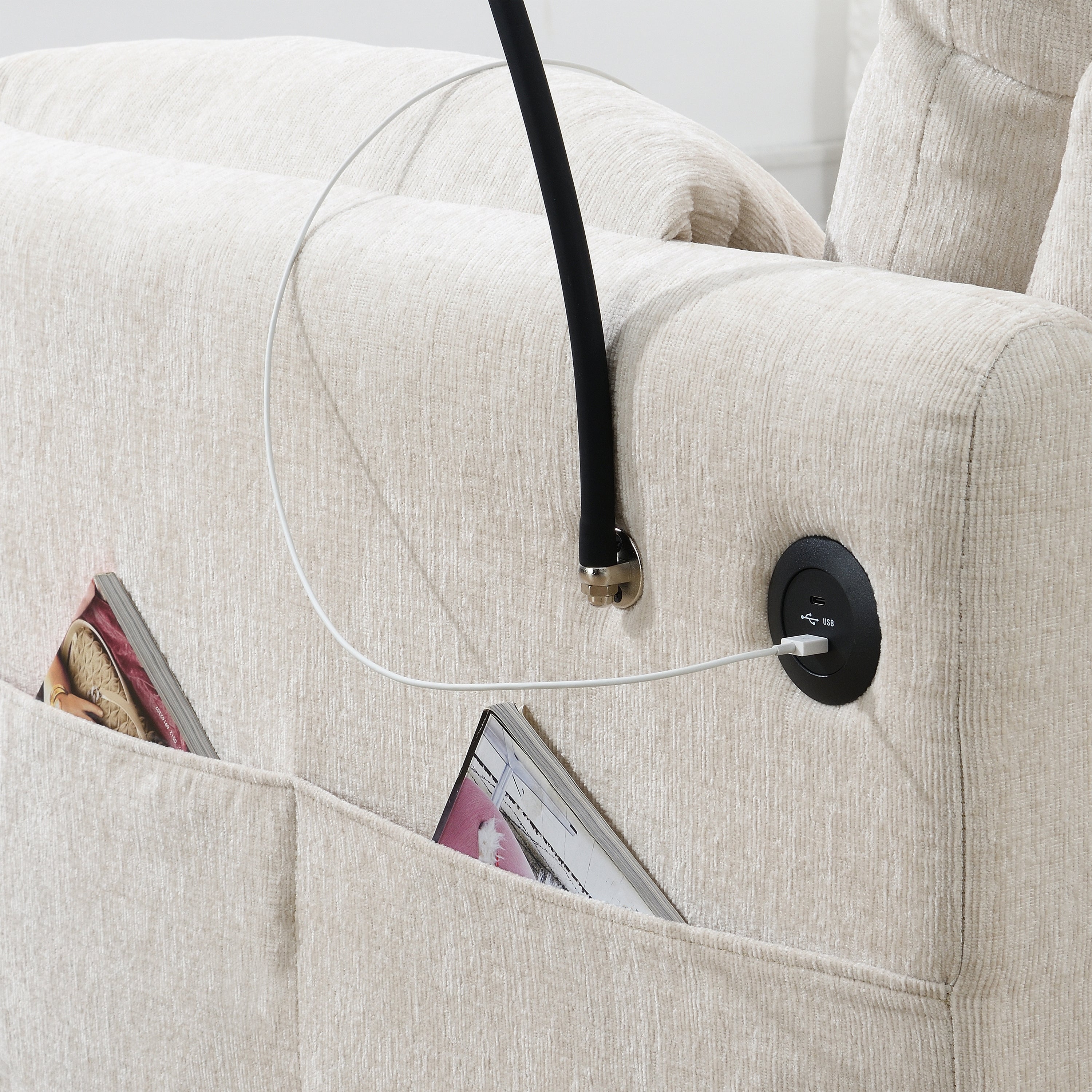 - Type C + USB Charger: Stay connected without having to get up! The sofa is equipped with both a Type-C and a USB charging port, enabling you to charge your devices easily while relaxing. These convenient ports are built right into the sofa, making it easier than ever to power your phone, tablet, or other electronics without the need for extra cables or plugs.