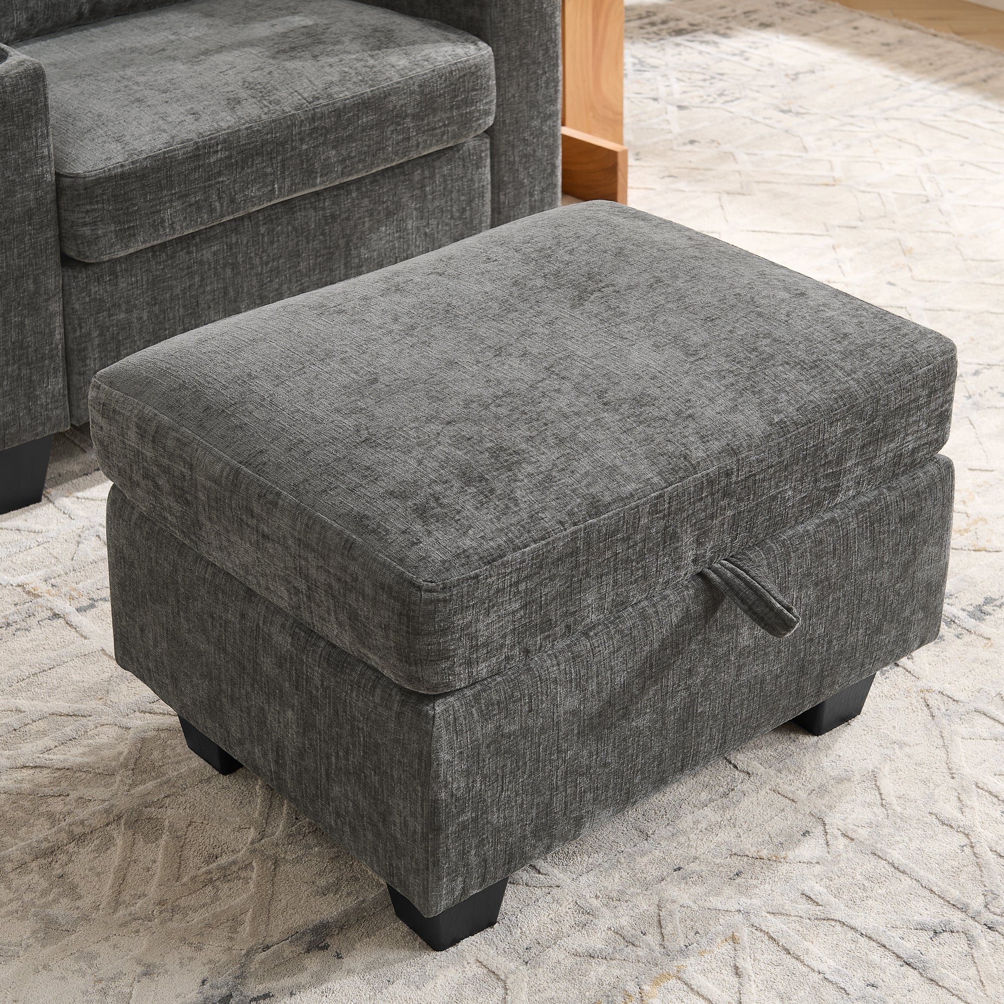 - Dual Hidden Storage Spaces: The right armrest has a hidden compartment (easily opened with a light push/pull) for small valuables like glasses, keys or charging cables, blending aesthetics with practicality. The matching ottoman not only relieves leg pressure but also features a lift-top storage area, perfect for blankets, pillows and seasonal items to maximize space utilization.