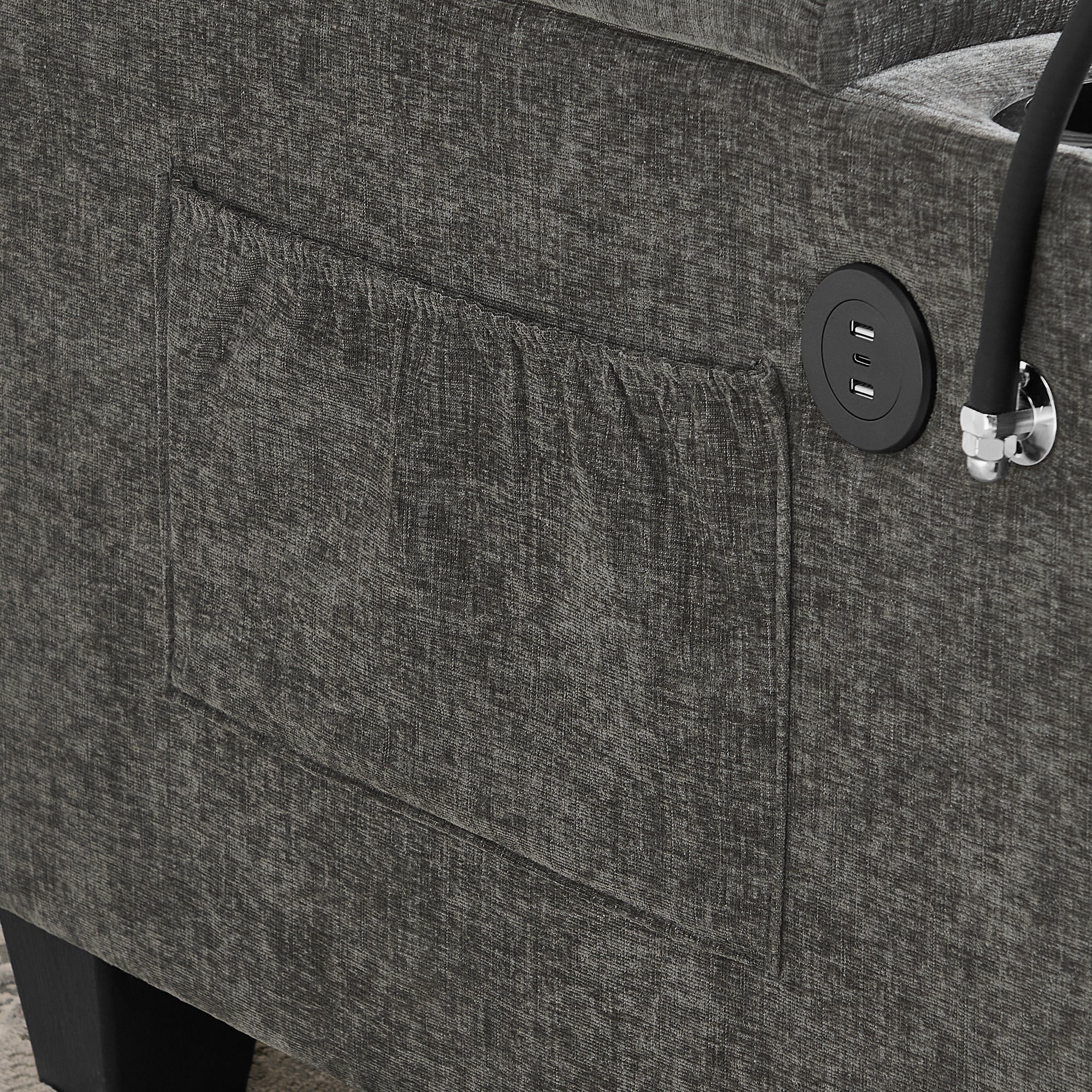 - Dual Side Cup Holders & USB Charging Port: Built-in cup holders are installed on both sides of the sofa armrests, designed for daily drinks like water cups, cola cans and coffee cups, with moderate depth and stable support to prevent tipping. Additionally, a USB data cable interface is integrated into the side of the armrest, offering convenient charging for mobile phones, tablets or earbuds?eliminating the hassle of searching for a power socket and ensuring uninterrupted relaxation.