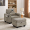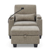 Single sofa recliner with manually adjustable backrest, USB charging port on the armrest side, phone stand included, hidden armrest storage, and a matching storage ottoman-Brown-W487P423653
