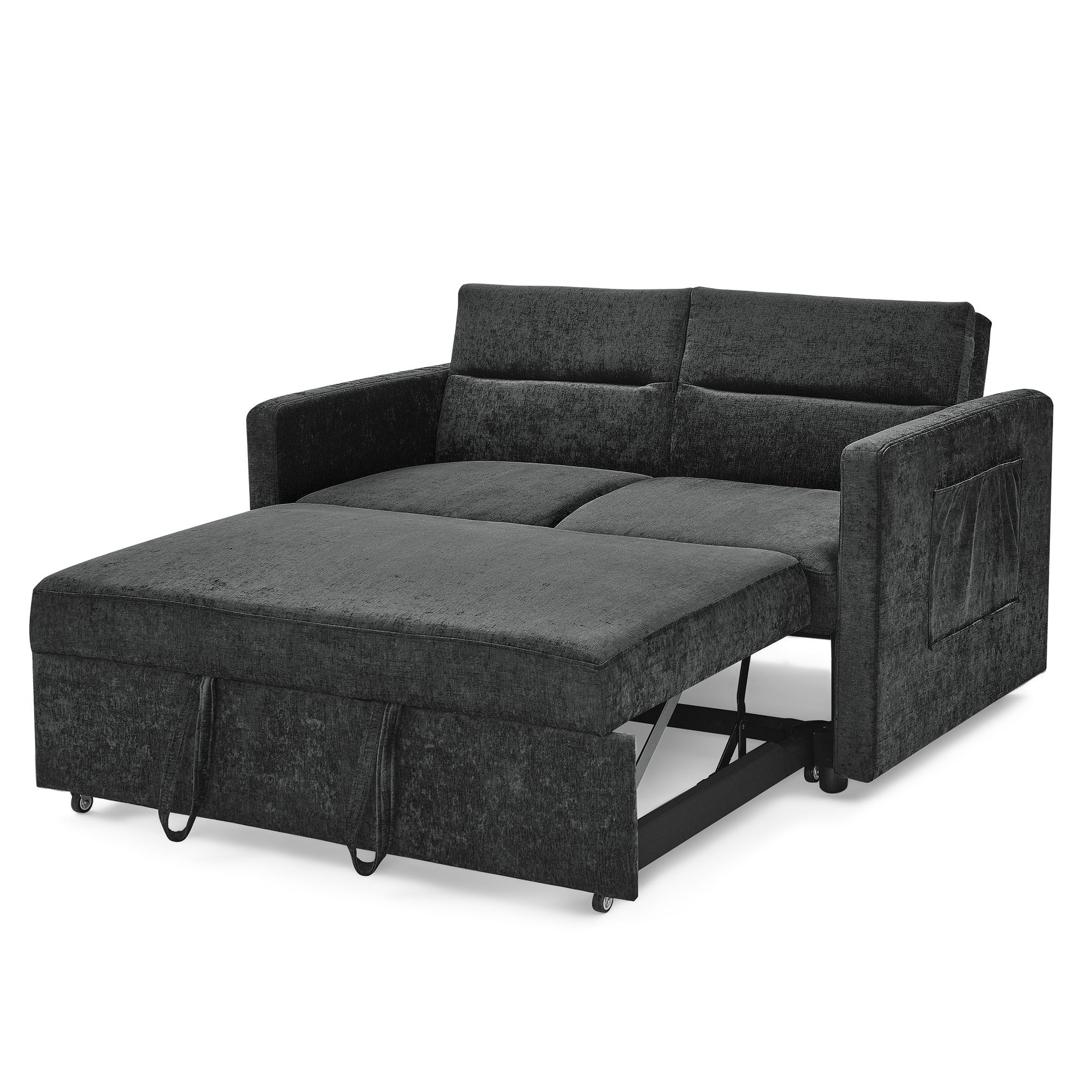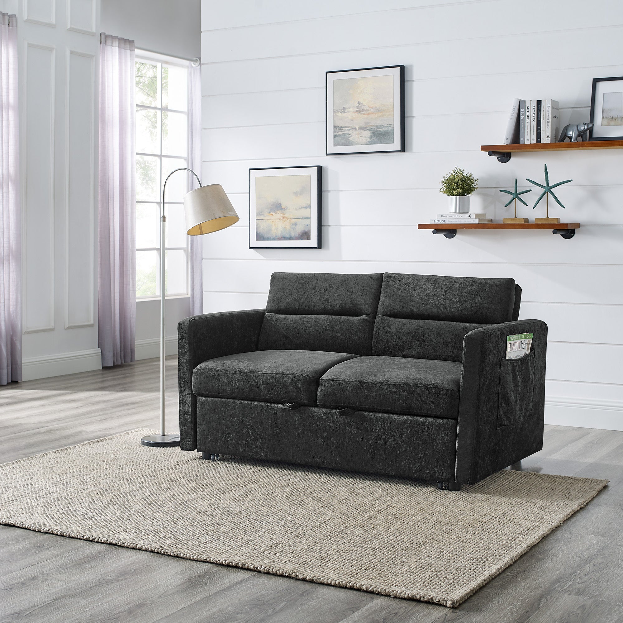 Loveseats Sofa Bed with Pull-out Bed,Adjsutable Back and Two Arm Pocket,Black (54.5'x33'x31.5') W48766865-djyc