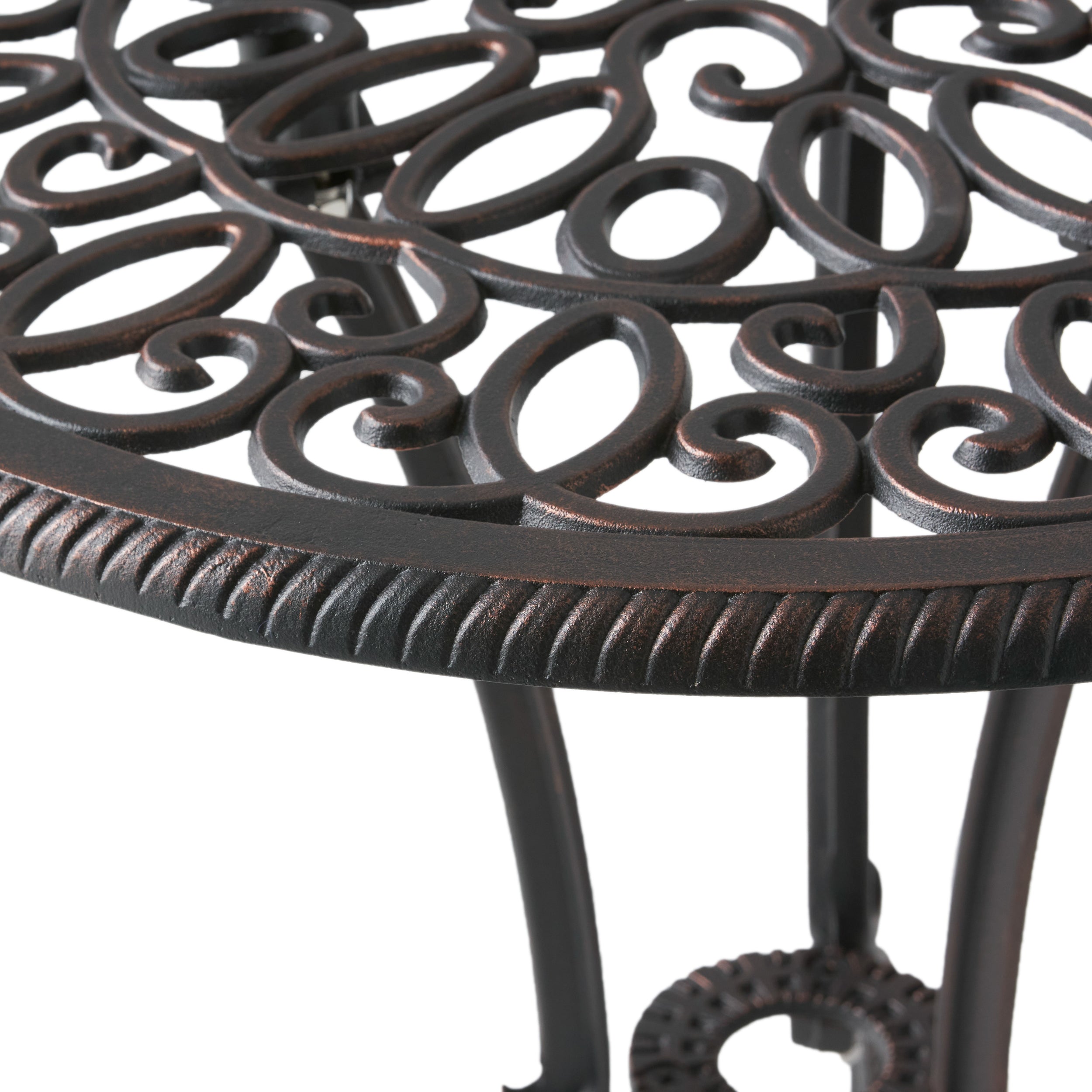 Charming 3-Piece Bistro Set with Copper-Finish Cast Aluminum and Umbrella Hole 50550.00COP-djyc