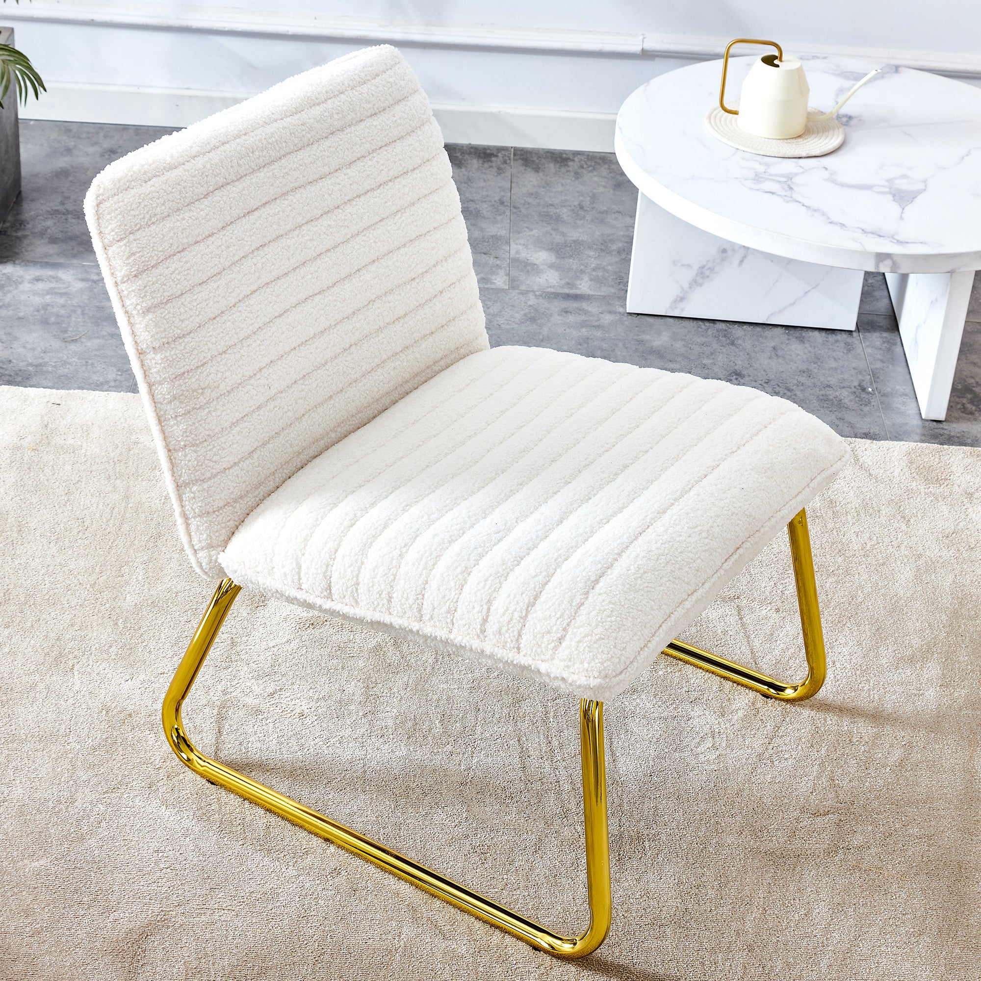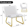 • One White minimalist armless sofa chair with plush cushion and backrest paired with golden metal legs, suitable for offices, restaurants, kitchens, bedrooms