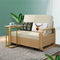 Modern Solid Wood Sofa in Beige with Cotton-Linen Blend Upholstery - Natural Light Gray, Khaki & Blue Accents fnm-953