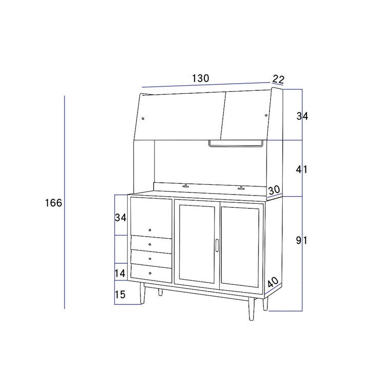 - Natural Wood Color / 33.5" Buffet (Upper + Lower Cabinet) with Left Wooden Door
