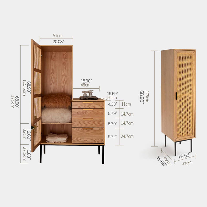 Stylish Natural Wood Cabinet with Rattan Accents and Ash Wood Detailing tzm-553