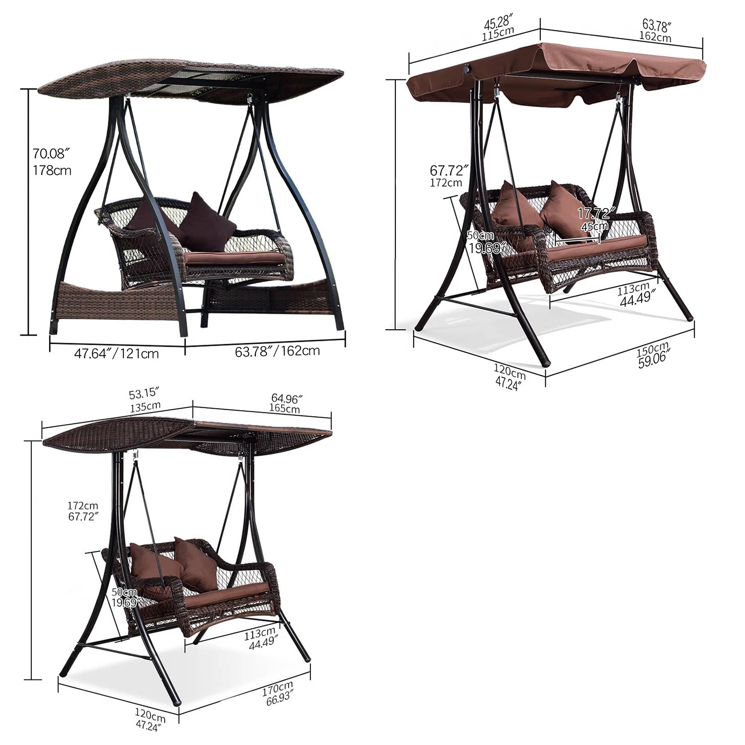 Stylish Outdoor Swing Chair in Brown PE Rattan with Sturdy Galvanized Steel Frame zy-154